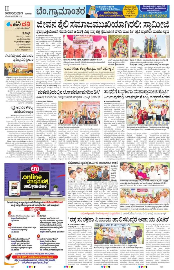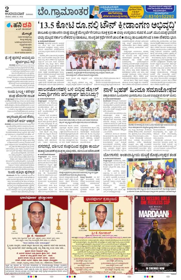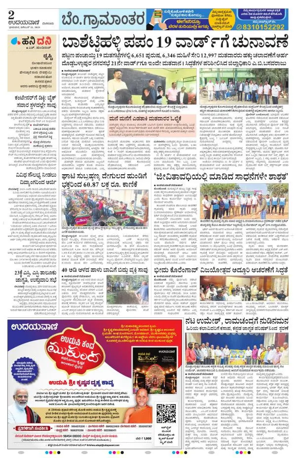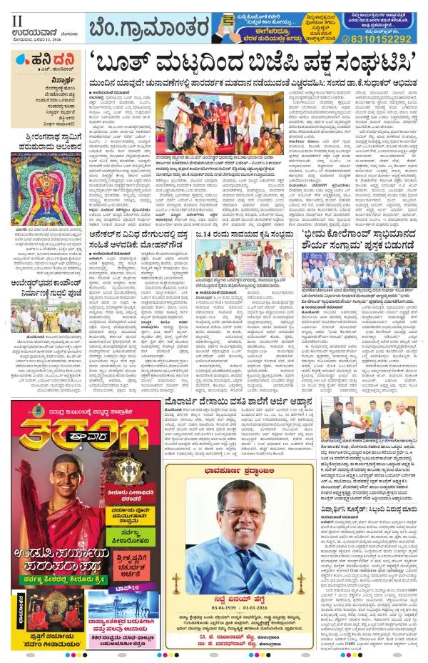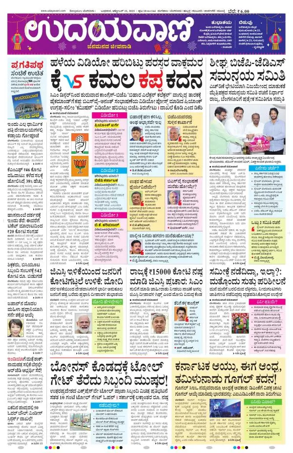 Udayavani is a leading Kannada Daily Newspaper with editions from Manipal, Bangalore, Mumbai, Hubli, Gulbarga & Davanagere.