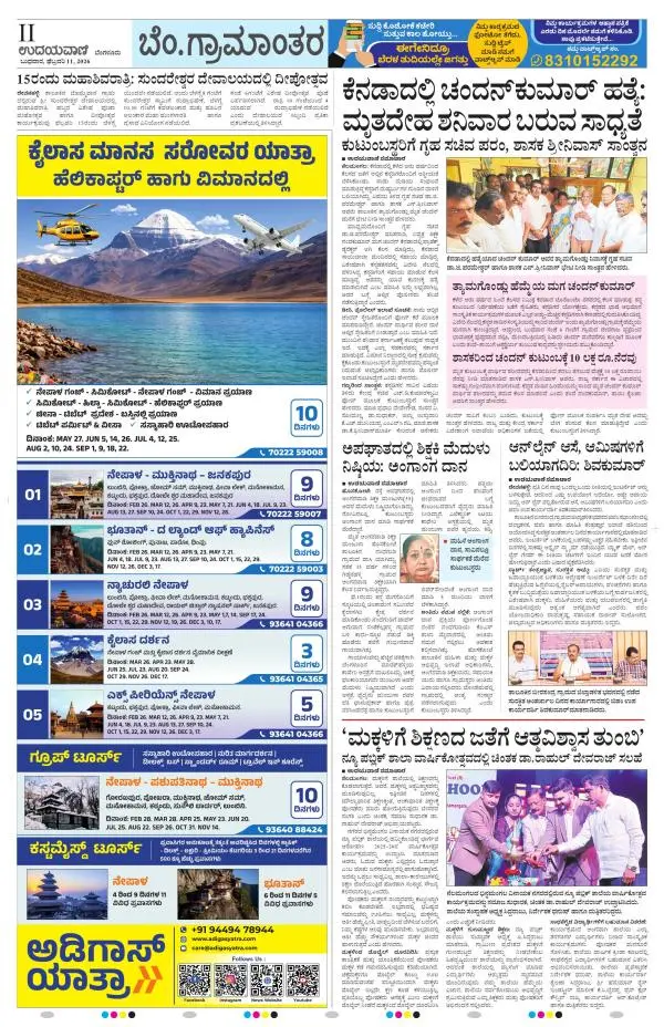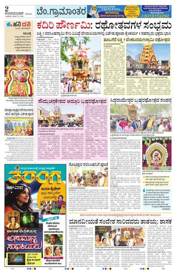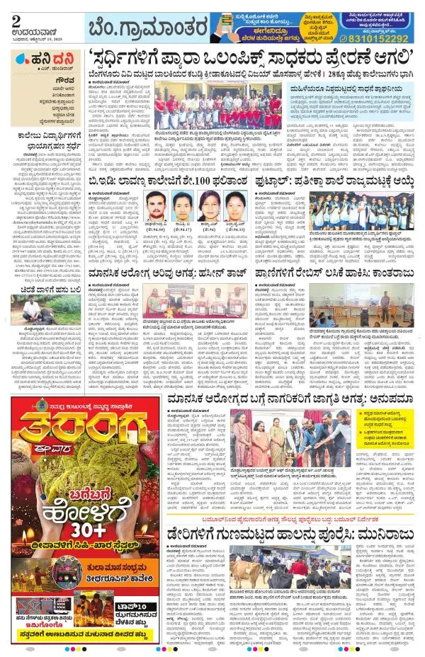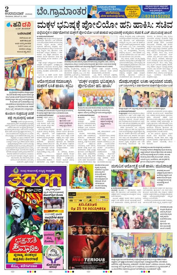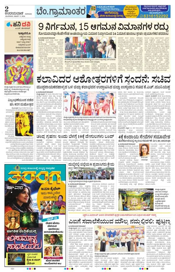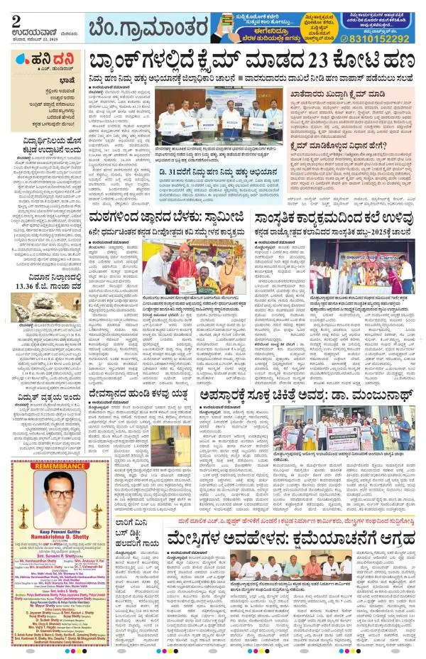 Udayavani is a leading Kannada Daily Newspaper with editions from Manipal, Bangalore, Mumbai, Hubli, Gulbarga & Davanagere.