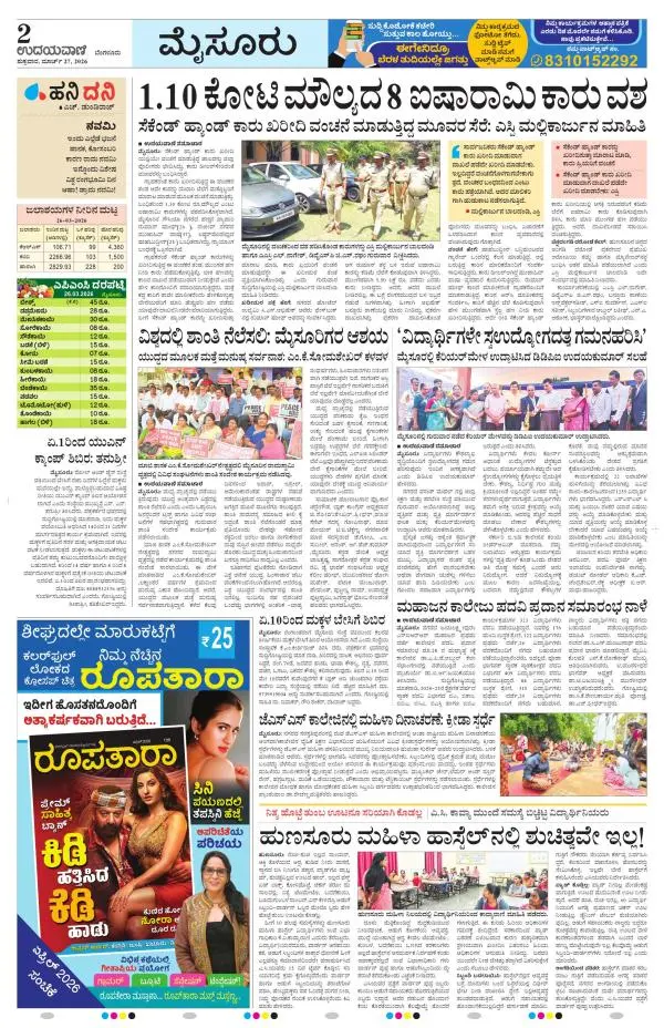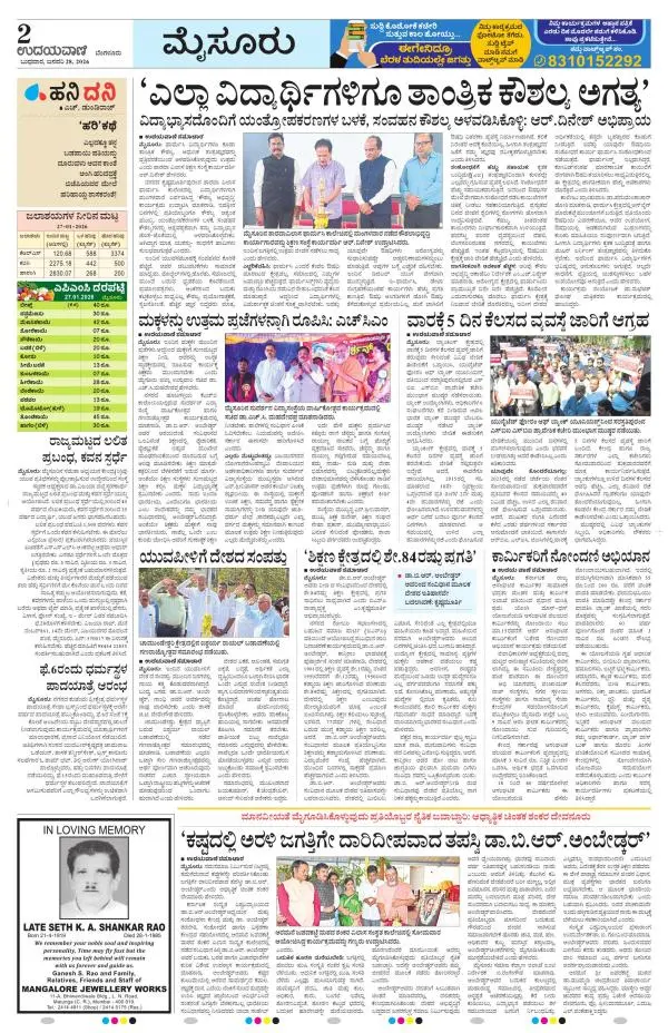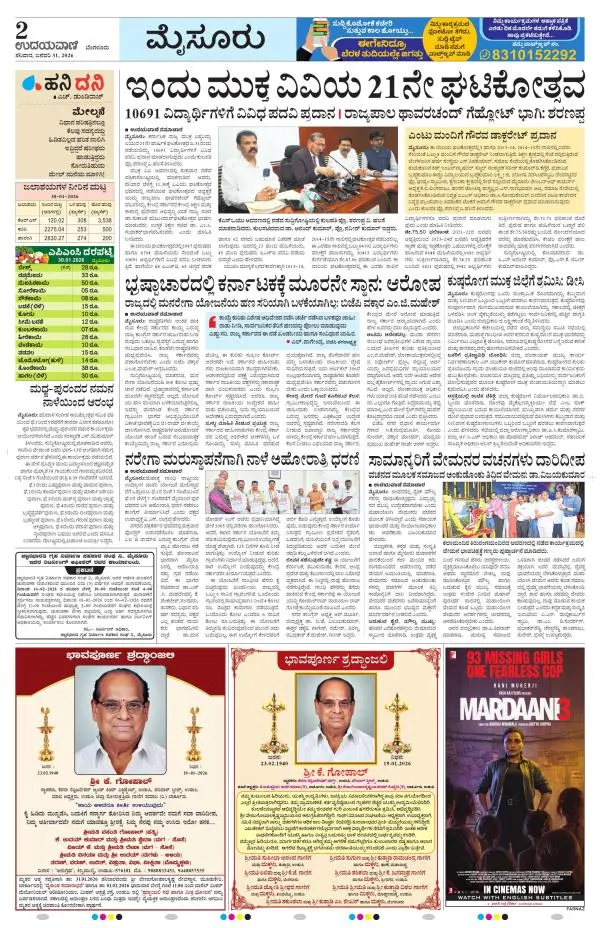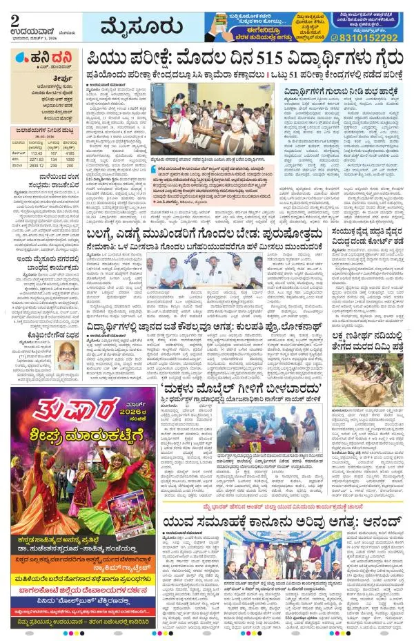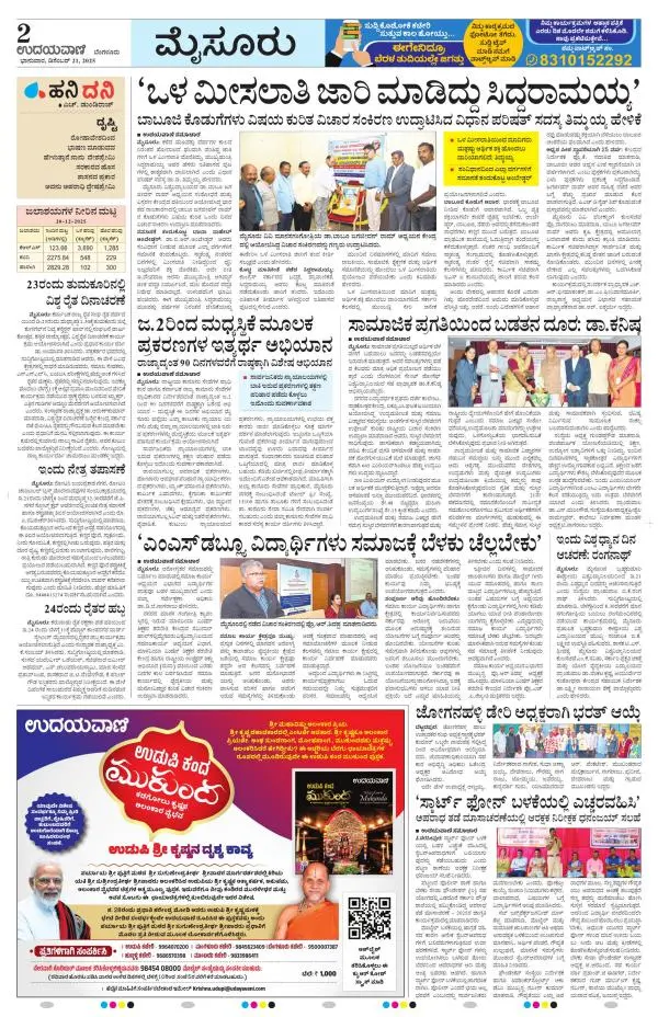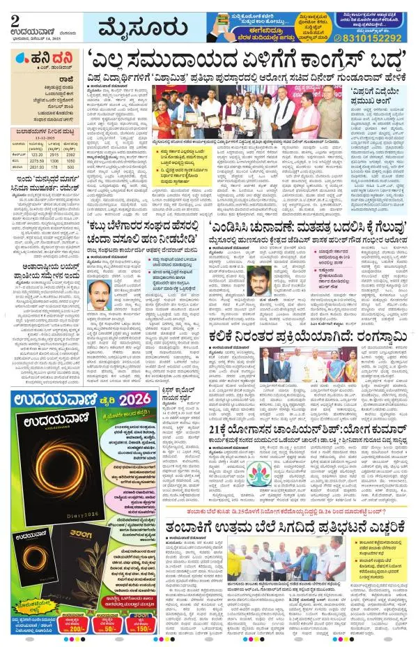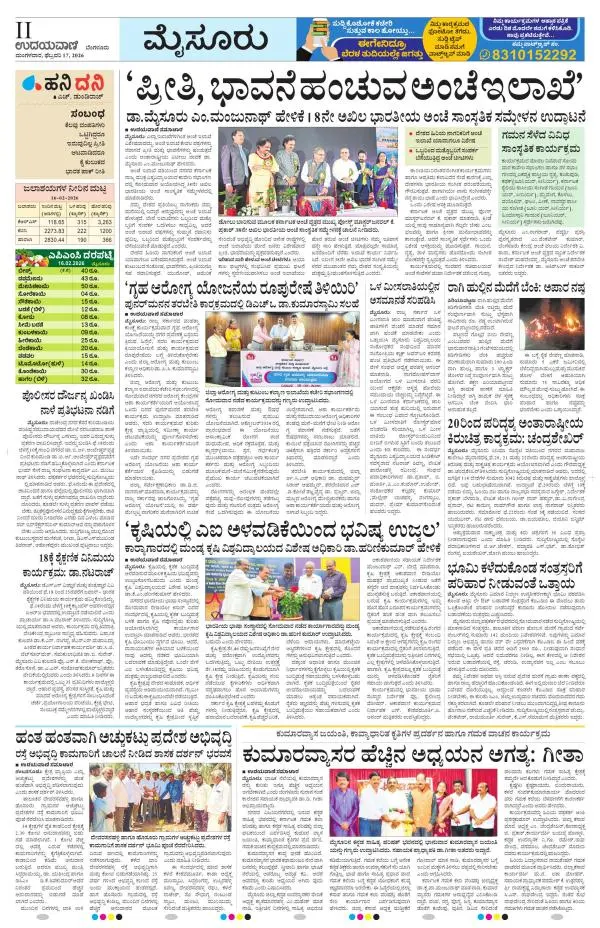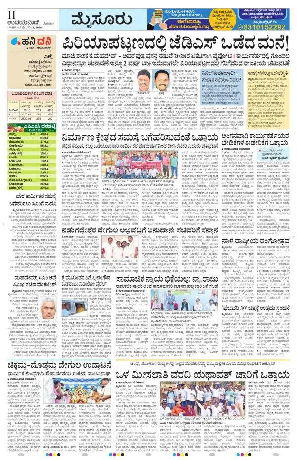 Udayavani is a leading Kannada Daily Newspaper with editions from Manipal, Bangalore, Mumbai, Hubli, Gulbarga & Davanagere.