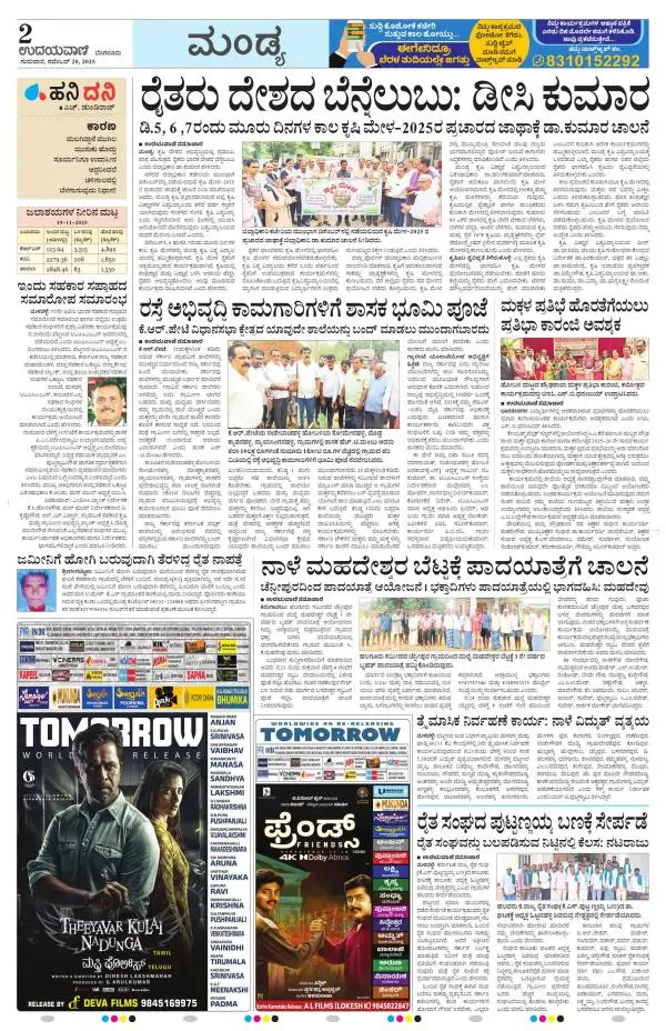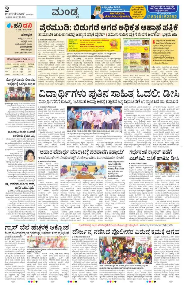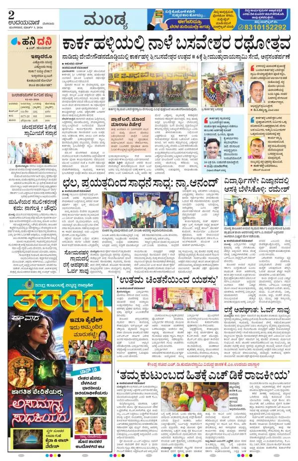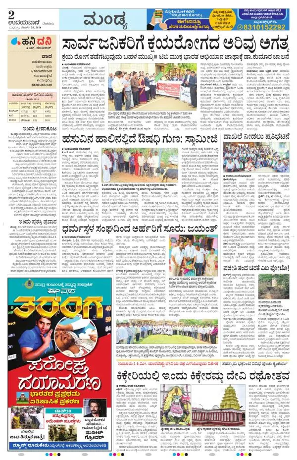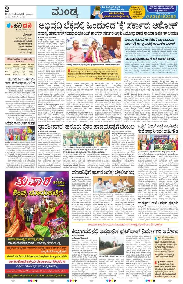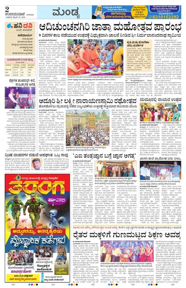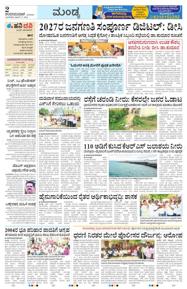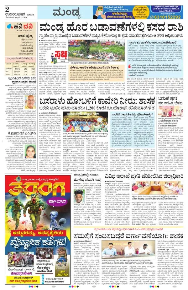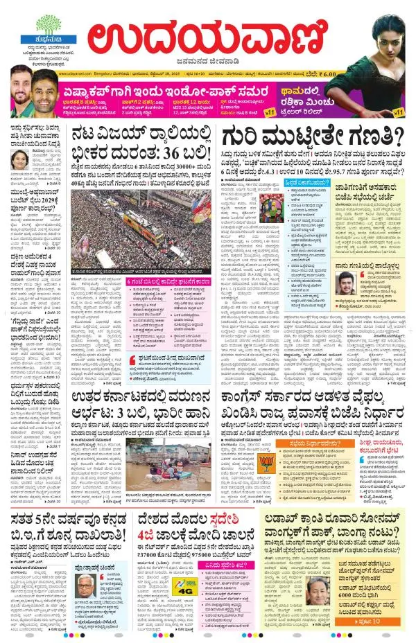 Udayavani is a leading Kannada Daily Newspaper with editions from Manipal, Bangalore, Mumbai, Hubli, Gulbarga & Davanagere.