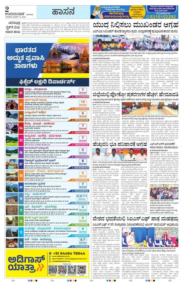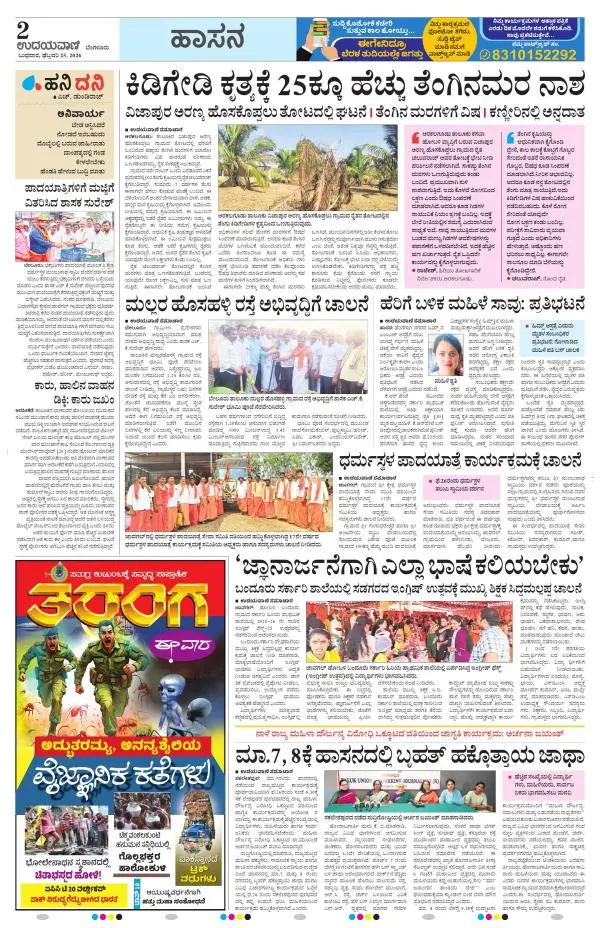 Udayavani is a leading Kannada Daily Newspaper with editions from Manipal, Bangalore, Mumbai, Hubli, Gulbarga & Davanagere.