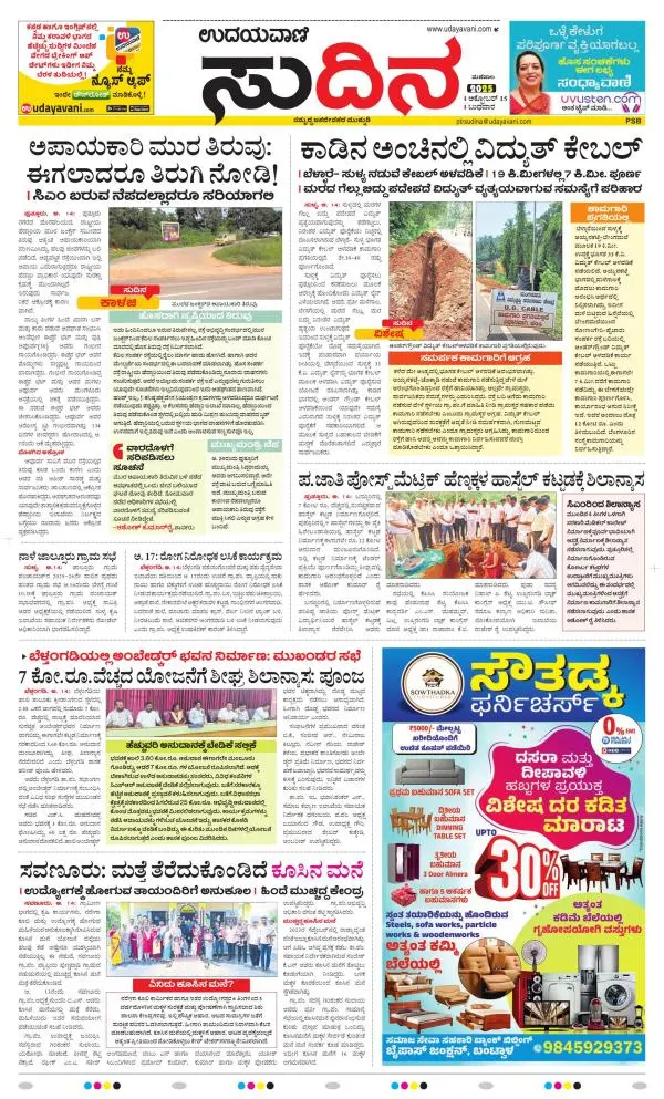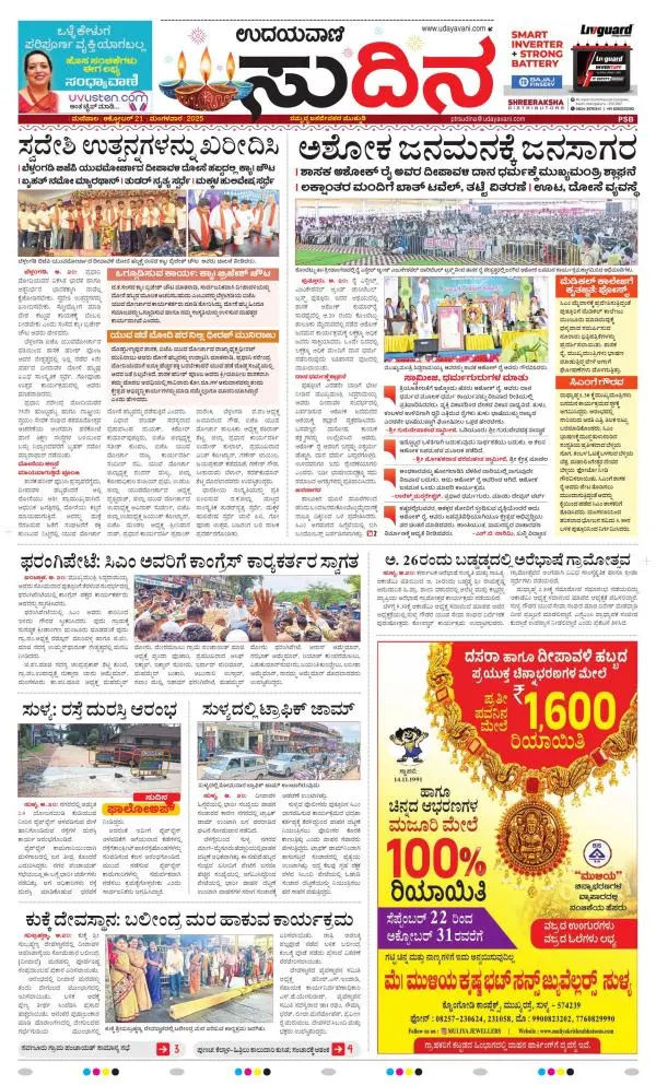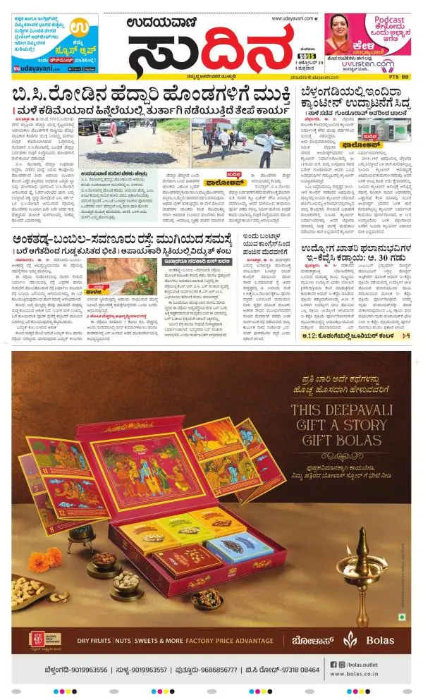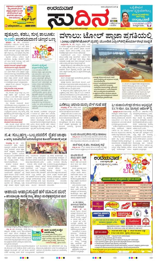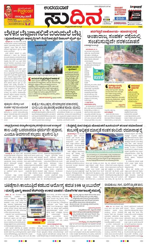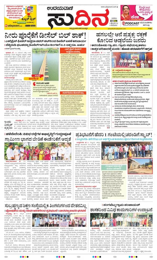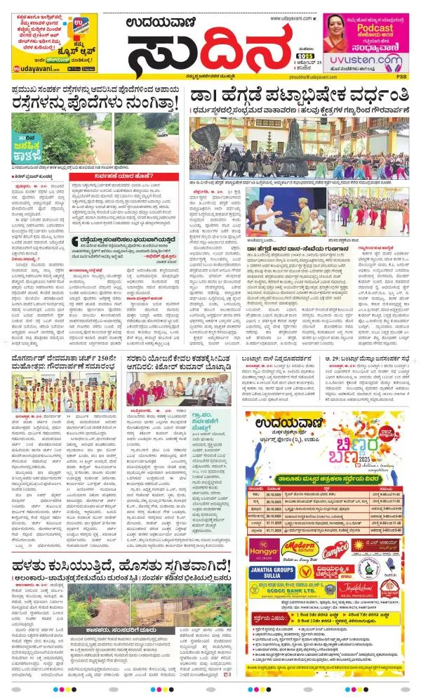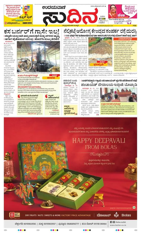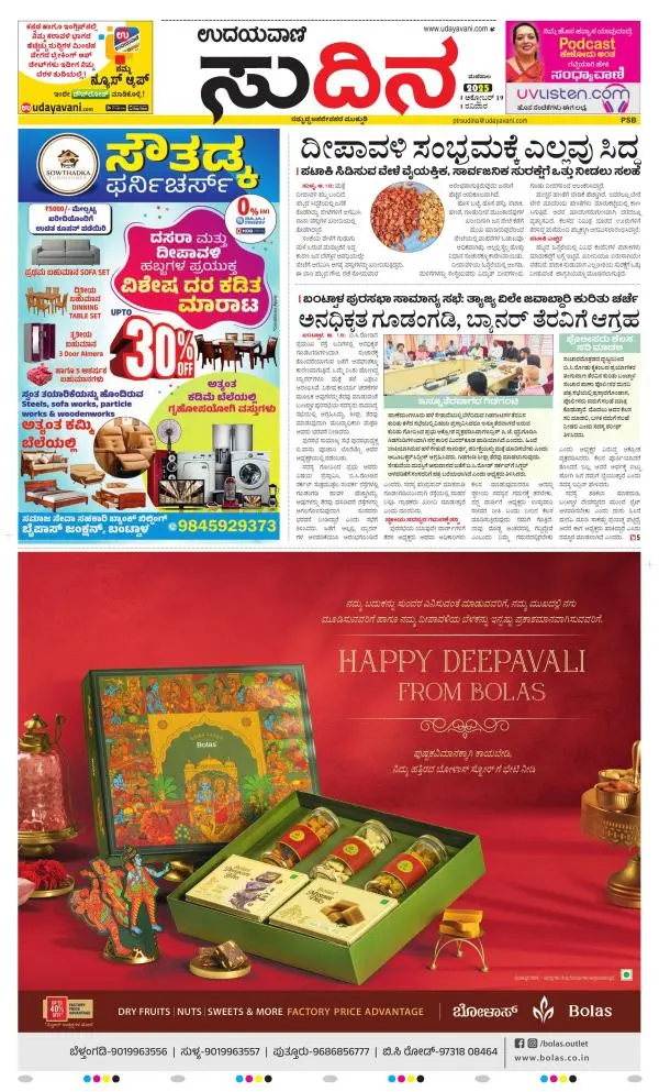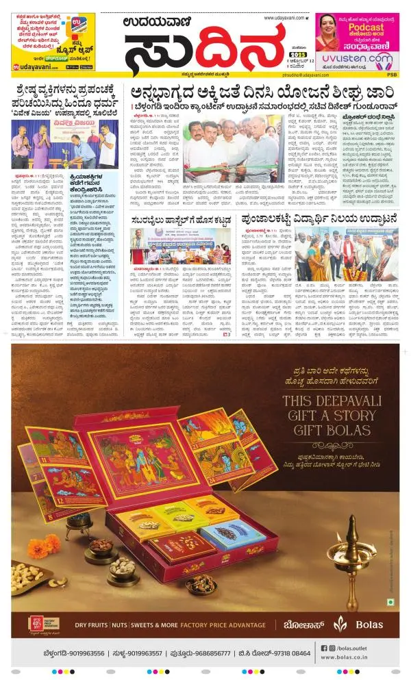 Udayavani is a leading Kannada Daily Newspaper with editions from Manipal, Bangalore, Mumbai, Hubli, Gulbarga & Davanagere.