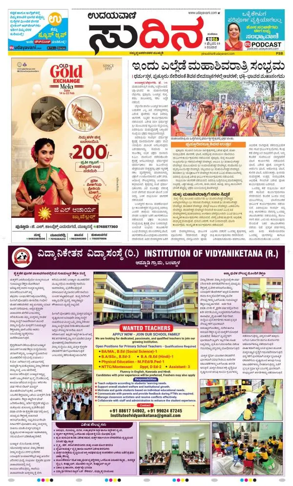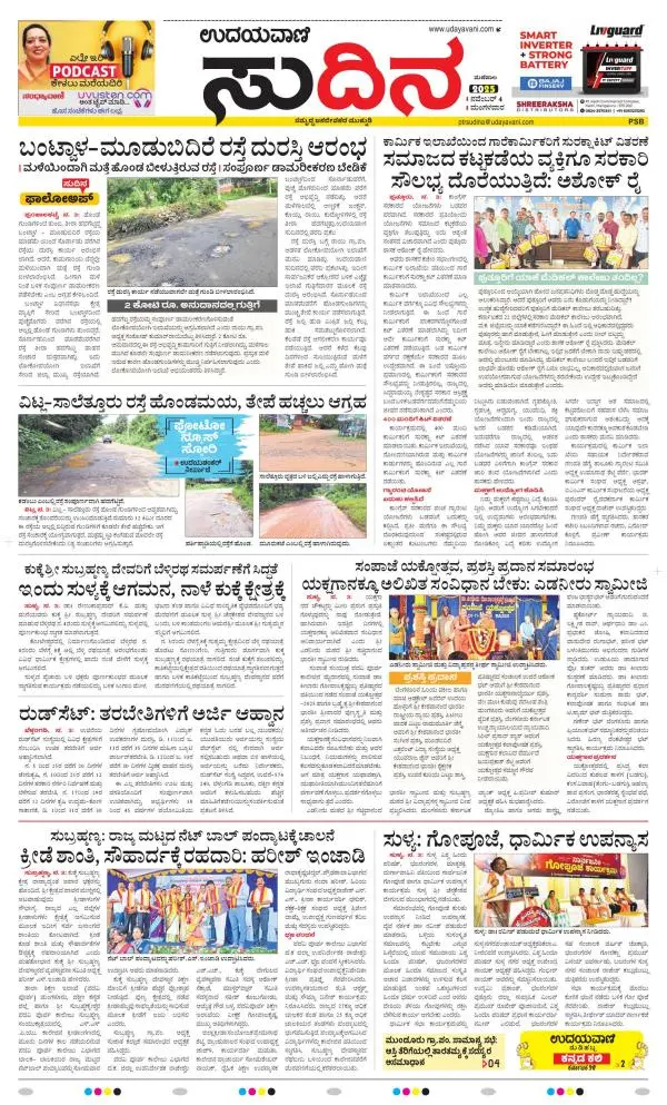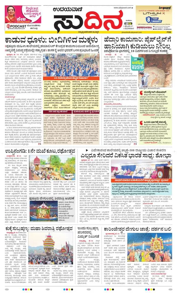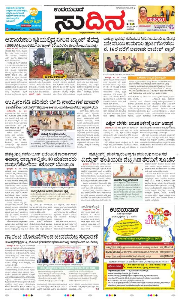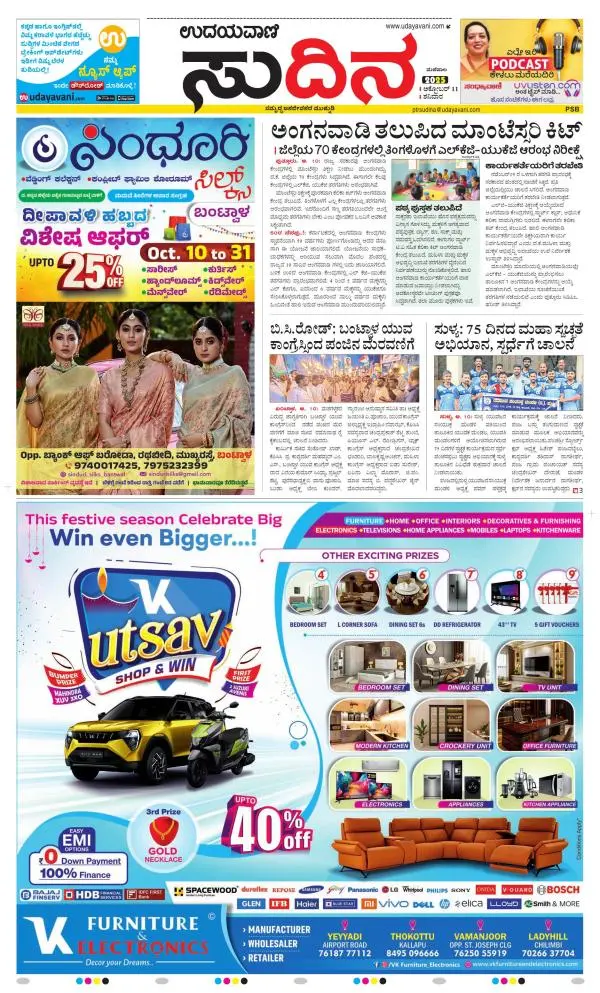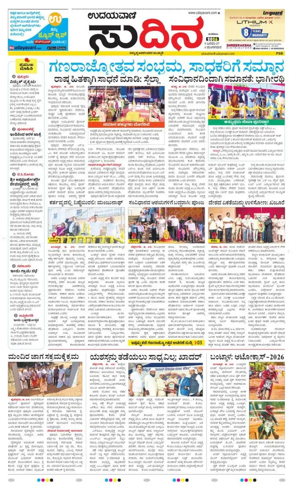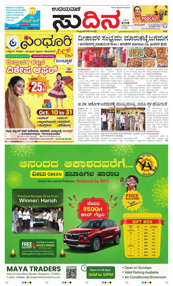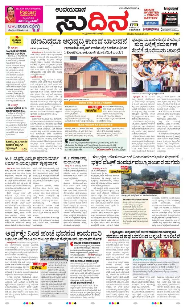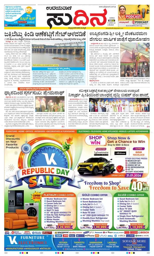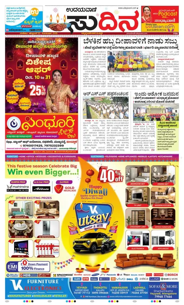 Udayavani is a leading Kannada Daily Newspaper with editions from Manipal, Bangalore, Mumbai, Hubli, Gulbarga & Davanagere.