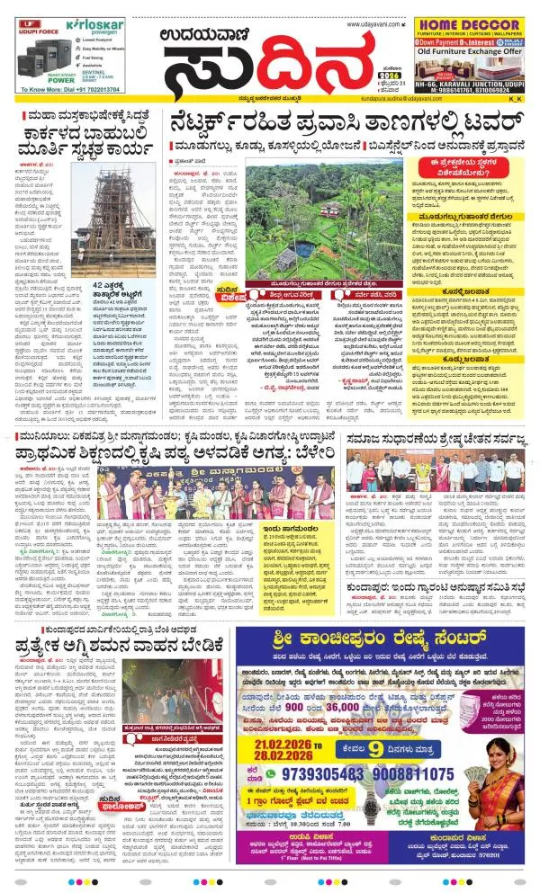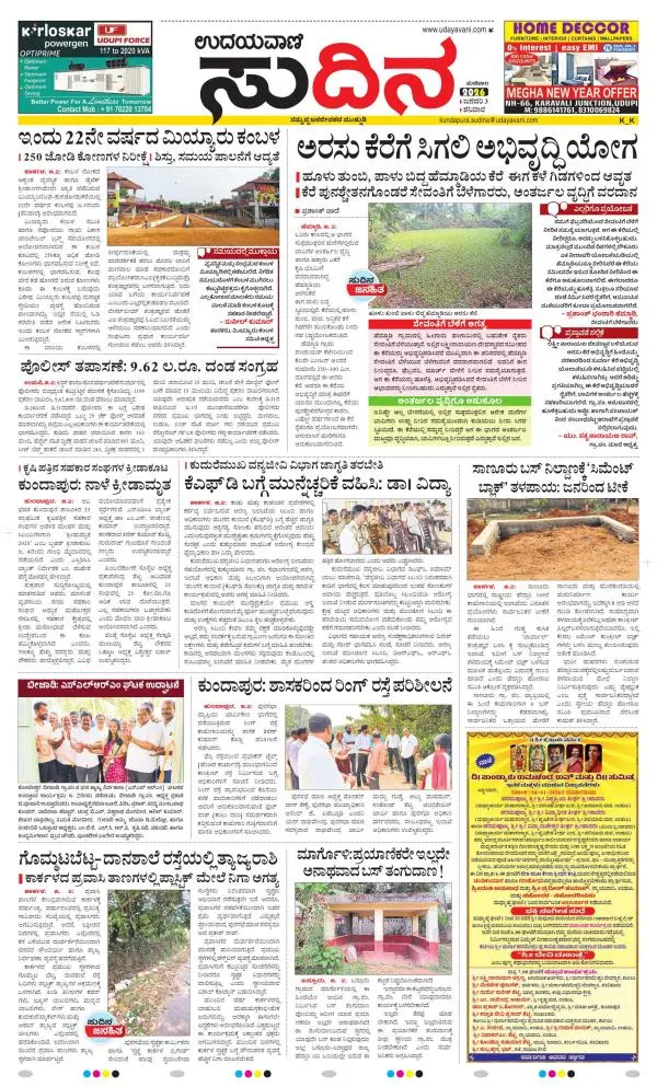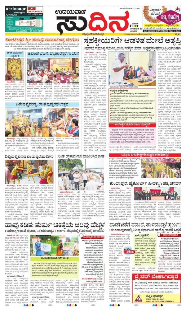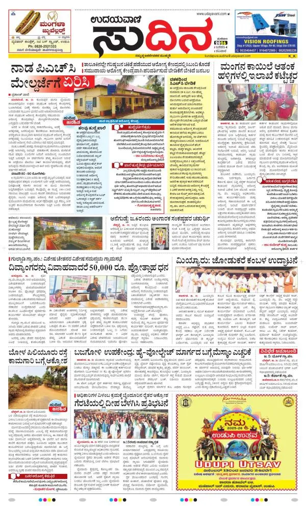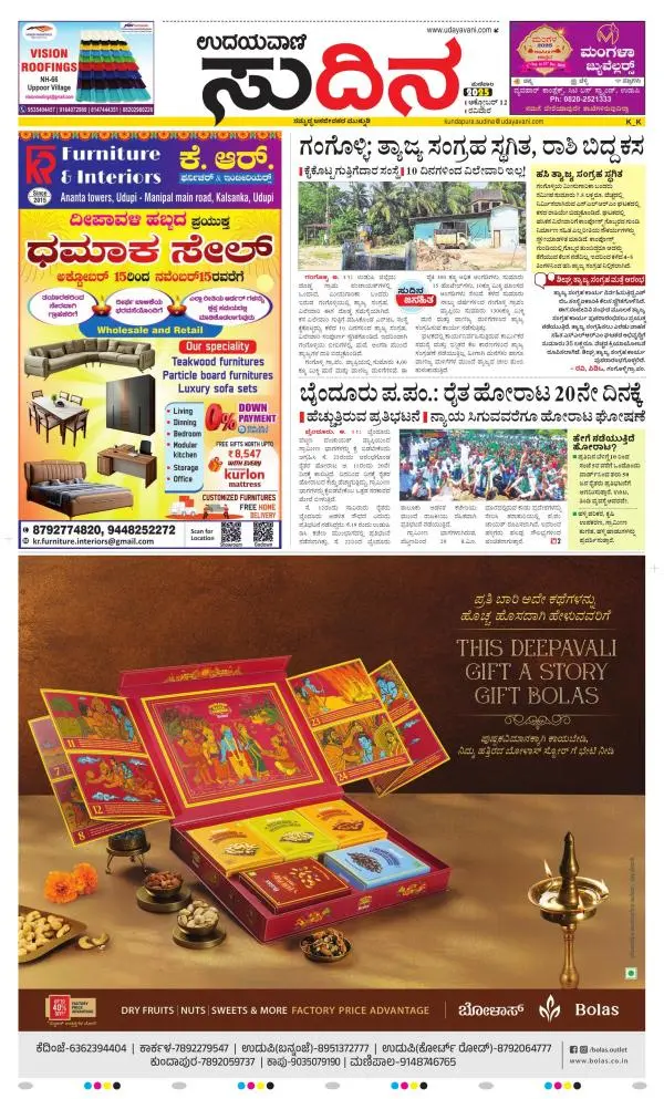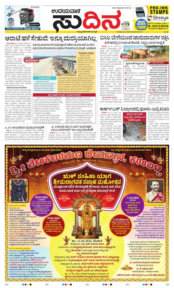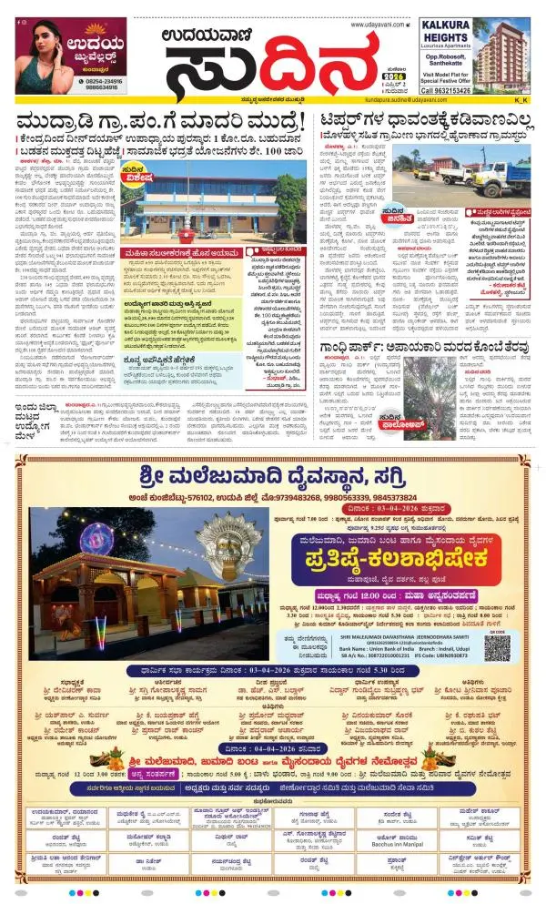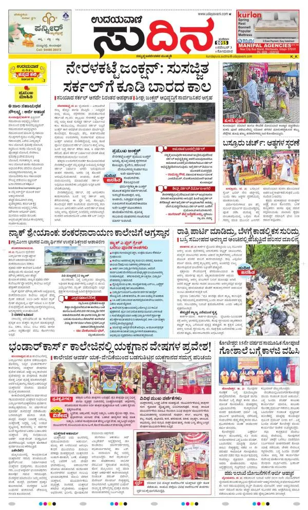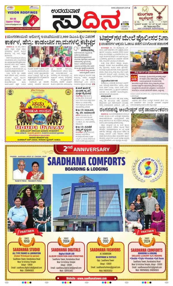 Udayavani is a leading Kannada Daily Newspaper with editions from Manipal, Bangalore, Mumbai, Hubli, Gulbarga & Davanagere.