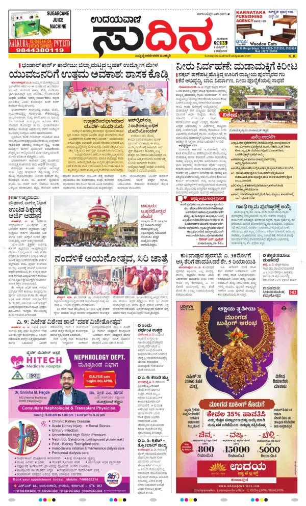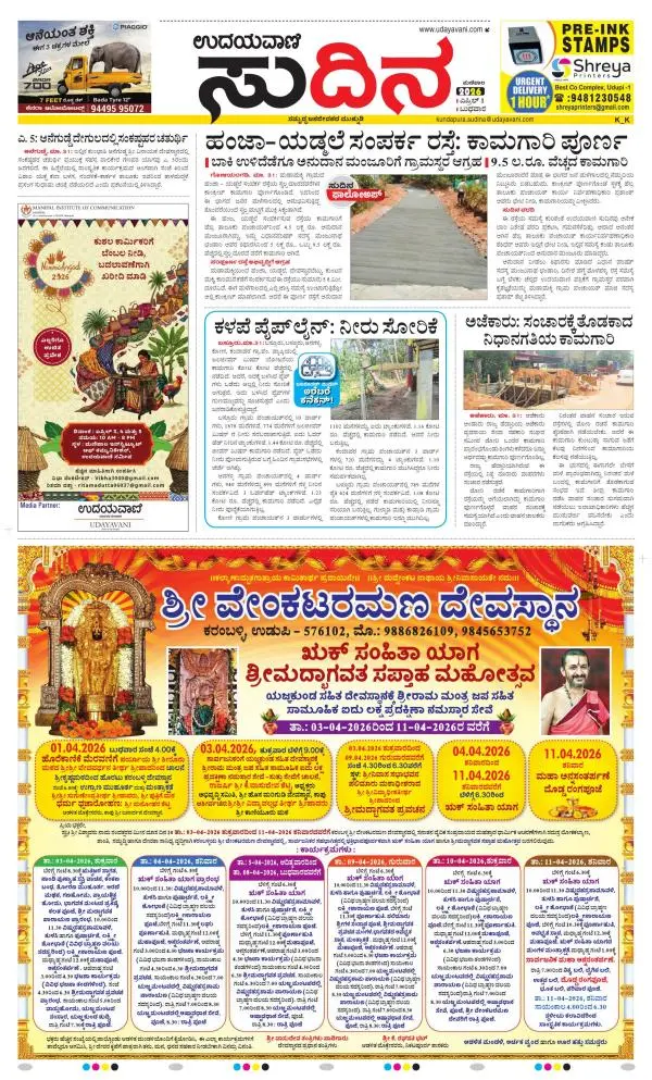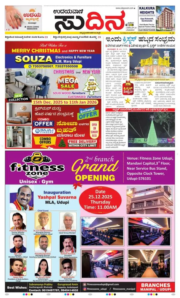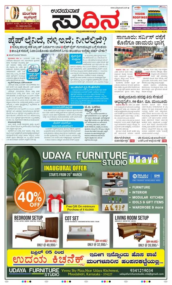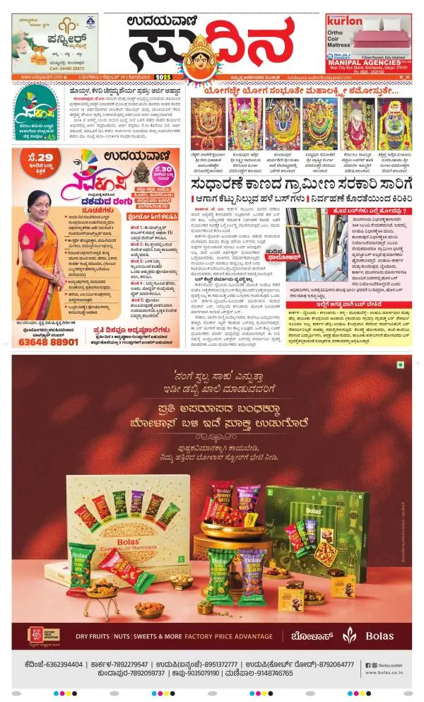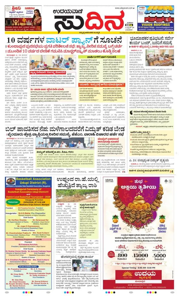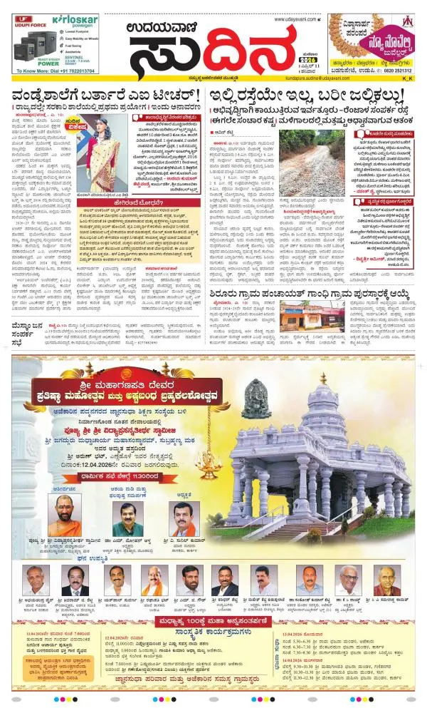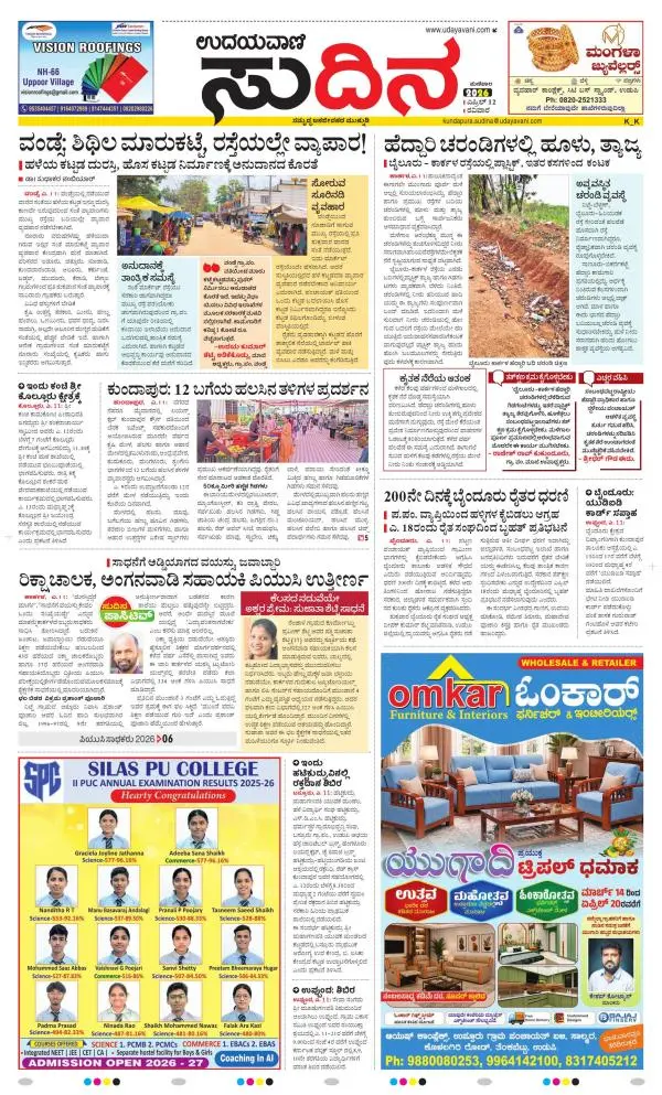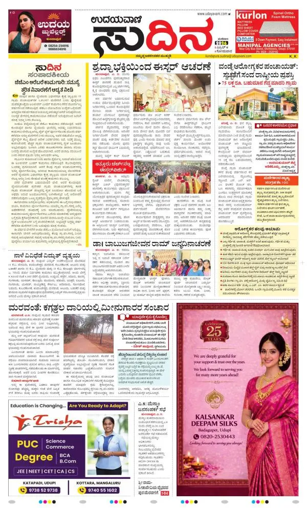 Udayavani is a leading Kannada Daily Newspaper with editions from Manipal, Bangalore, Mumbai, Hubli, Gulbarga & Davanagere.