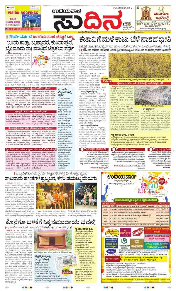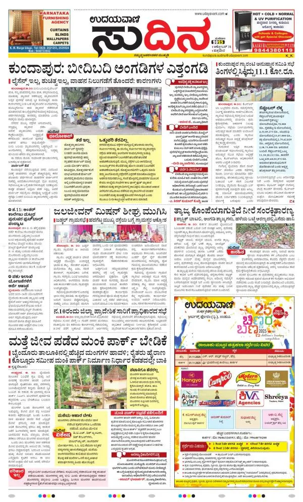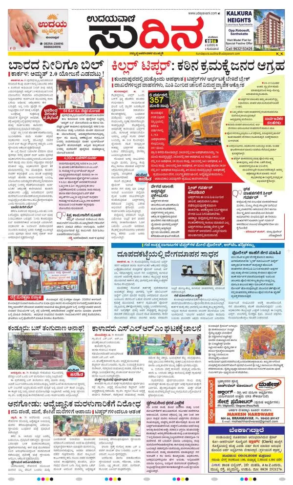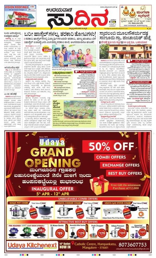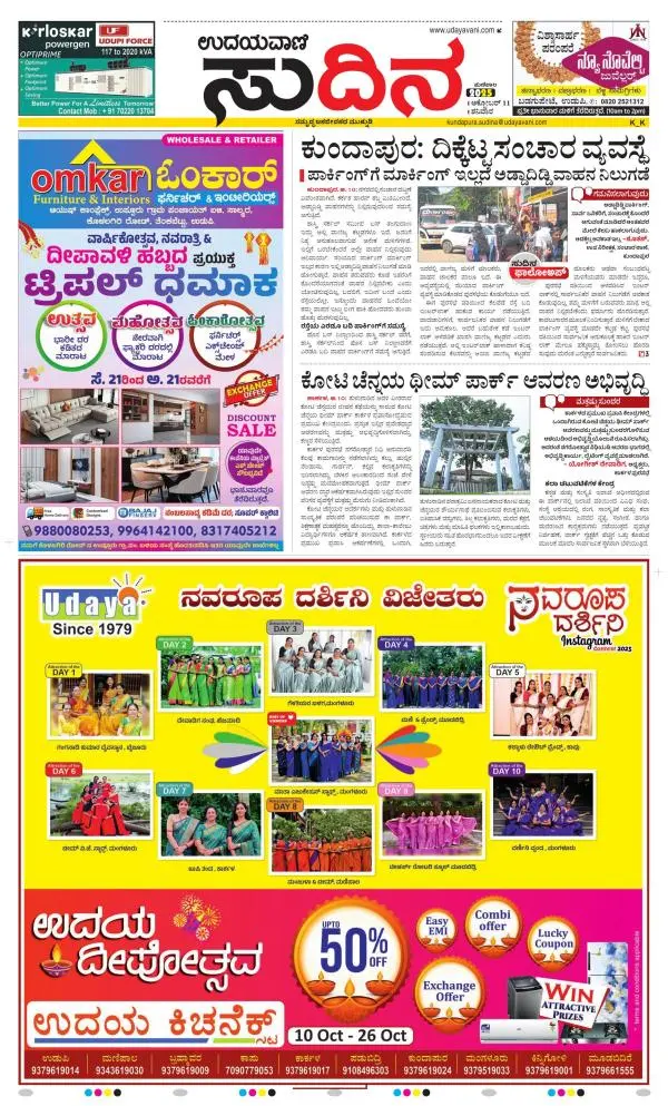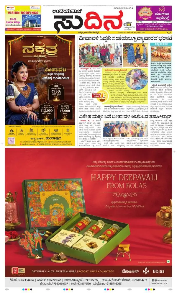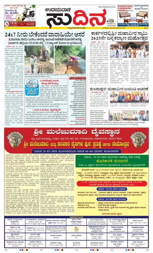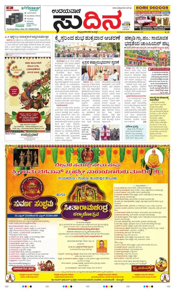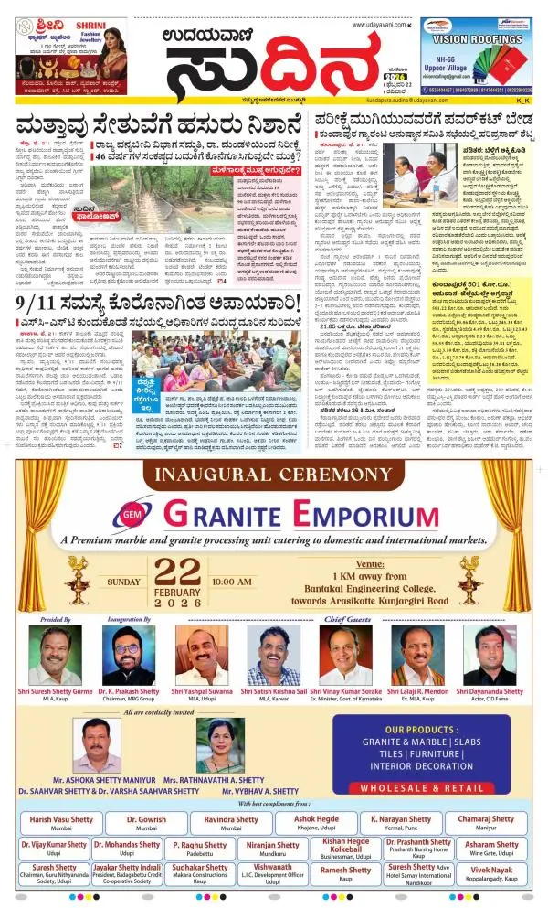 Udayavani is a leading Kannada Daily Newspaper with editions from Manipal, Bangalore, Mumbai, Hubli, Gulbarga & Davanagere.