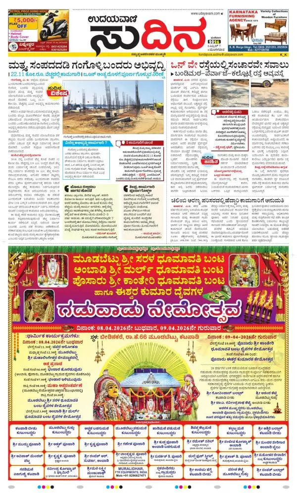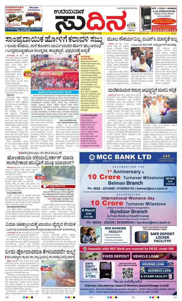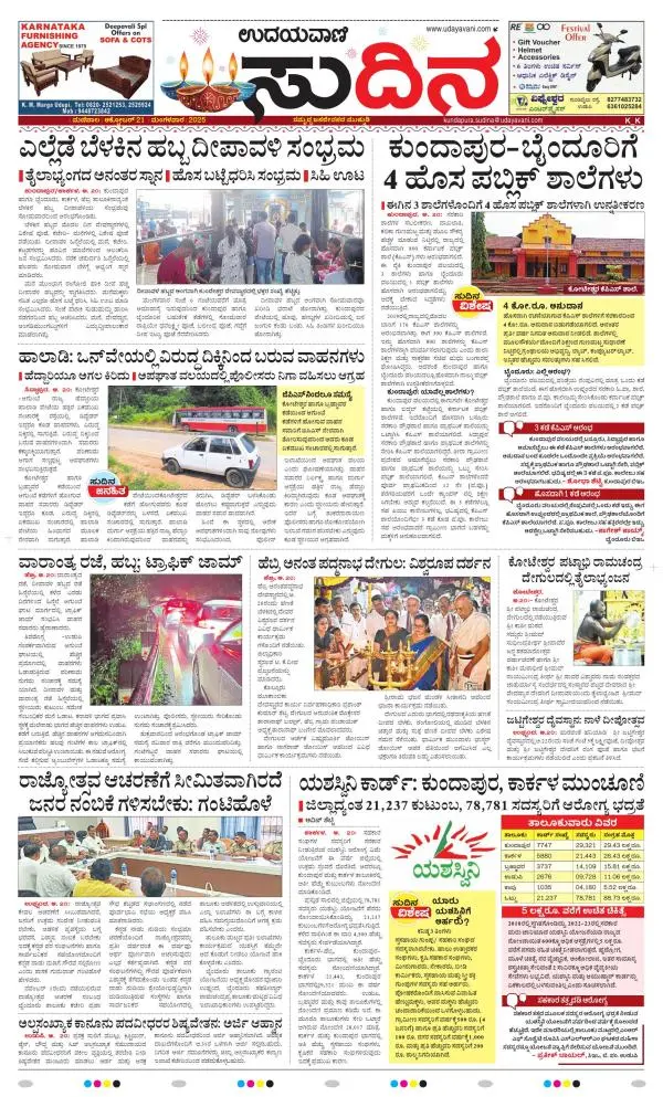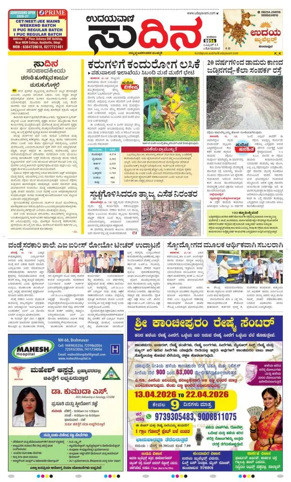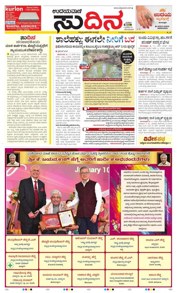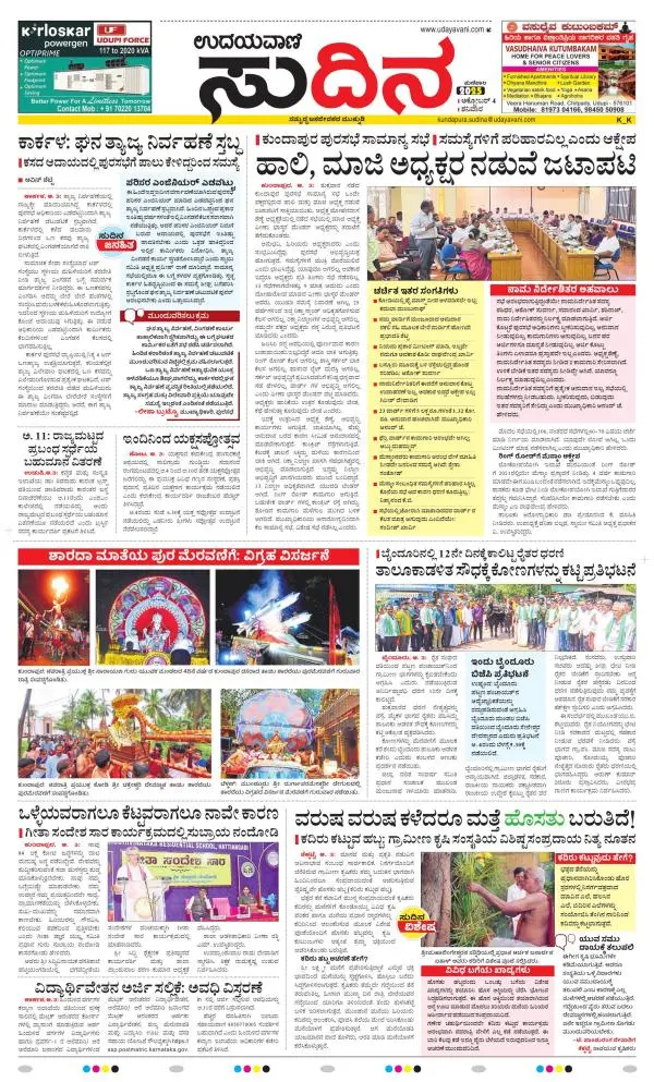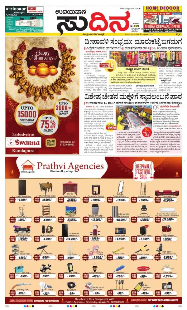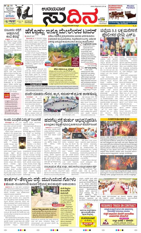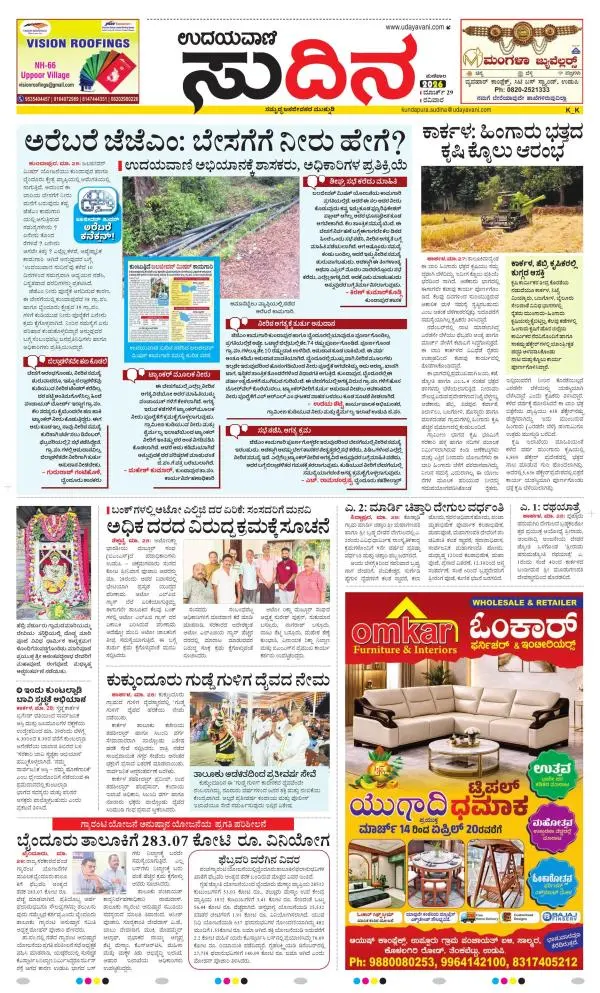 Udayavani is a leading Kannada Daily Newspaper with editions from Manipal, Bangalore, Mumbai, Hubli, Gulbarga & Davanagere.