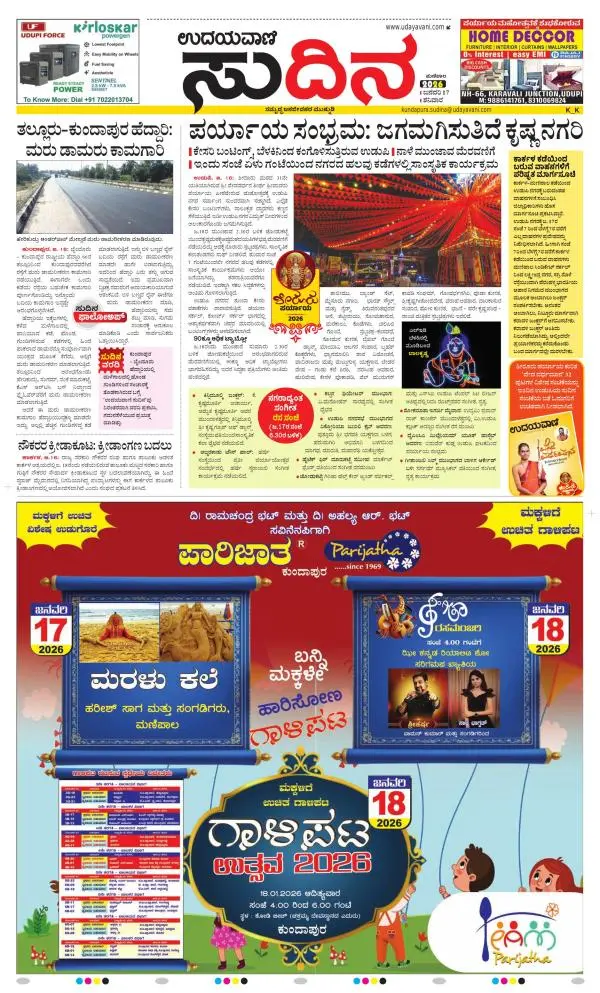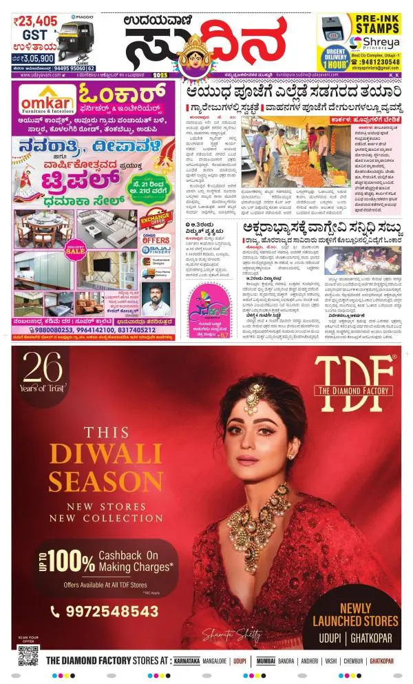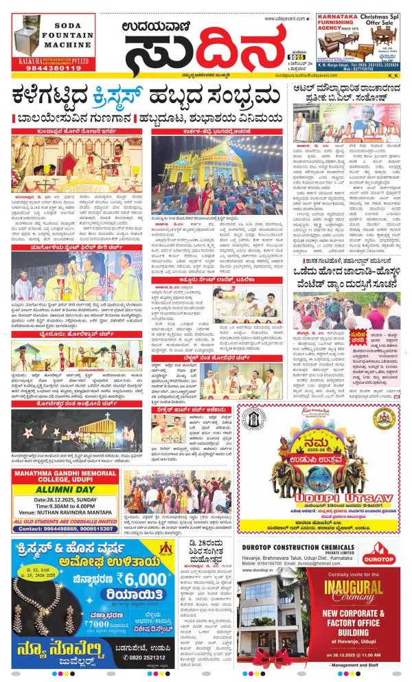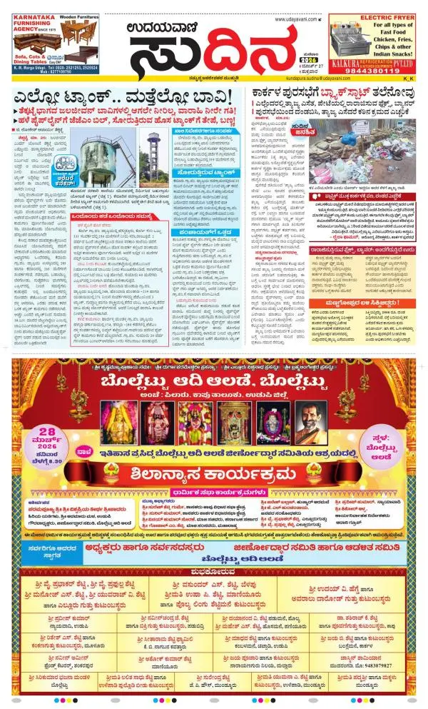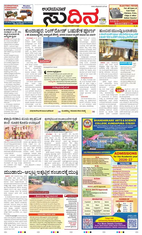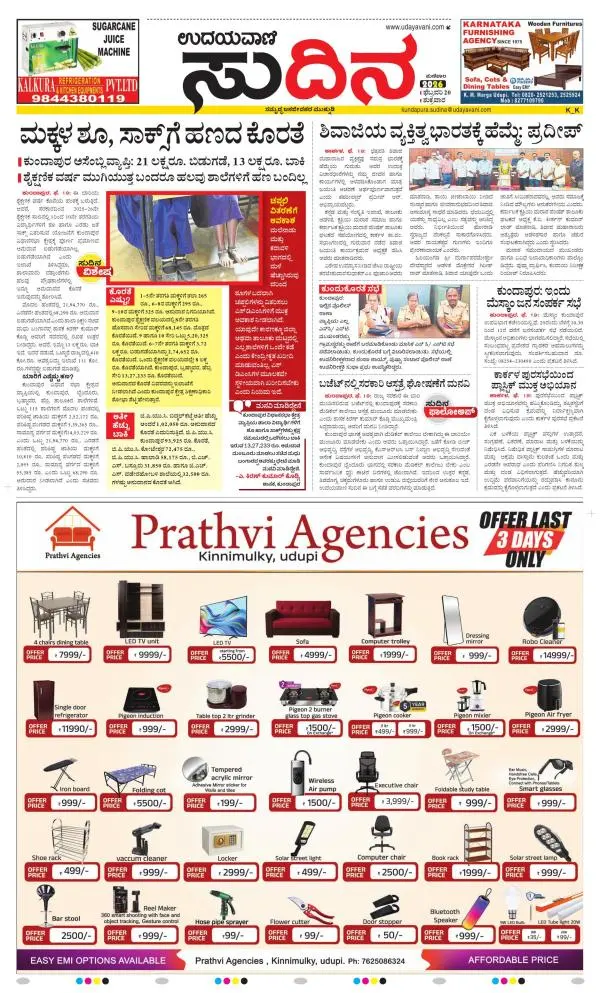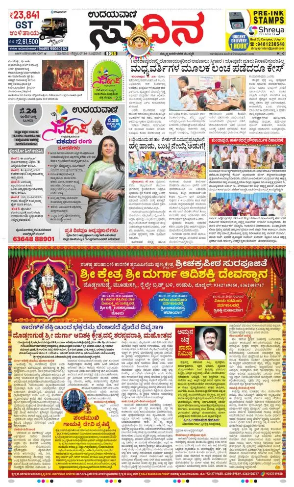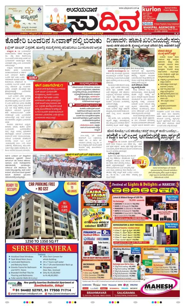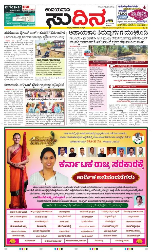 Udayavani is a leading Kannada Daily Newspaper with editions from Manipal, Bangalore, Mumbai, Hubli, Gulbarga & Davanagere.