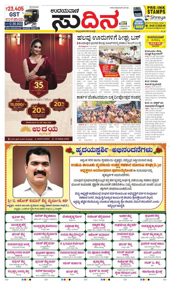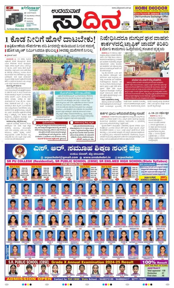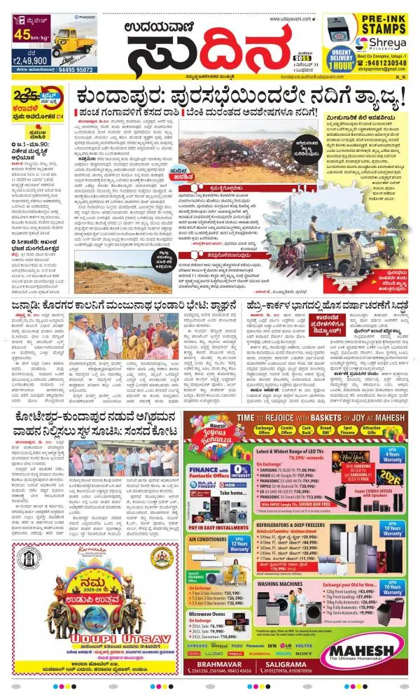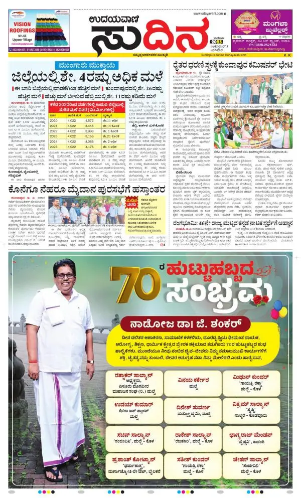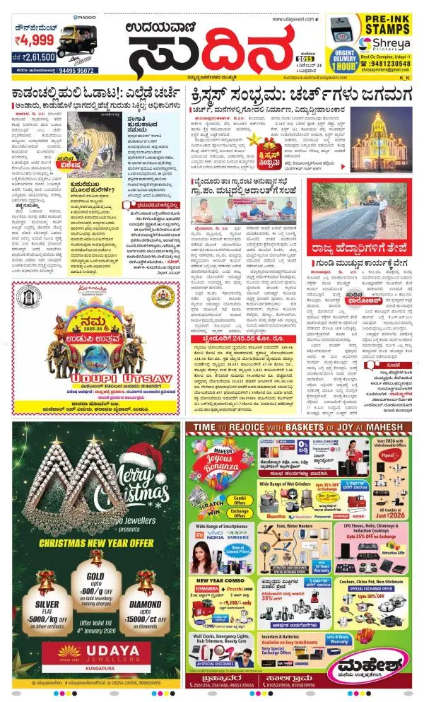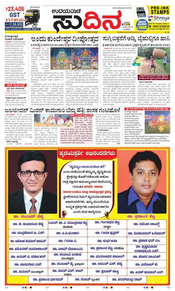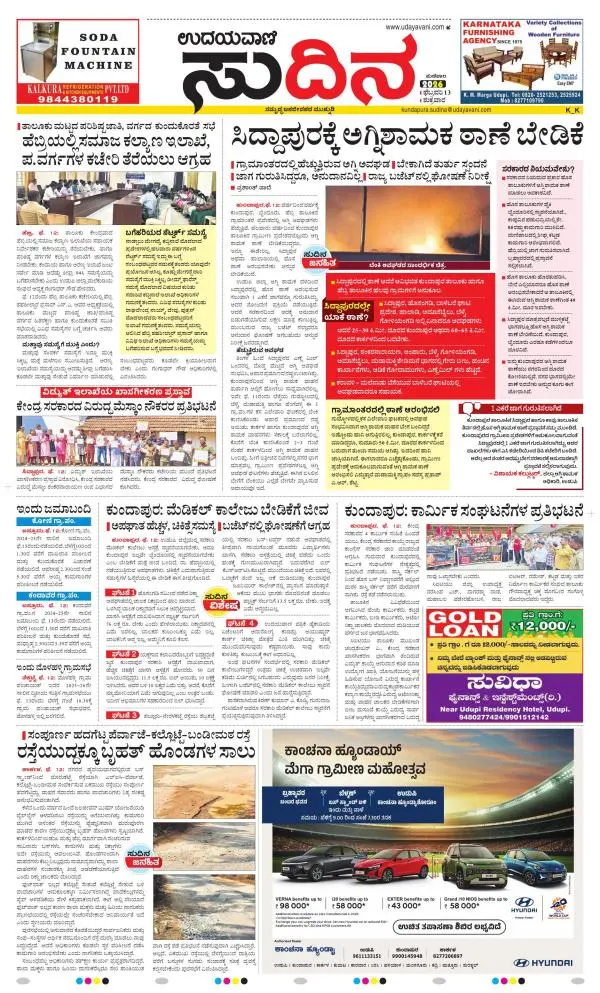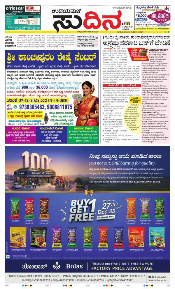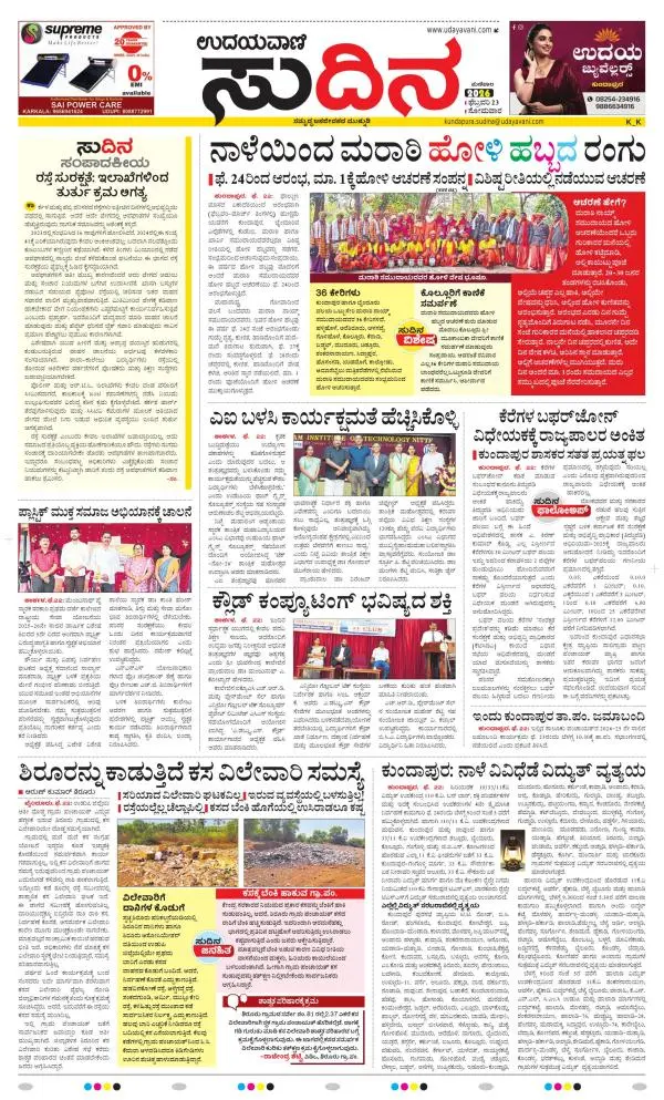 Udayavani is a leading Kannada Daily Newspaper with editions from Manipal, Bangalore, Mumbai, Hubli, Gulbarga & Davanagere.