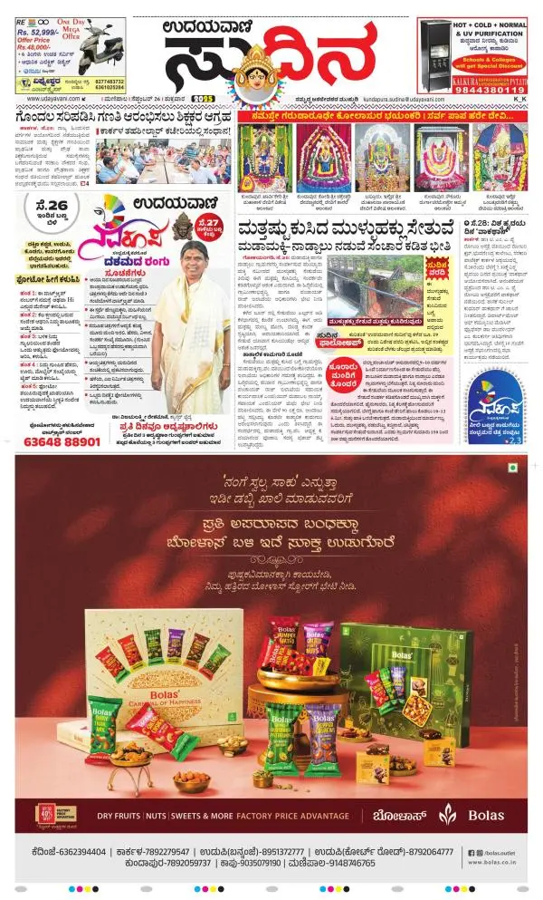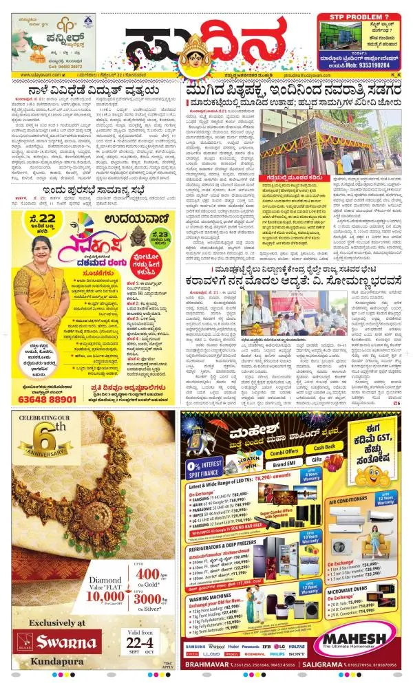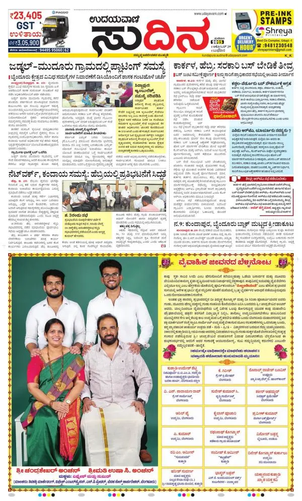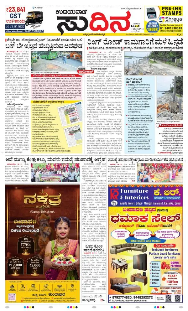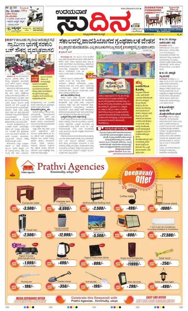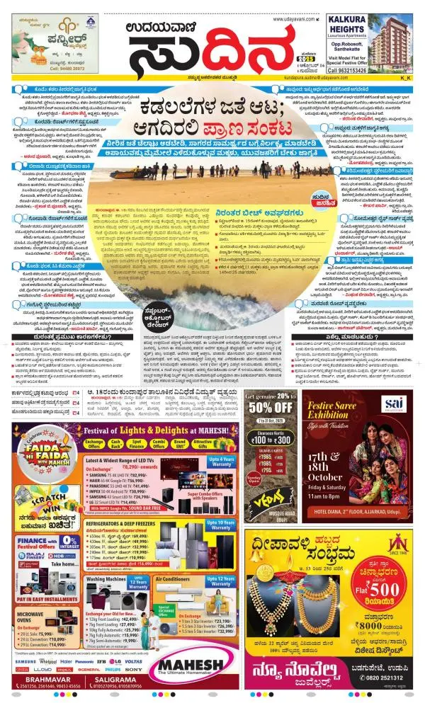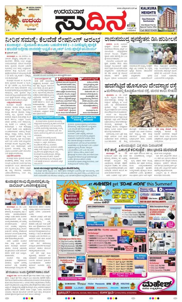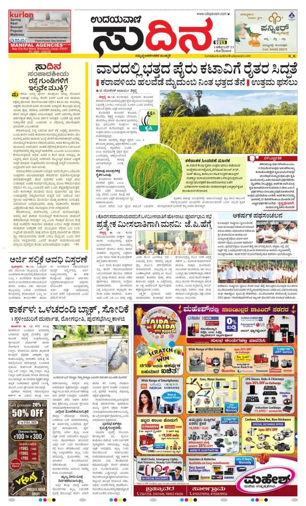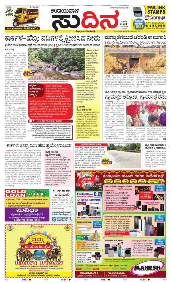 Udayavani is a leading Kannada Daily Newspaper with editions from Manipal, Bangalore, Mumbai, Hubli, Gulbarga & Davanagere.