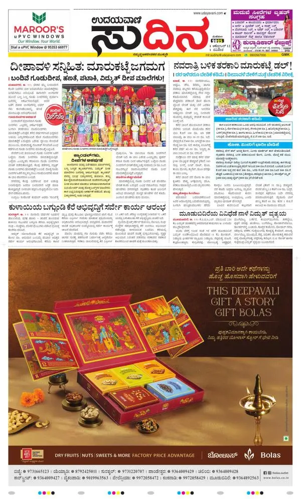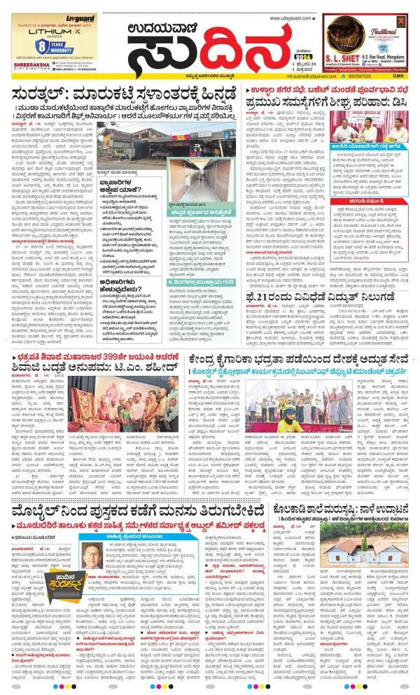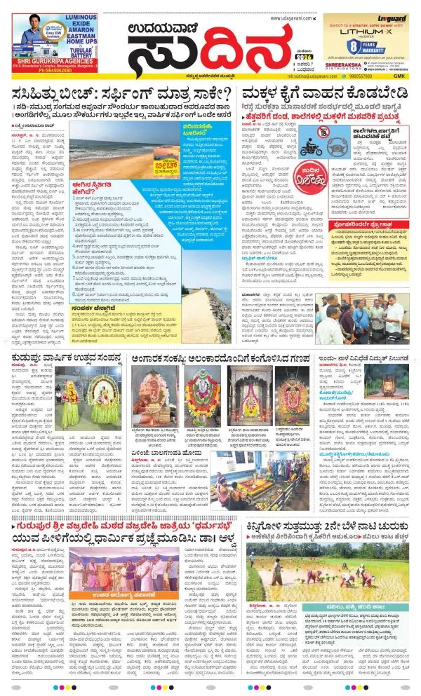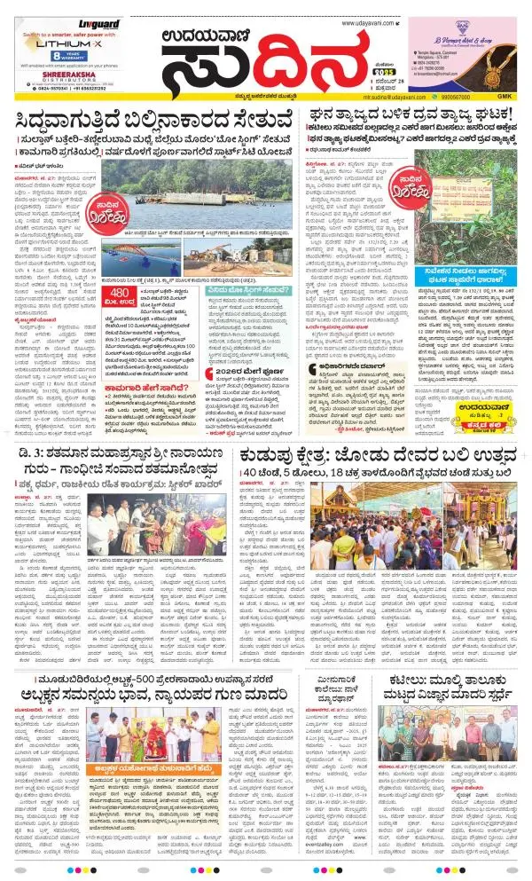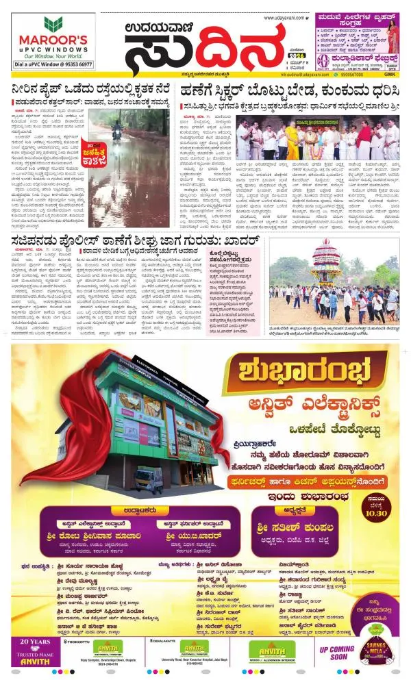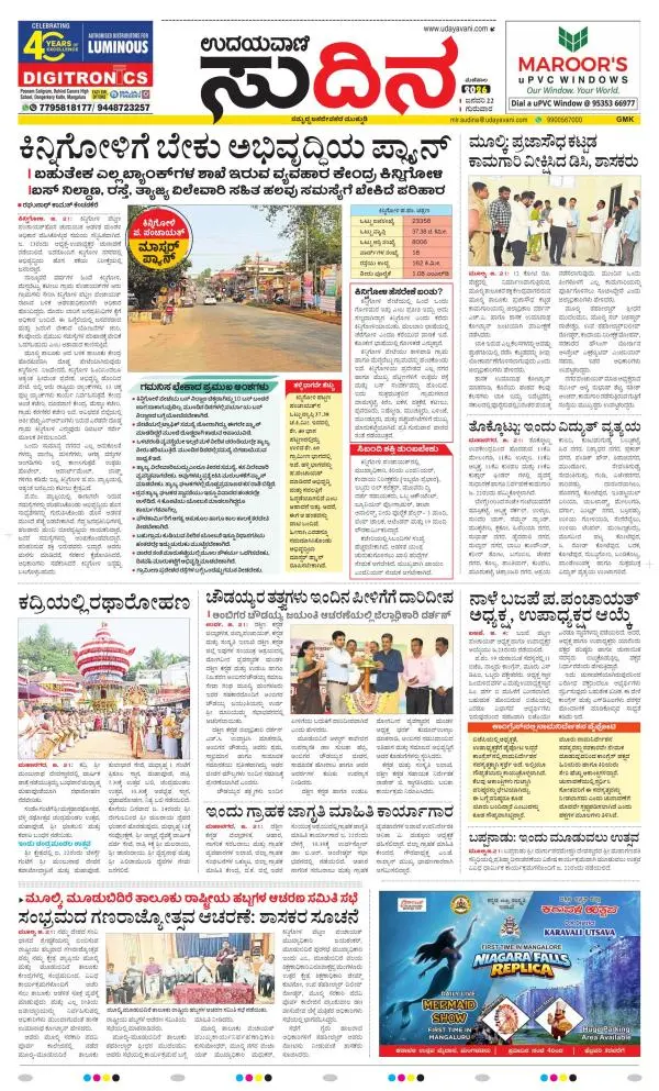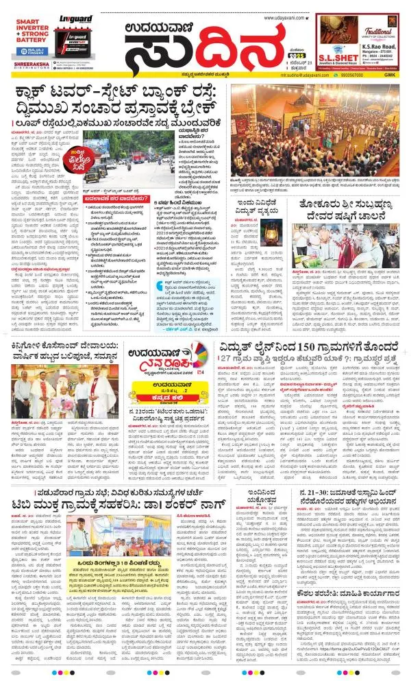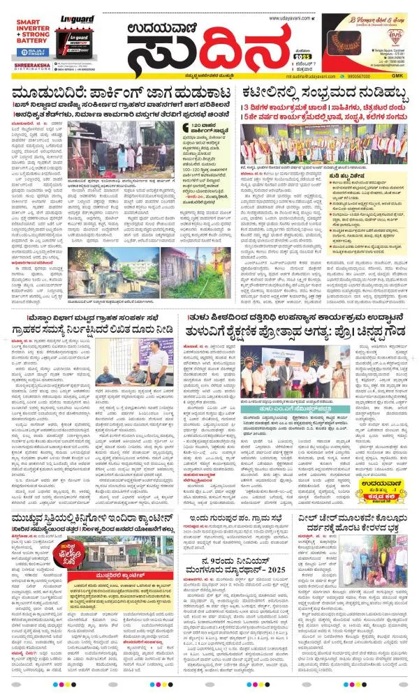 Udayavani is a leading Kannada Daily Newspaper with editions from Manipal, Bangalore, Mumbai, Hubli, Gulbarga & Davanagere.