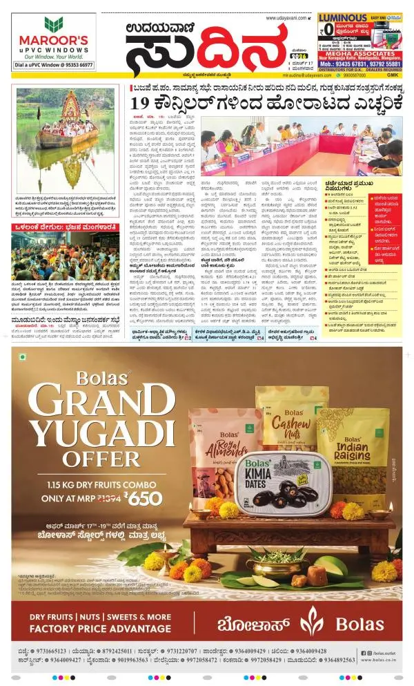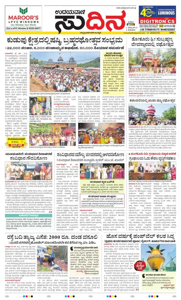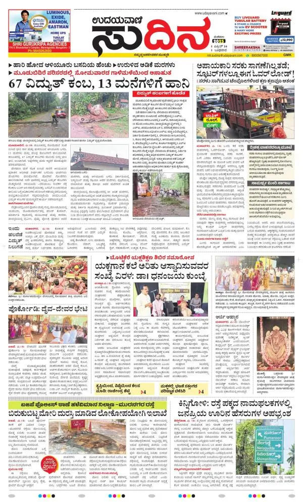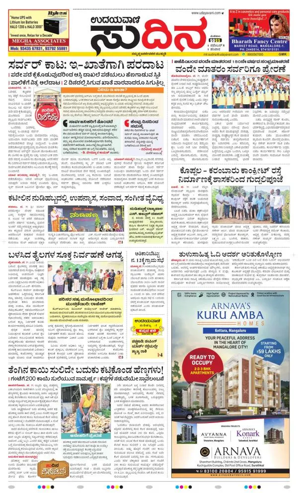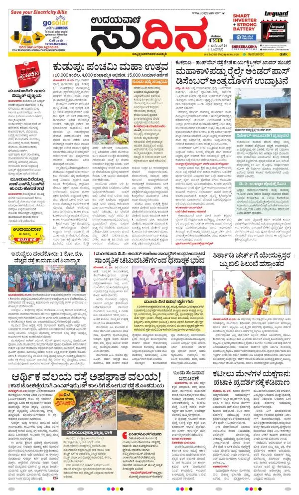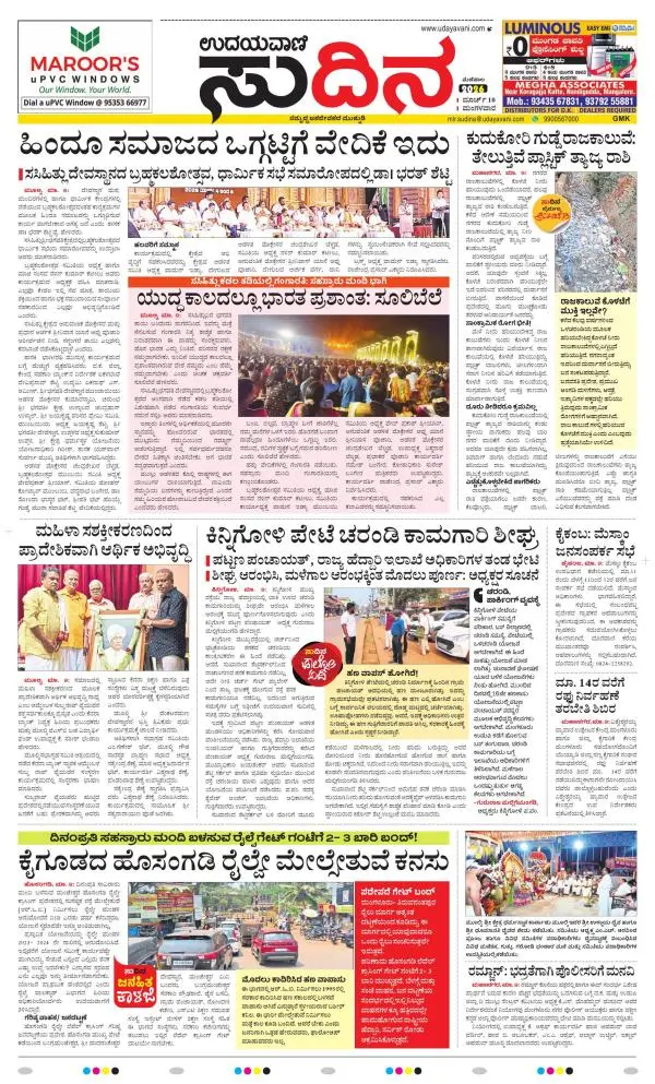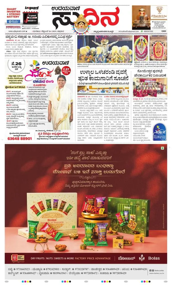Udayavani is a leading Kannada Daily Newspaper with editions from Manipal, Bangalore, Mumbai, Hubli, Gulbarga & Davanagere.