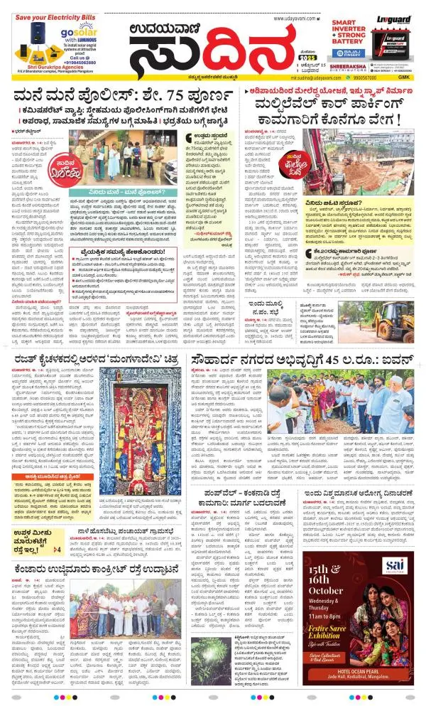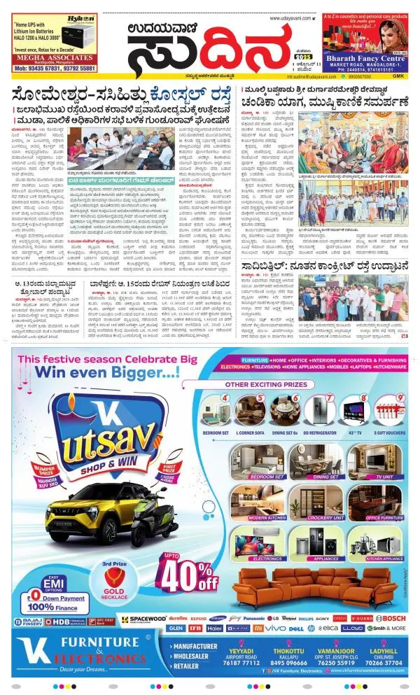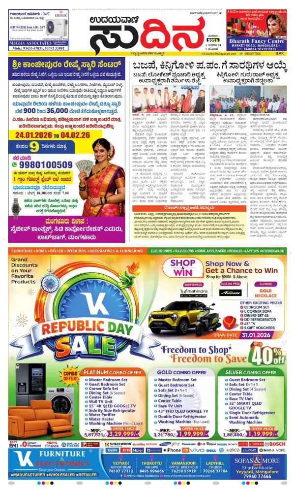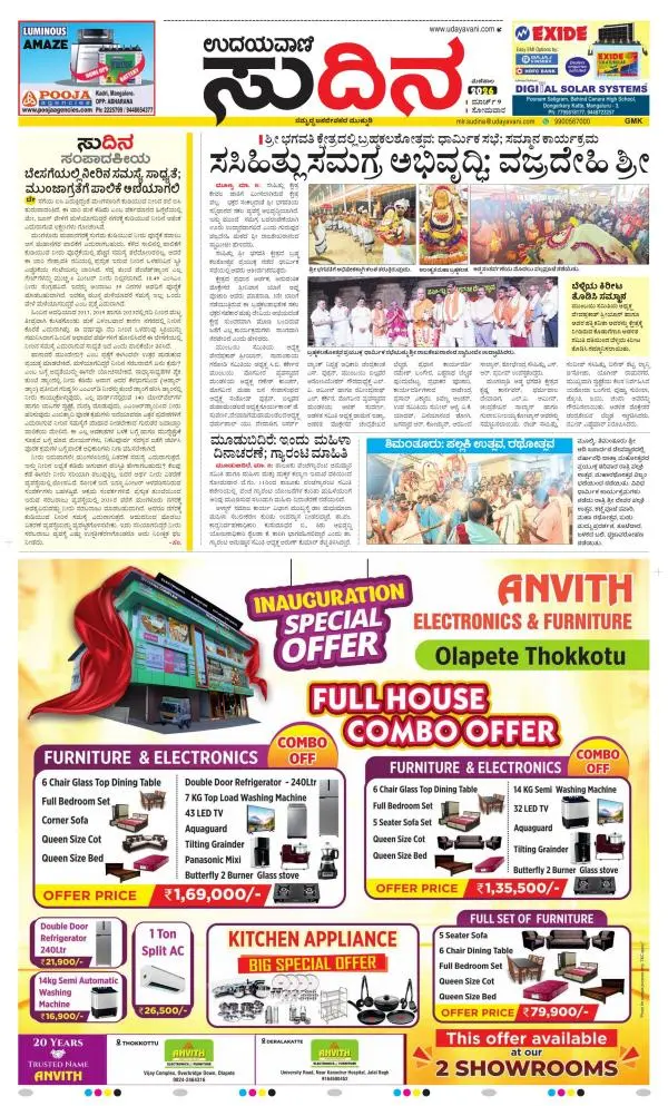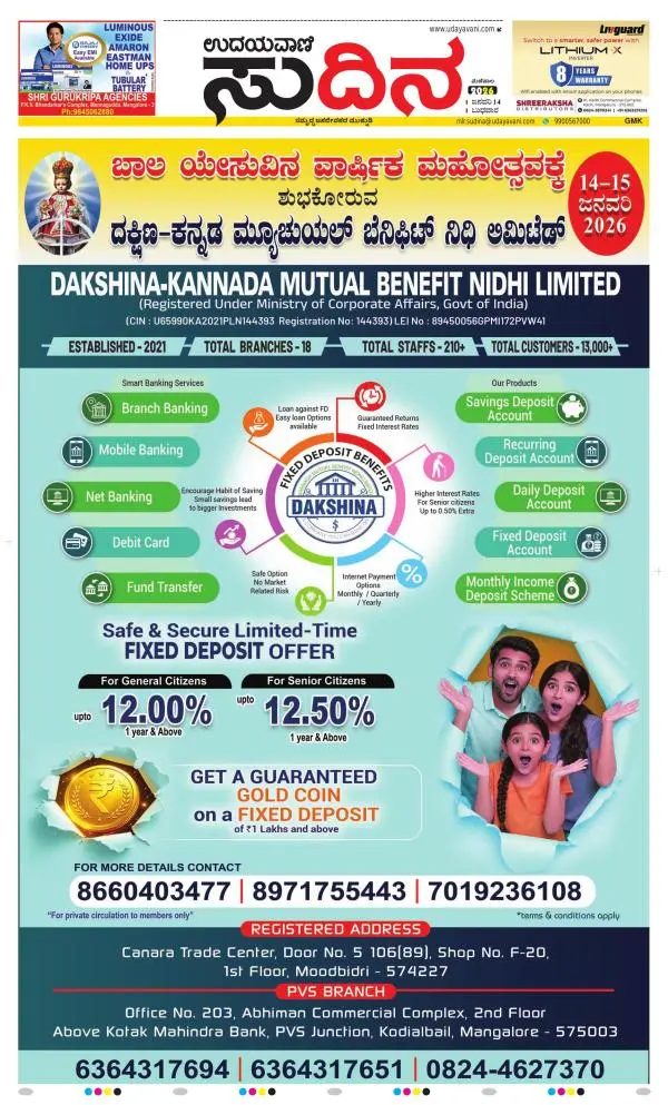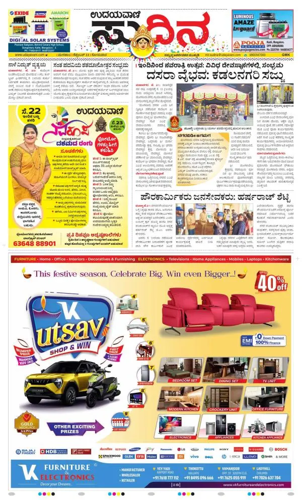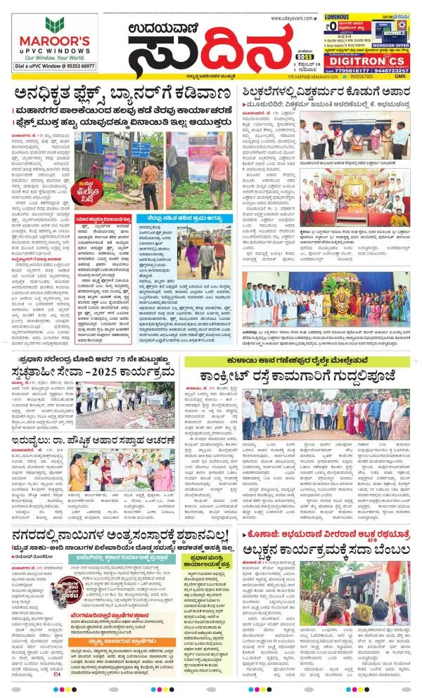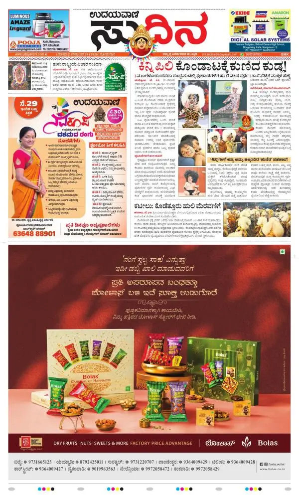 Udayavani is a leading Kannada Daily Newspaper with editions from Manipal, Bangalore, Mumbai, Hubli, Gulbarga & Davanagere.