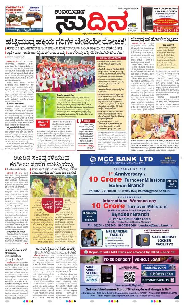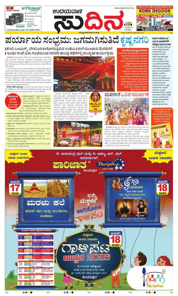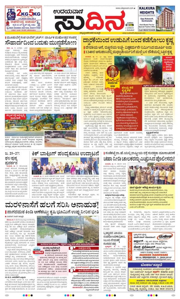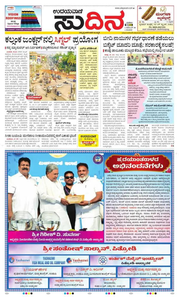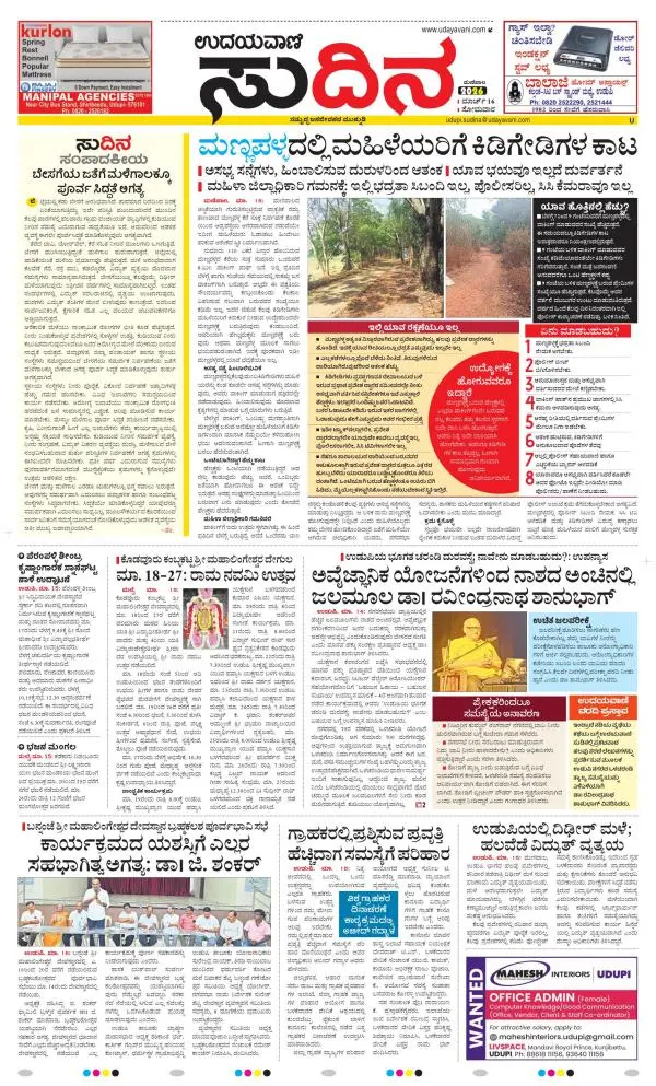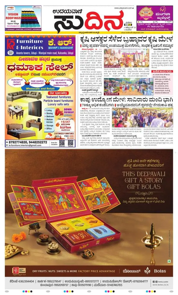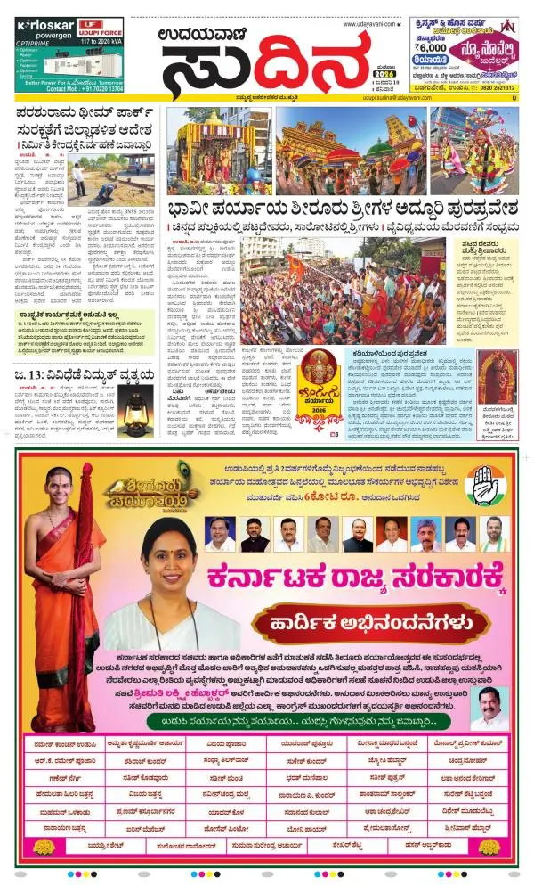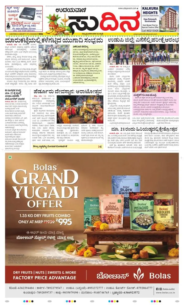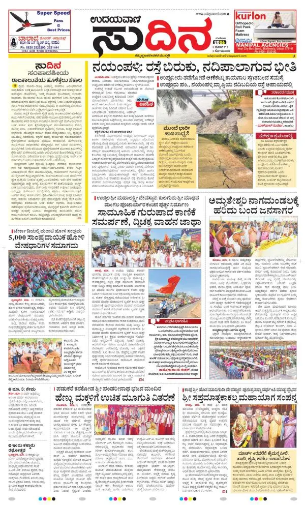 Udayavani is a leading Kannada Daily Newspaper with editions from Manipal, Bangalore, Mumbai, Hubli, Gulbarga & Davanagere.