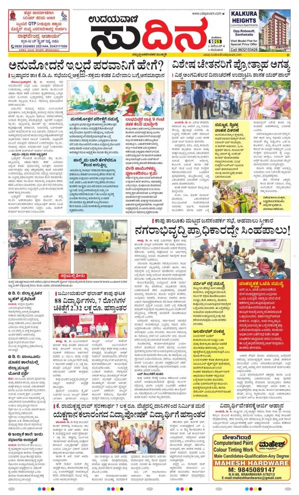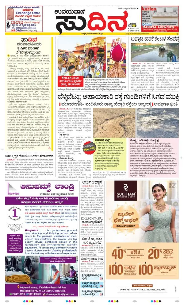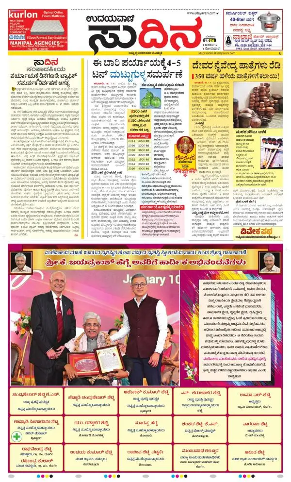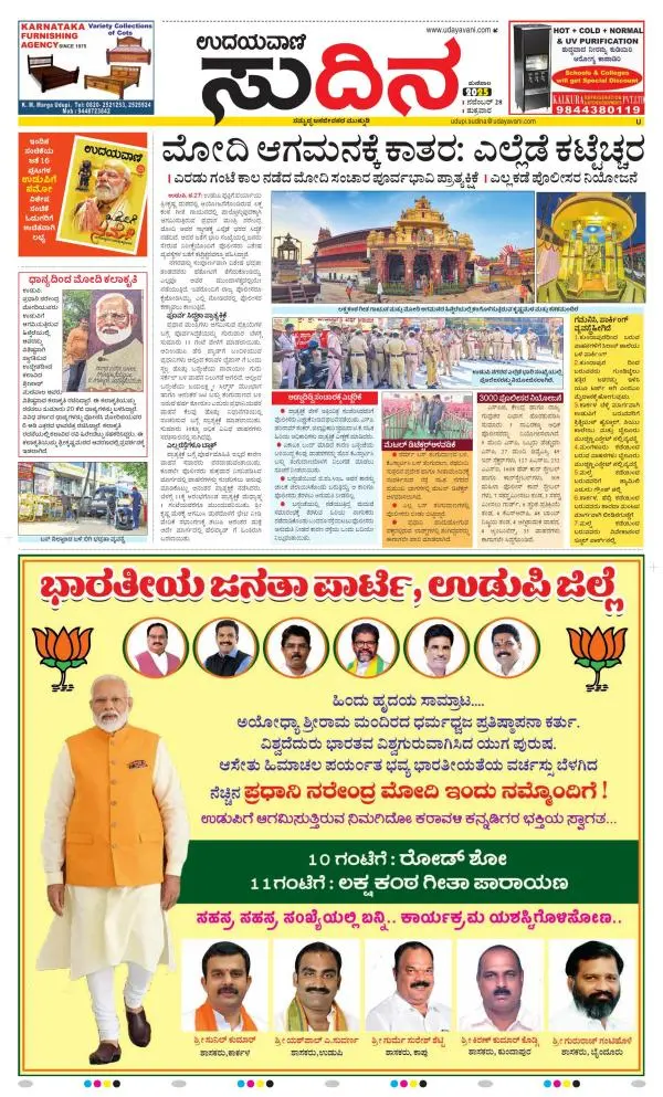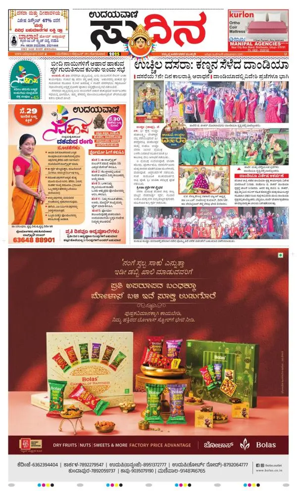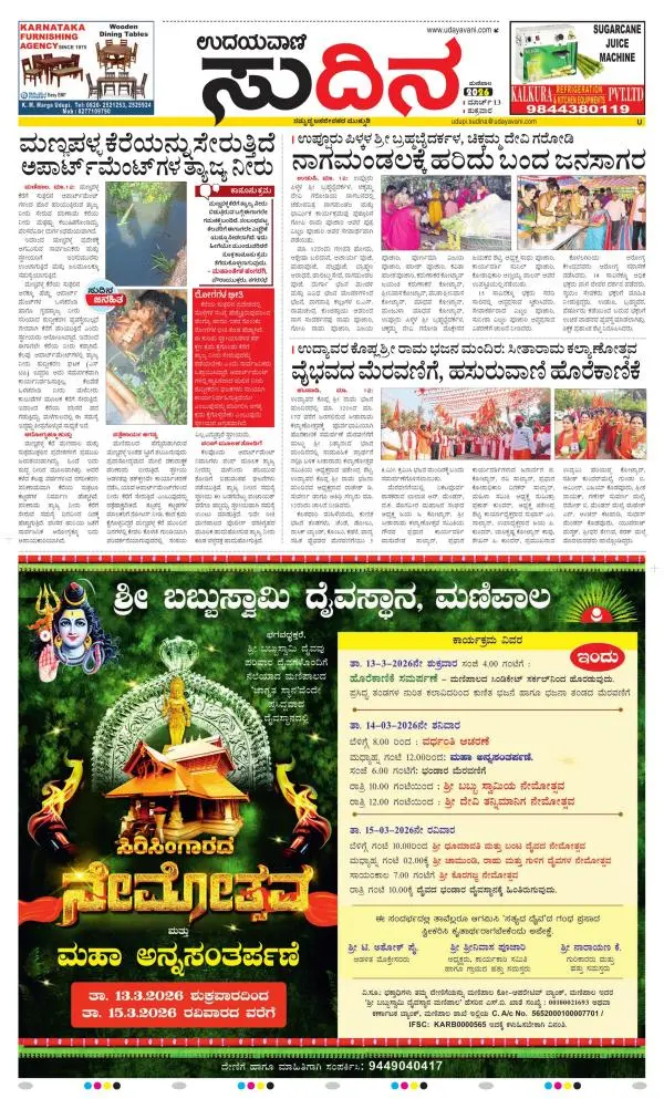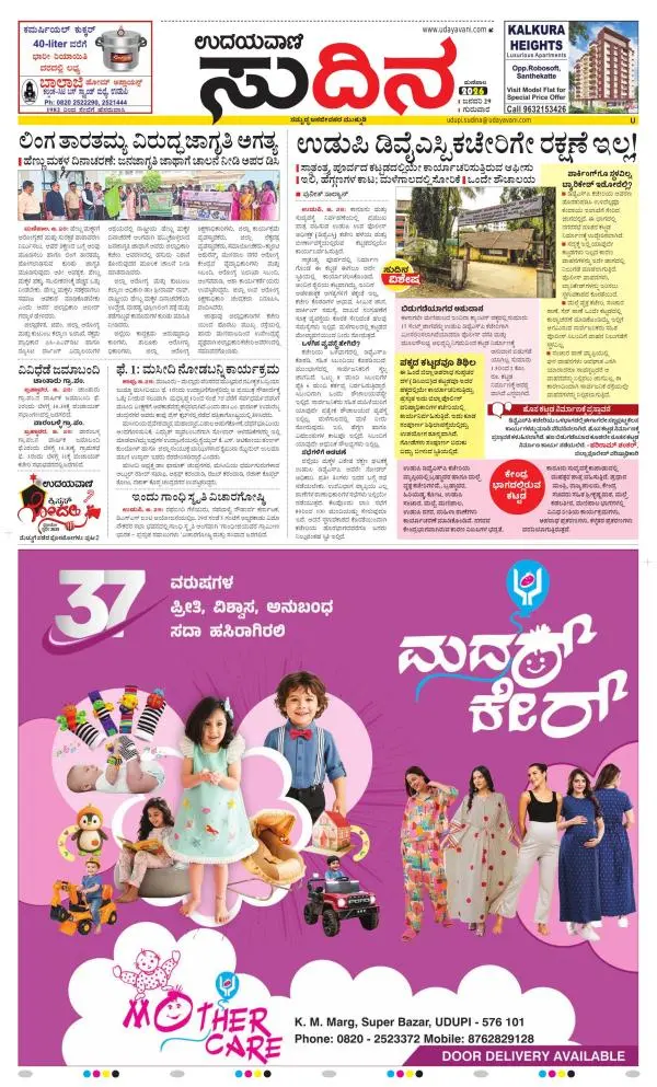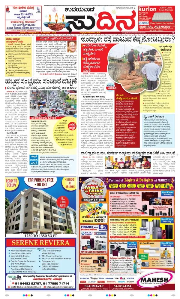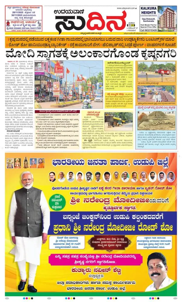 Udayavani is a leading Kannada Daily Newspaper with editions from Manipal, Bangalore, Mumbai, Hubli, Gulbarga & Davanagere.