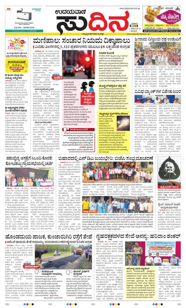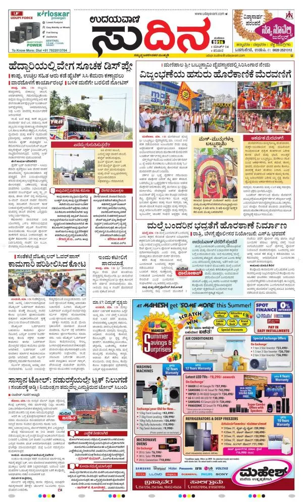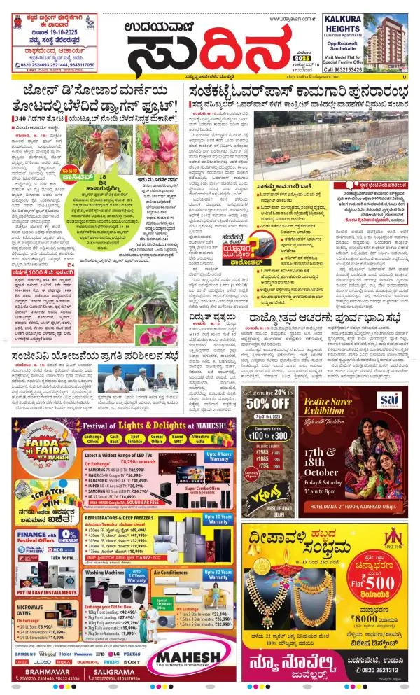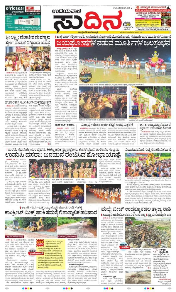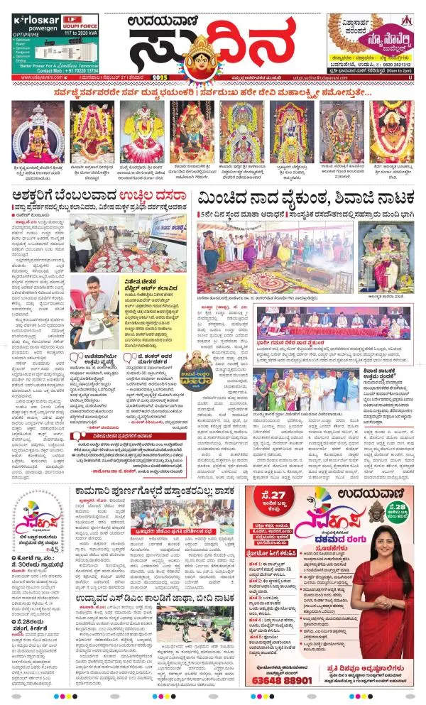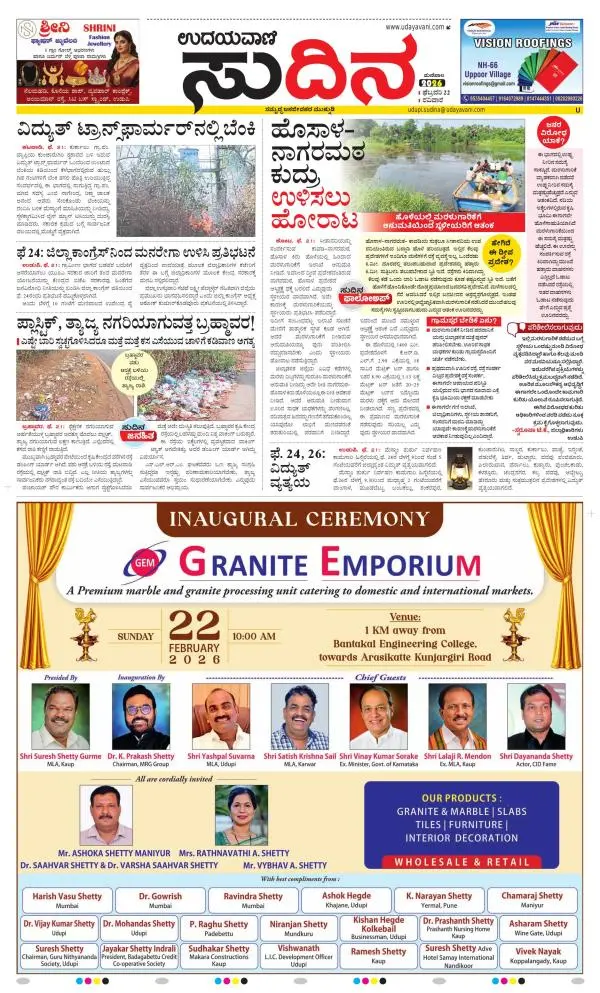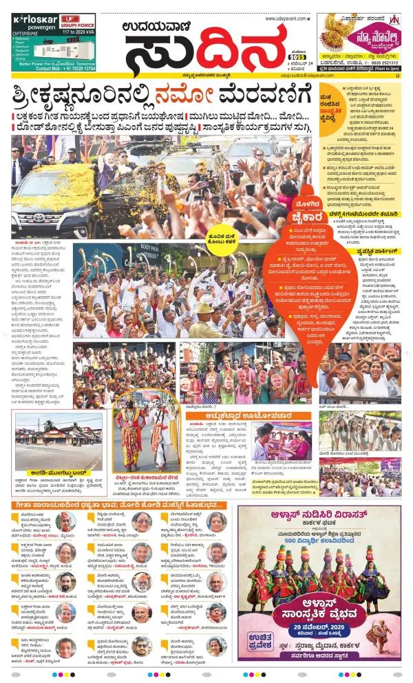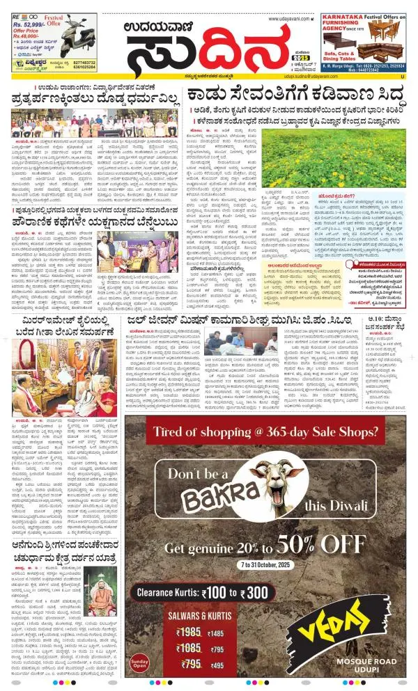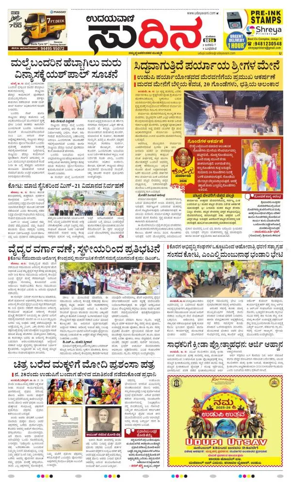 Udayavani is a leading Kannada Daily Newspaper with editions from Manipal, Bangalore, Mumbai, Hubli, Gulbarga & Davanagere.