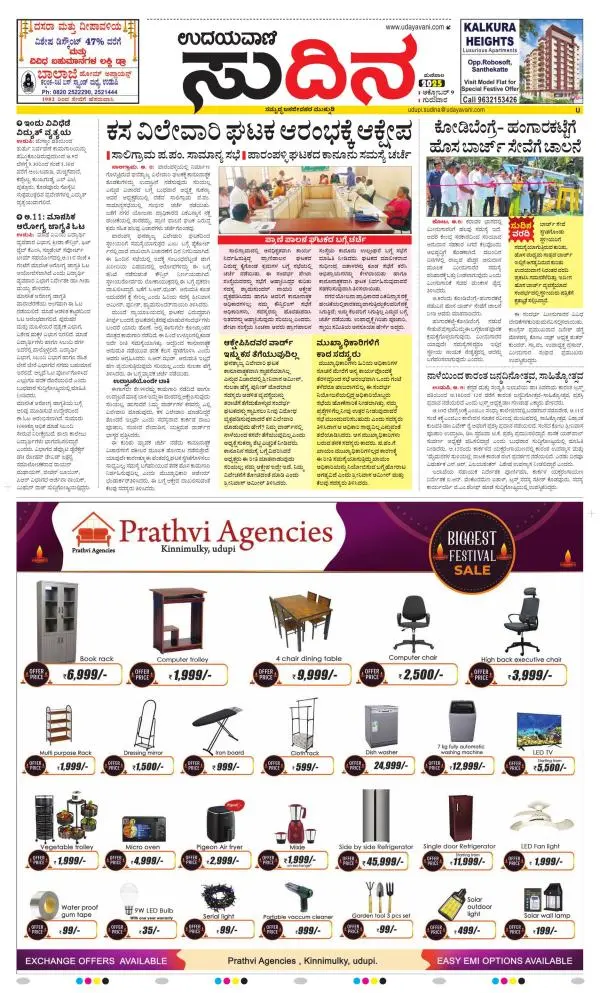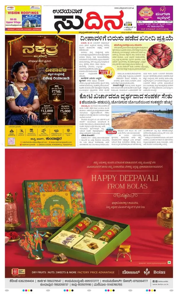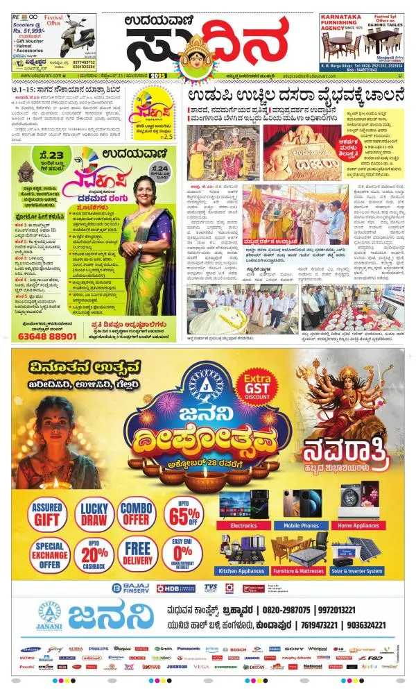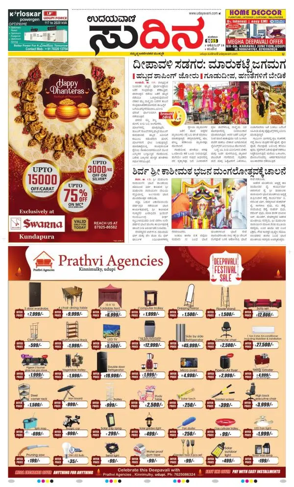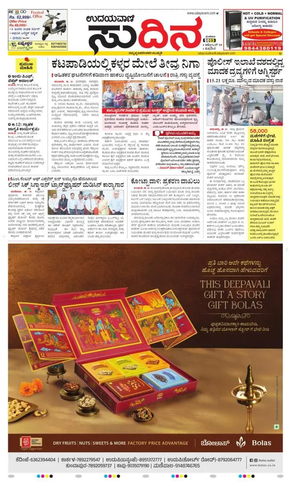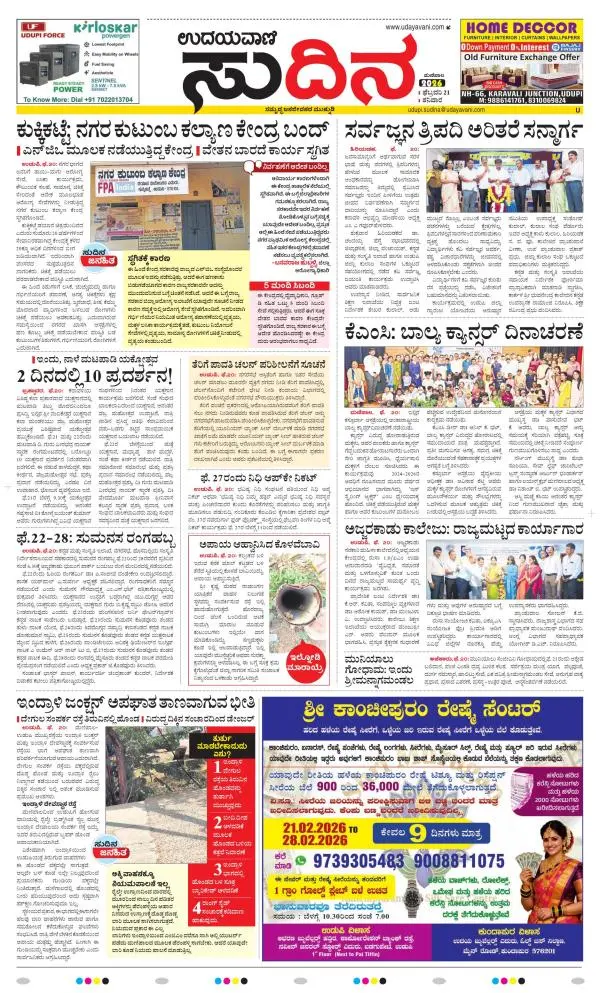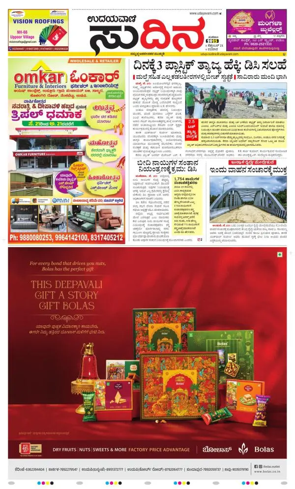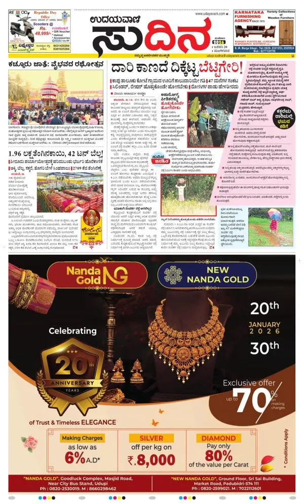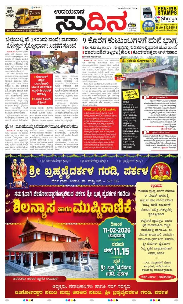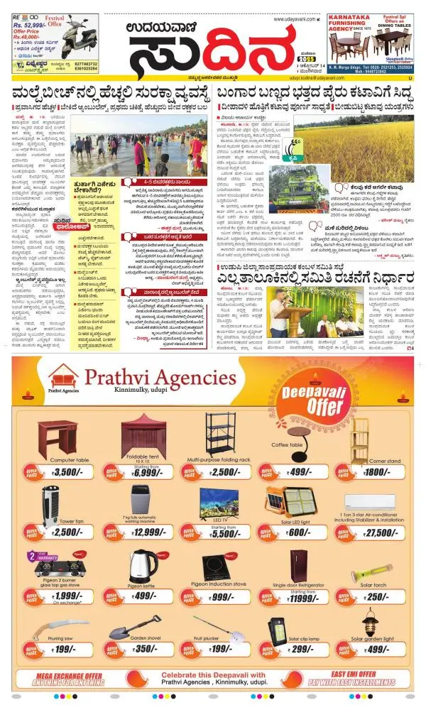 Udayavani is a leading Kannada Daily Newspaper with editions from Manipal, Bangalore, Mumbai, Hubli, Gulbarga & Davanagere.