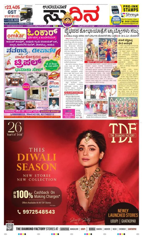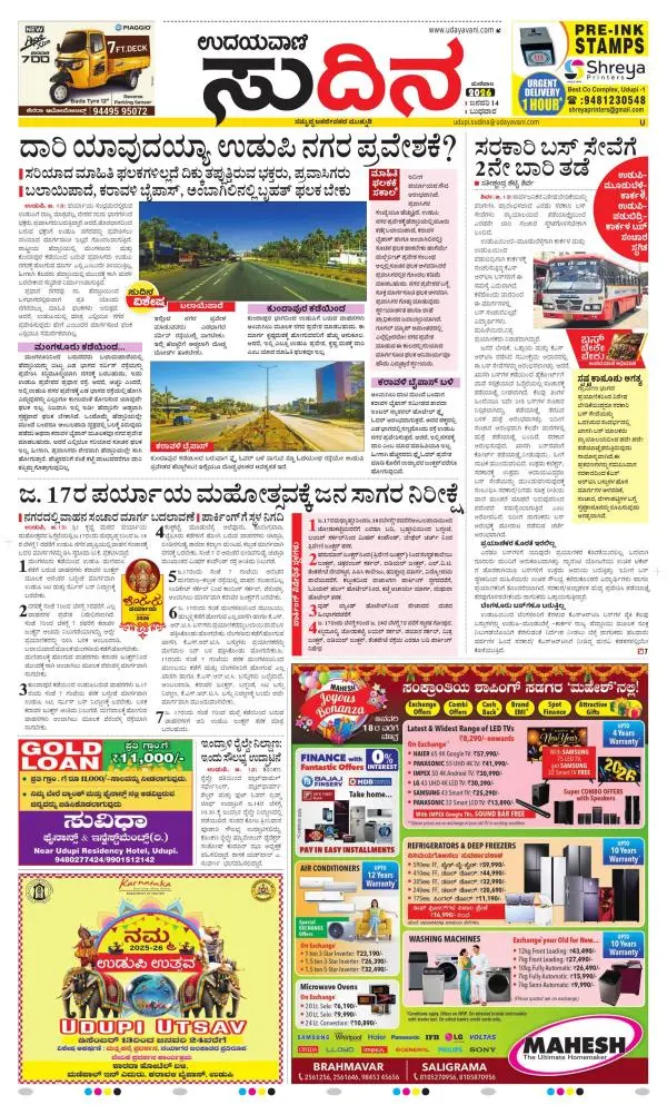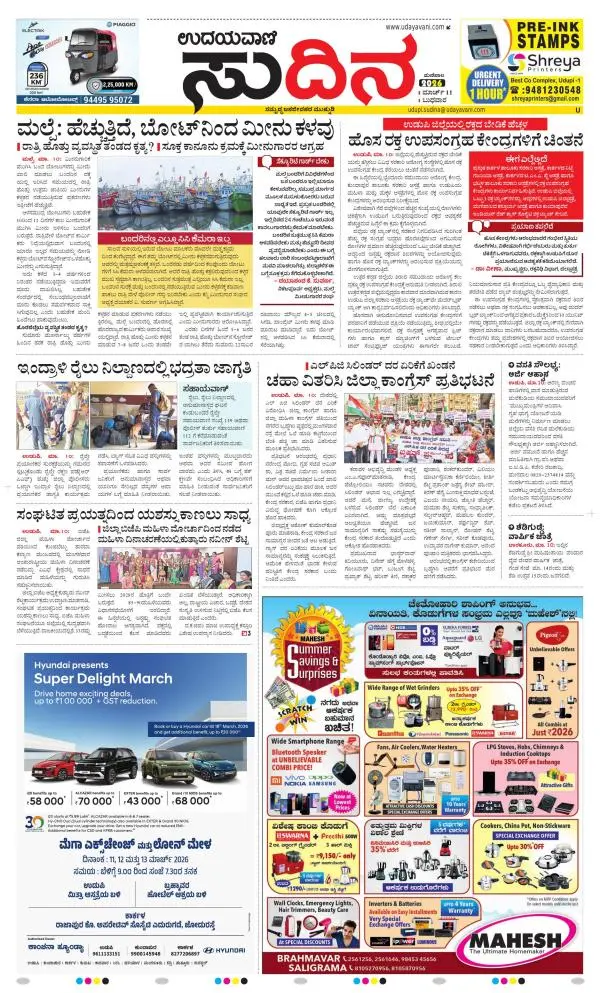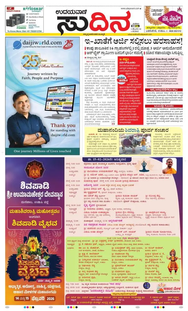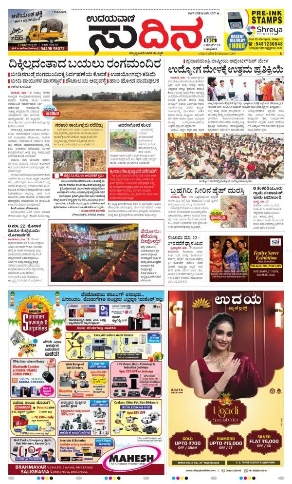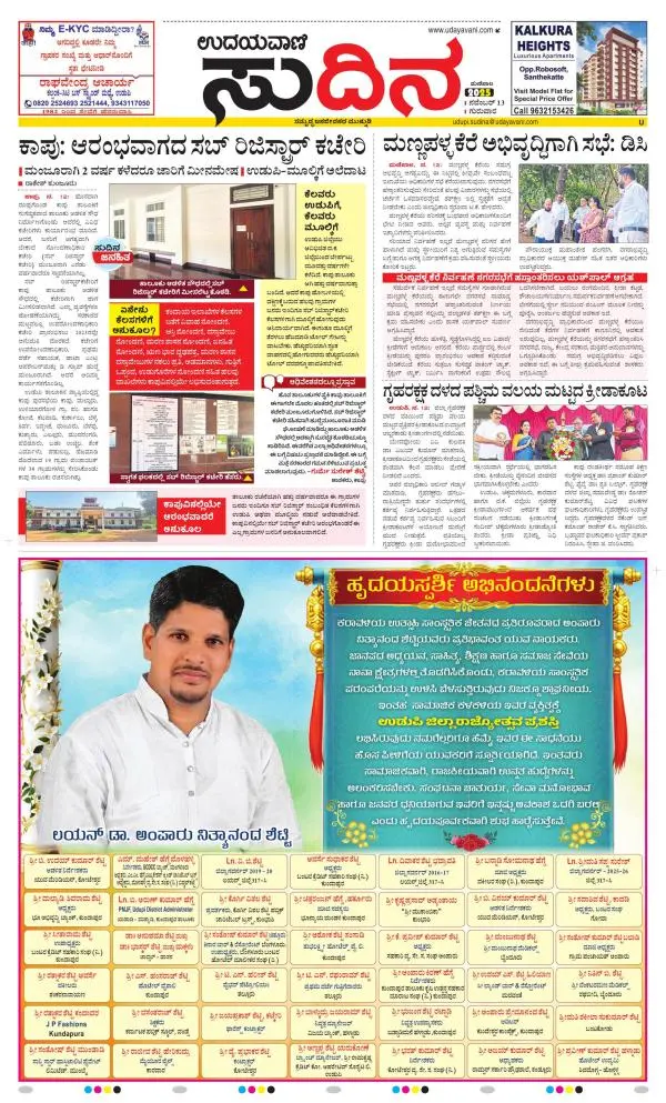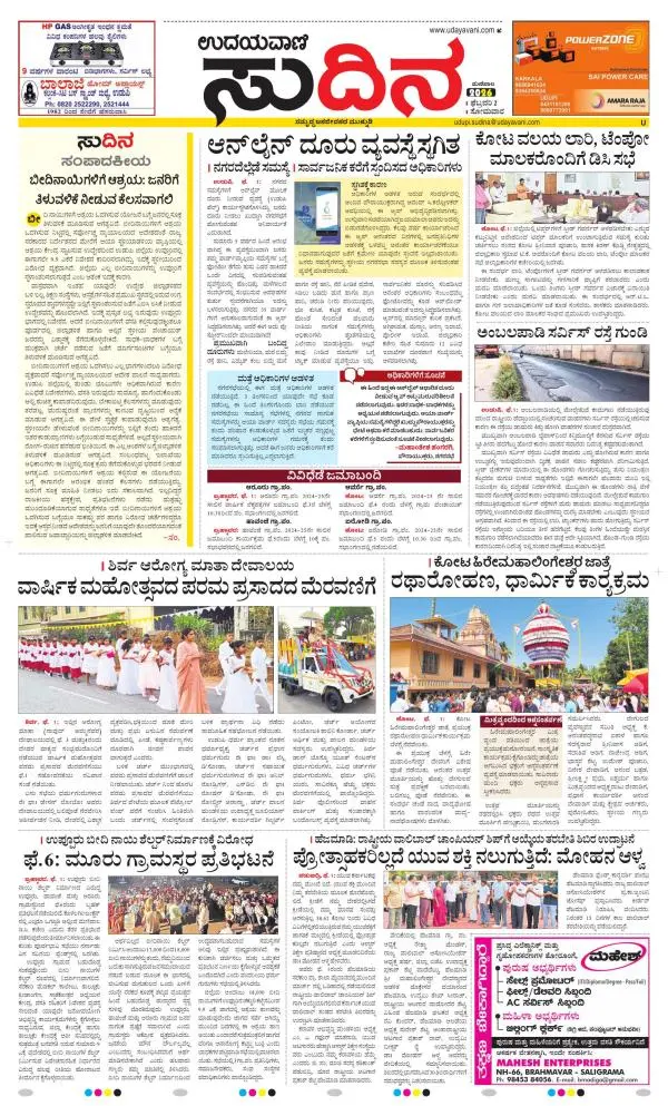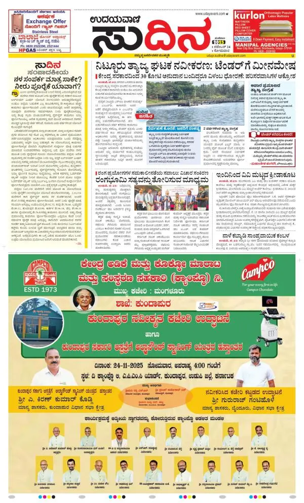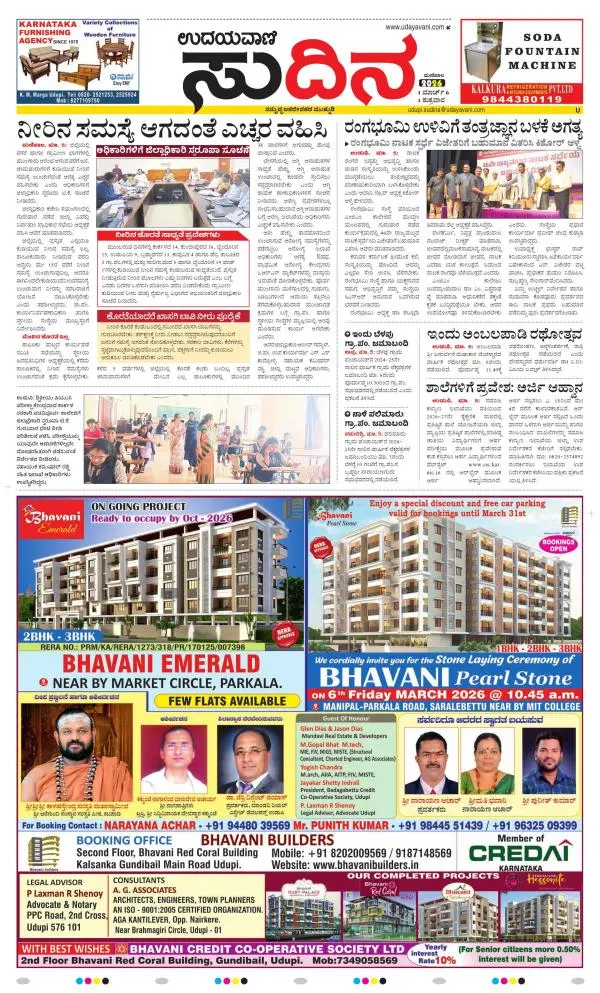 Udayavani is a leading Kannada Daily Newspaper with editions from Manipal, Bangalore, Mumbai, Hubli, Gulbarga & Davanagere.