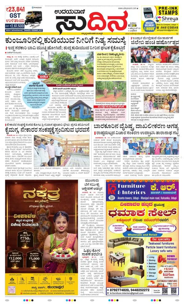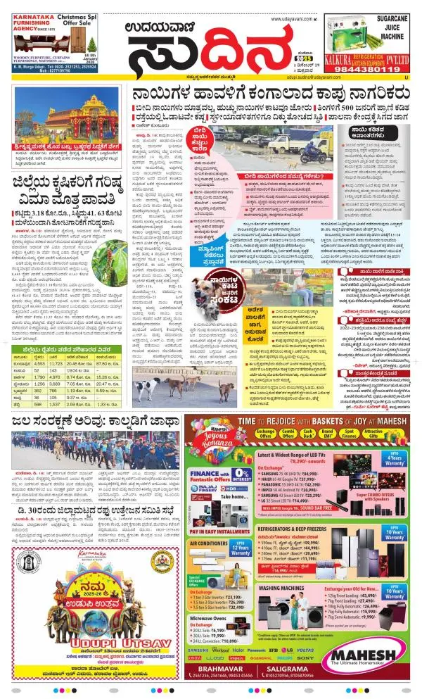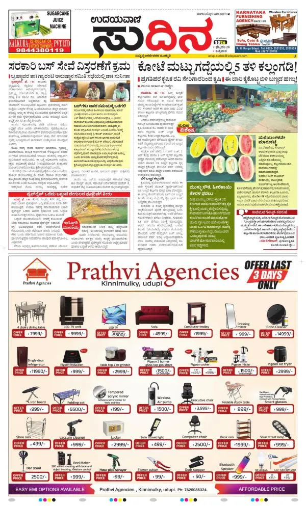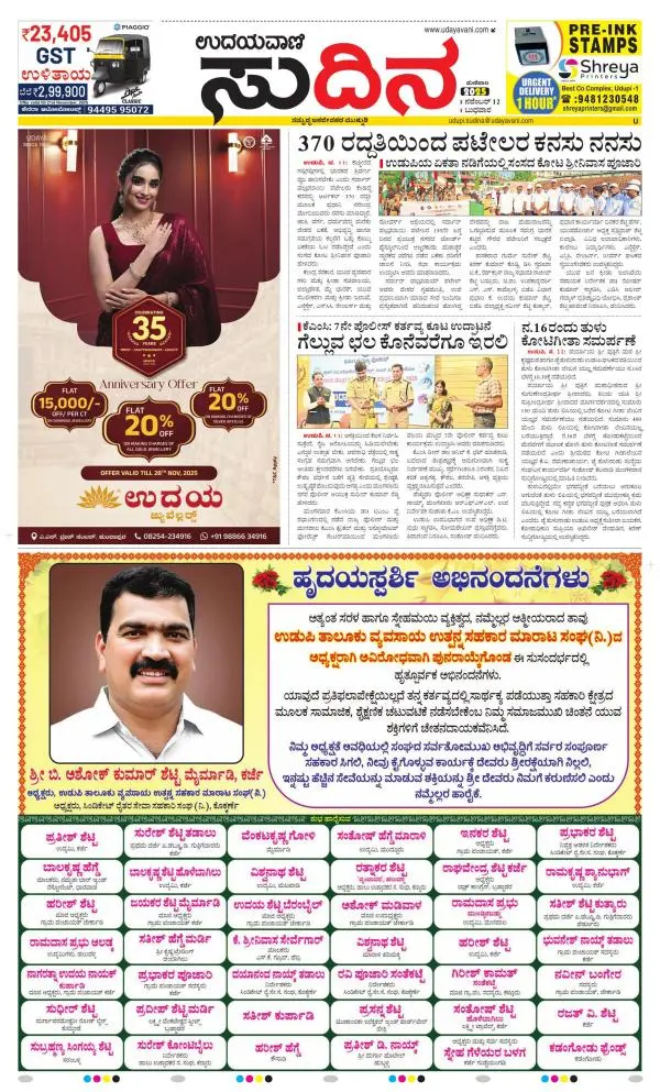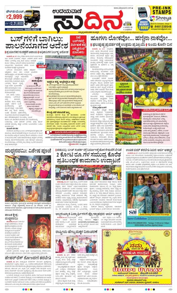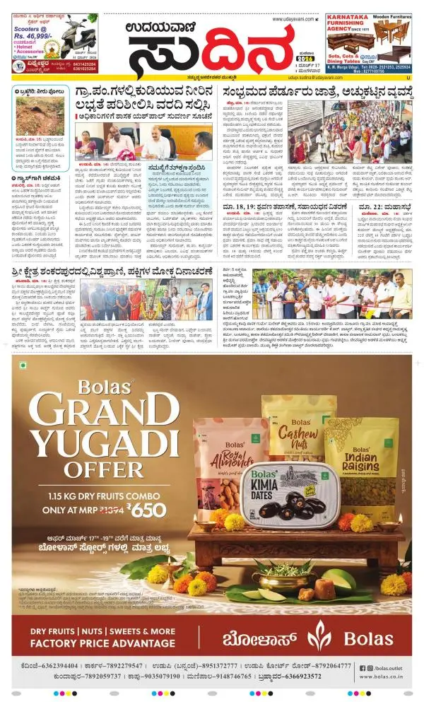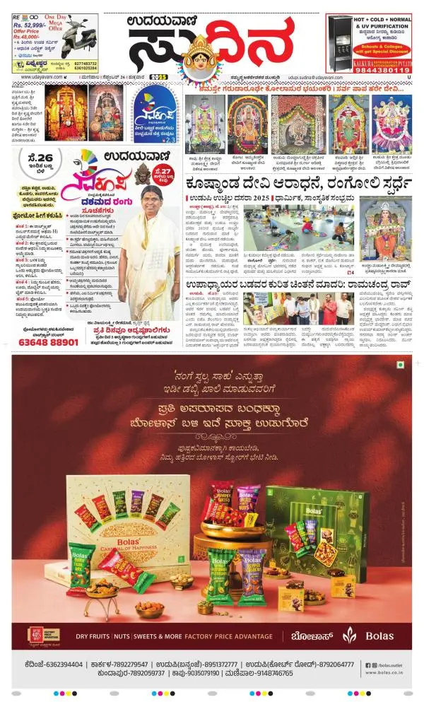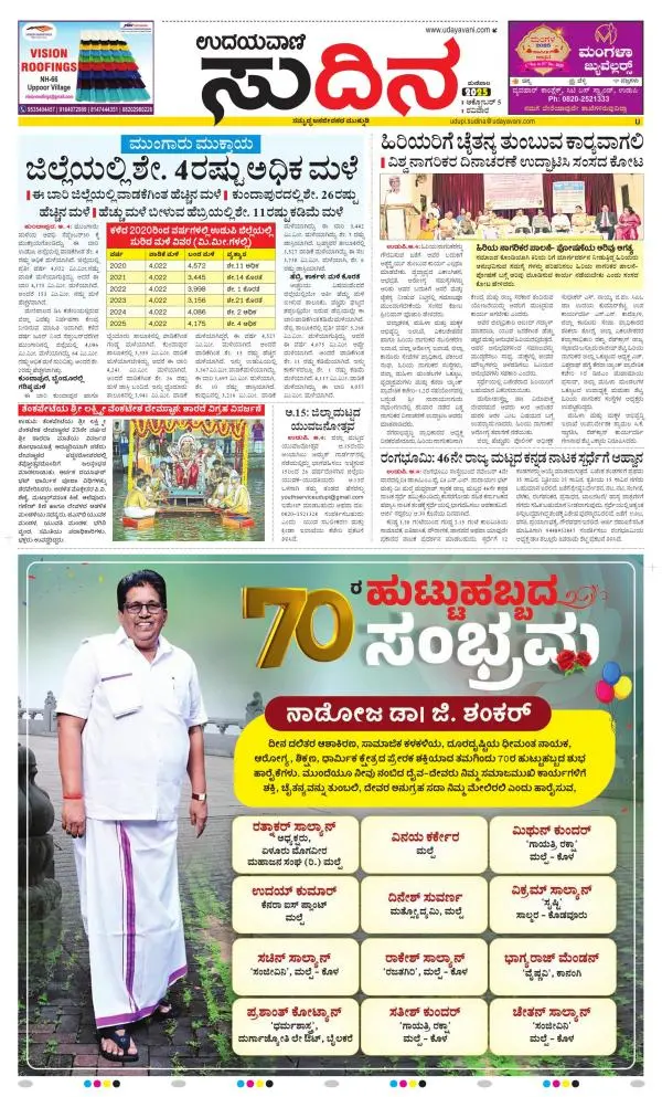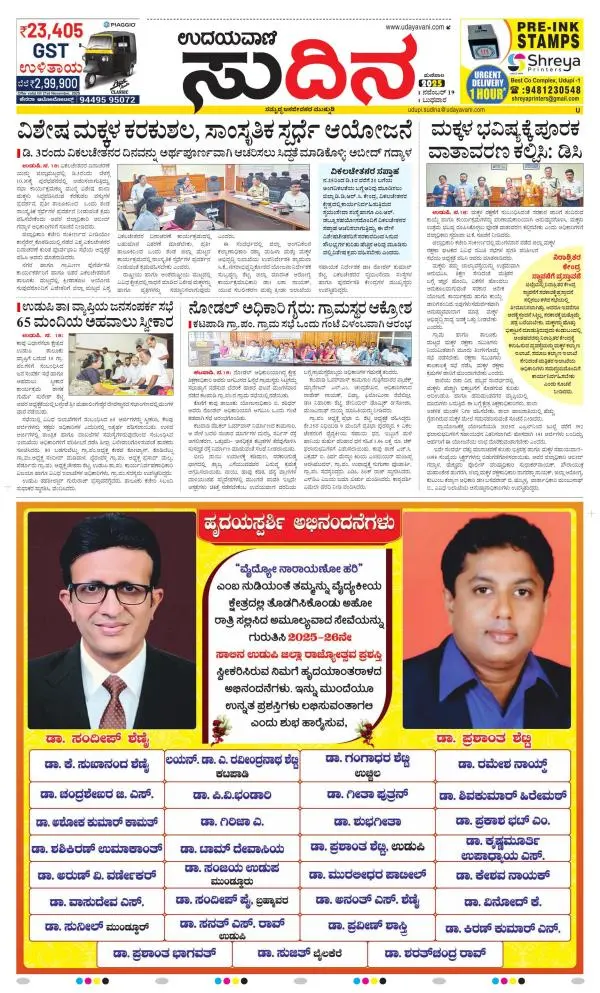 Udayavani is a leading Kannada Daily Newspaper with editions from Manipal, Bangalore, Mumbai, Hubli, Gulbarga & Davanagere.