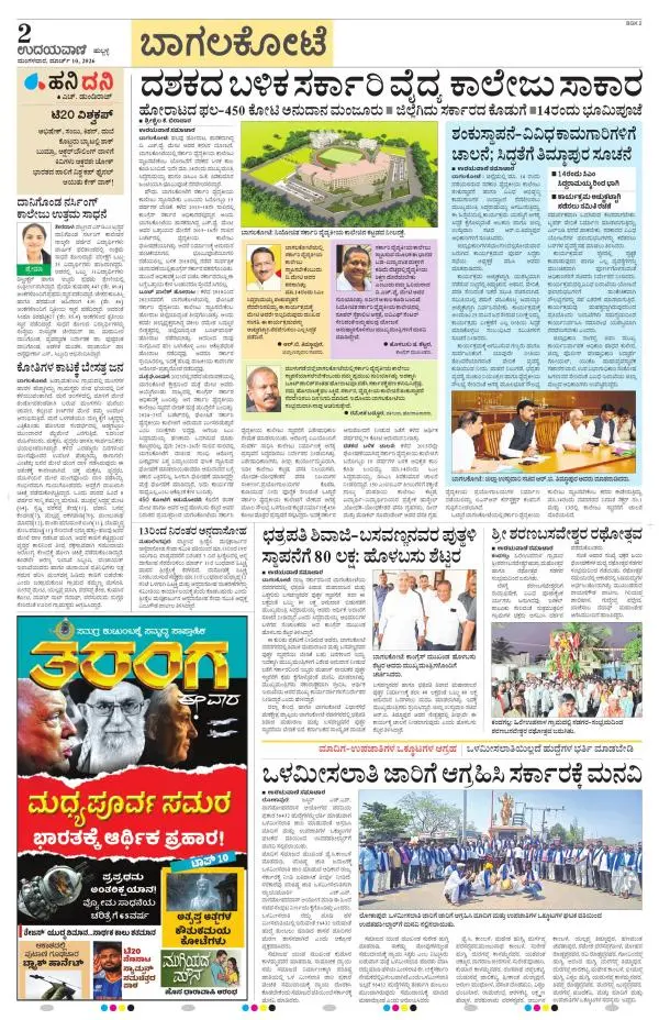 Udayavani is a leading Kannada Daily Newspaper with editions from Manipal, Bangalore, Mumbai, Hubli, Gulbarga & Davanagere.