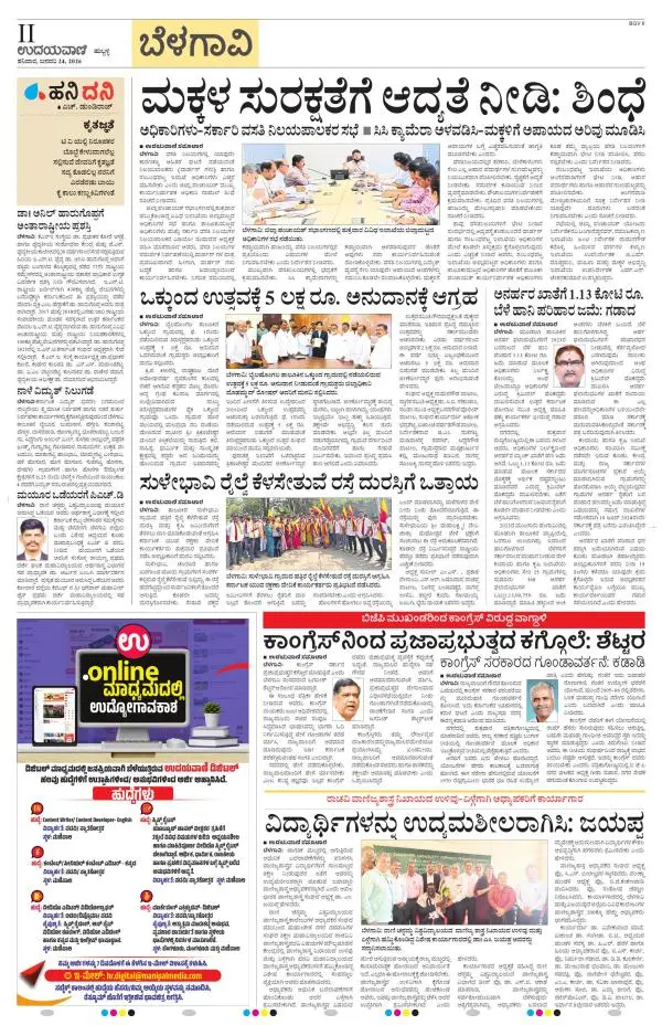 Udayavani is a leading Kannada Daily Newspaper with editions from Manipal, Bangalore, Mumbai, Hubli, Gulbarga & Davanagere.