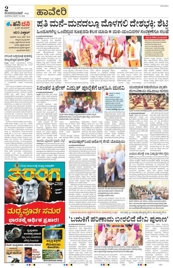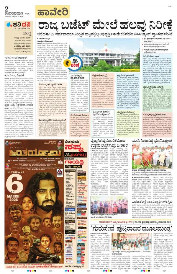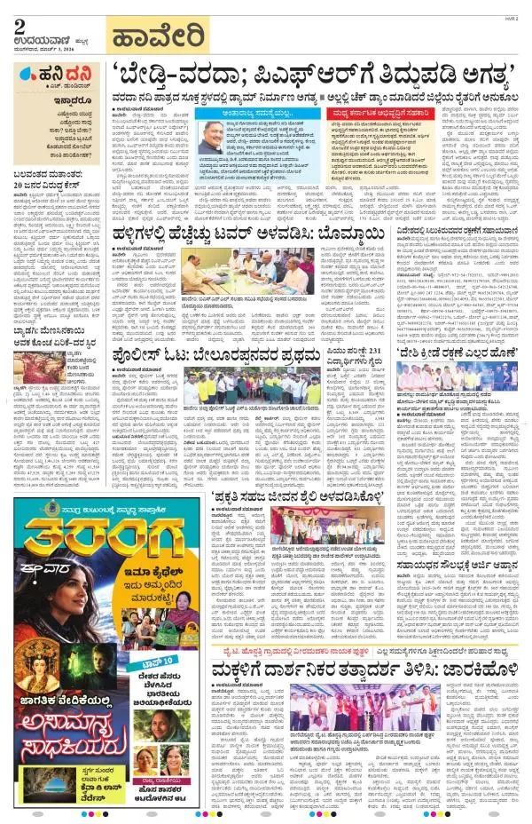 Udayavani is a leading Kannada Daily Newspaper with editions from Manipal, Bangalore, Mumbai, Hubli, Gulbarga & Davanagere.