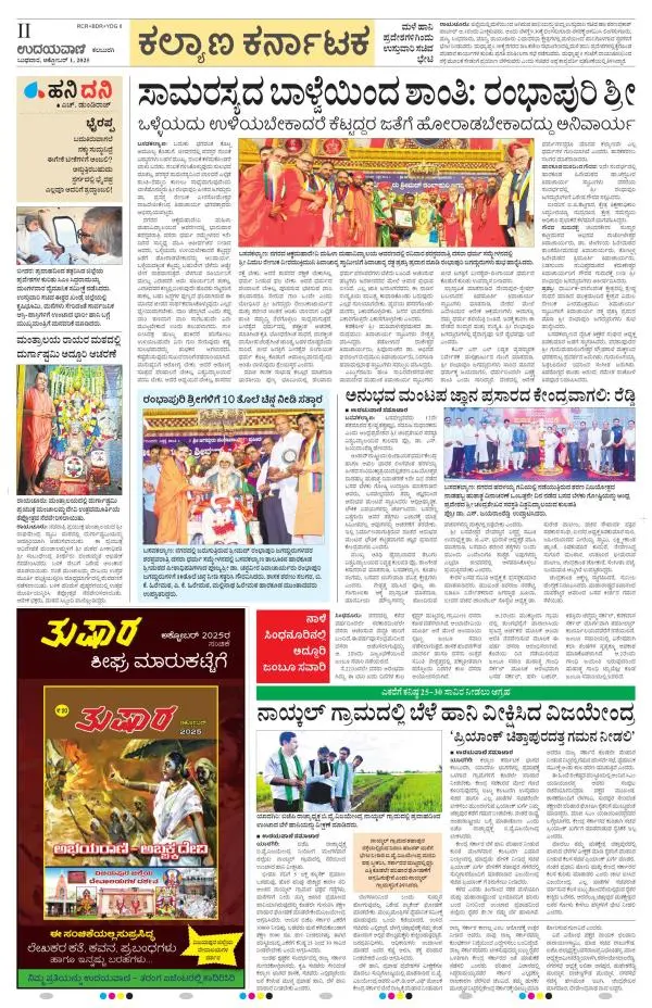 Udayavani is a leading Kannada Daily Newspaper with editions from Manipal, Bangalore, Mumbai, Hubli, Gulbarga & Davanagere.