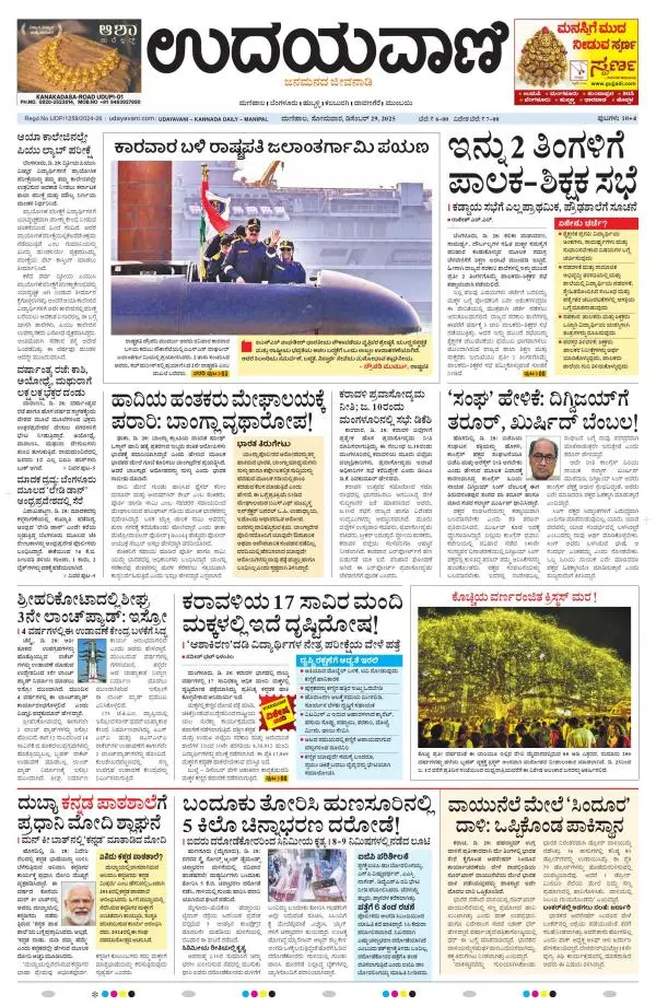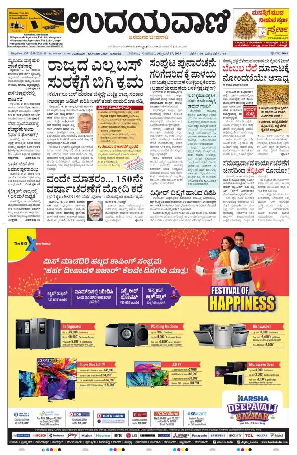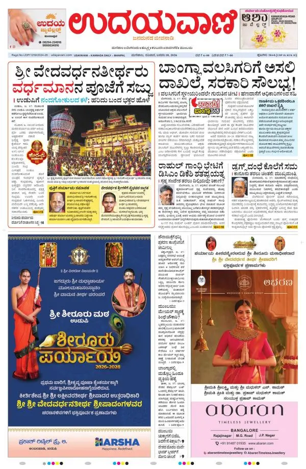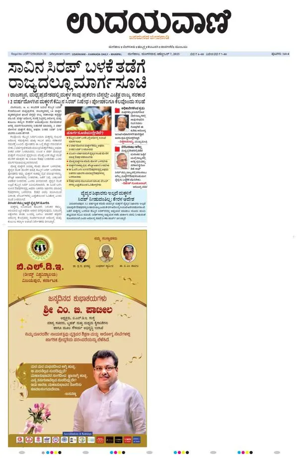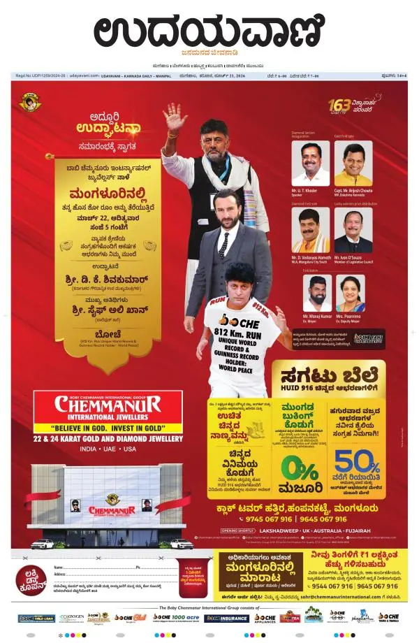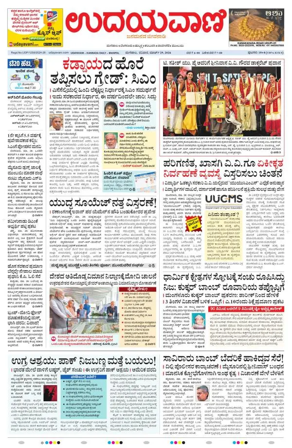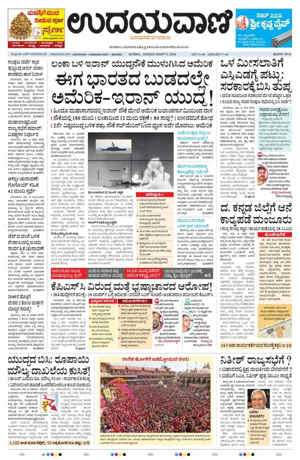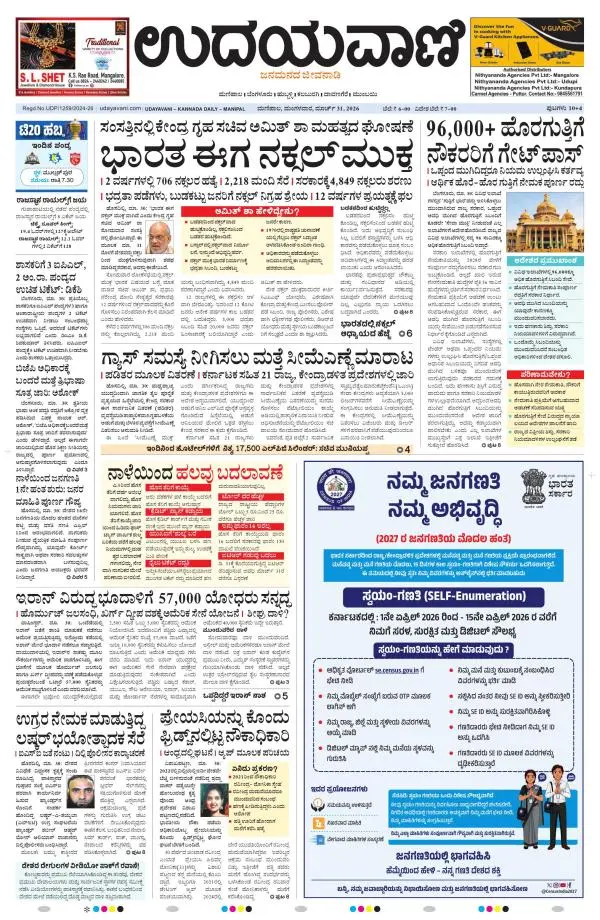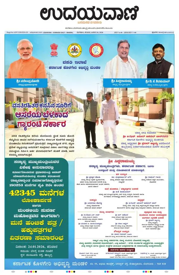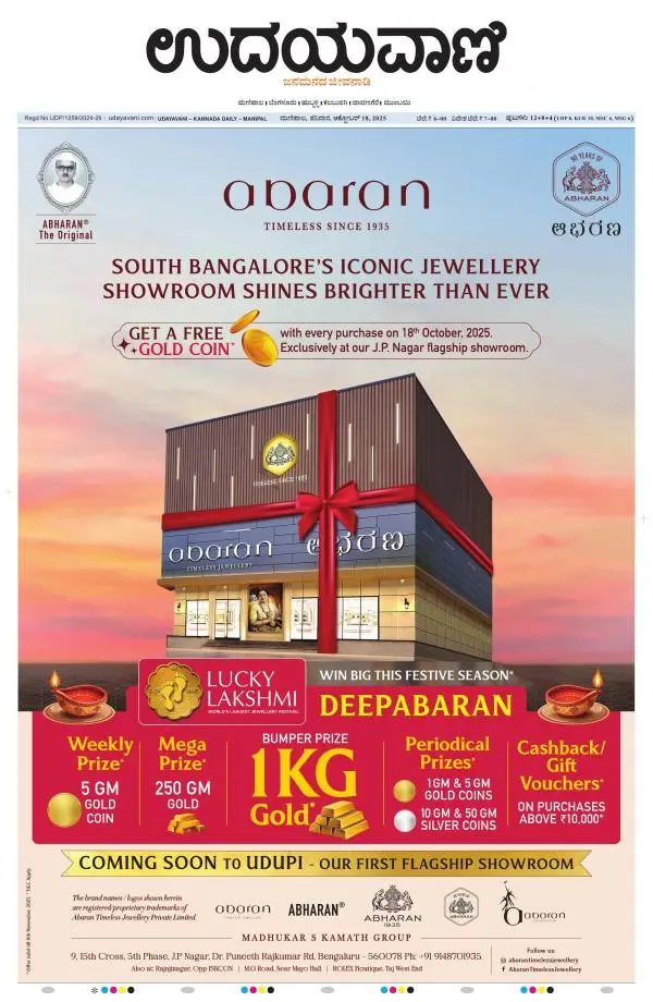 Udayavani is a leading Kannada Daily Newspaper with editions from Manipal, Bangalore, Mumbai, Hubli, Gulbarga & Davanagere.