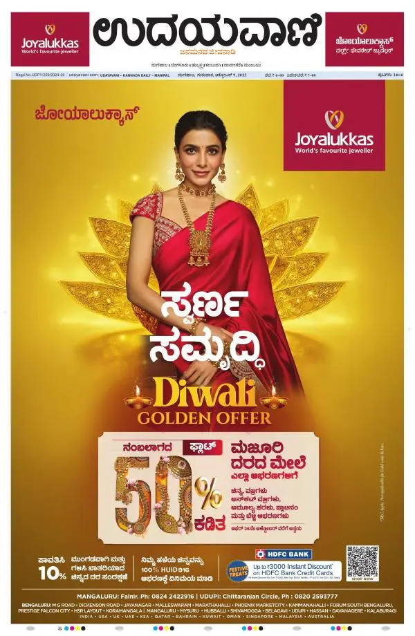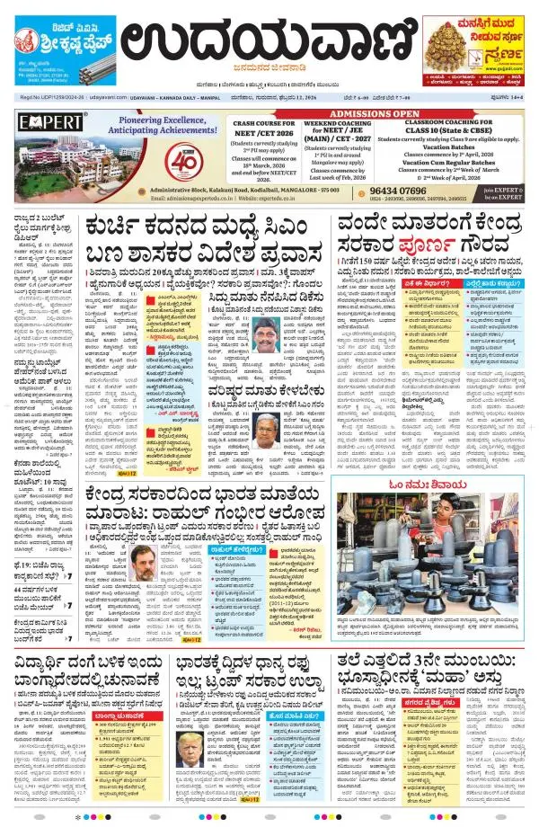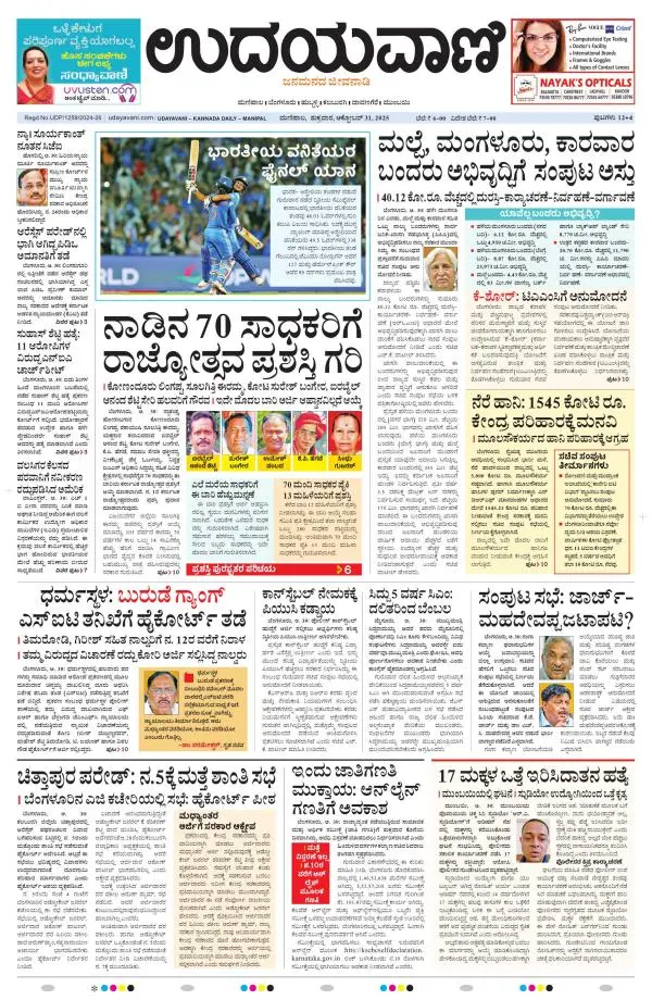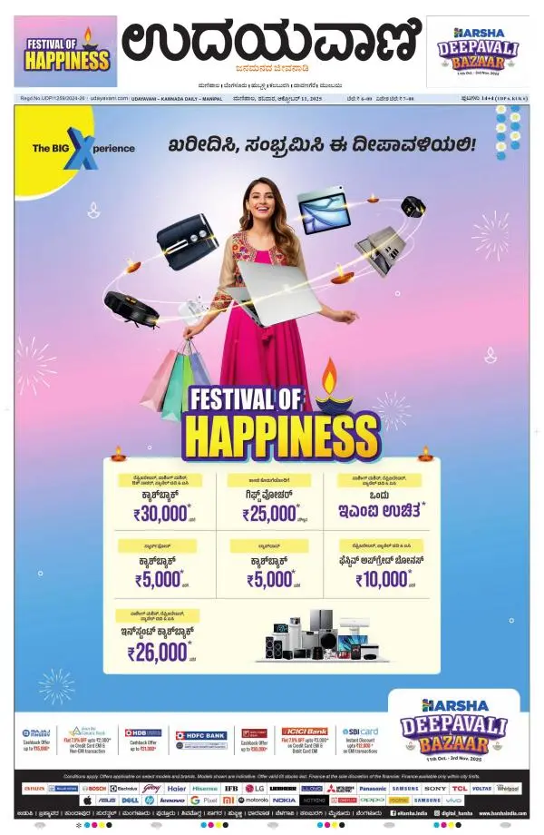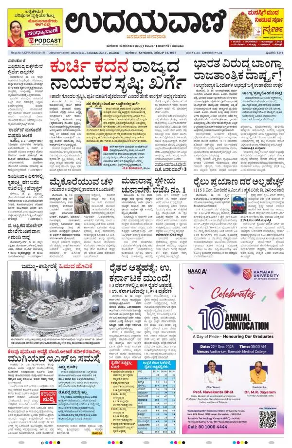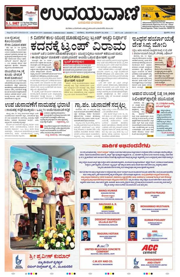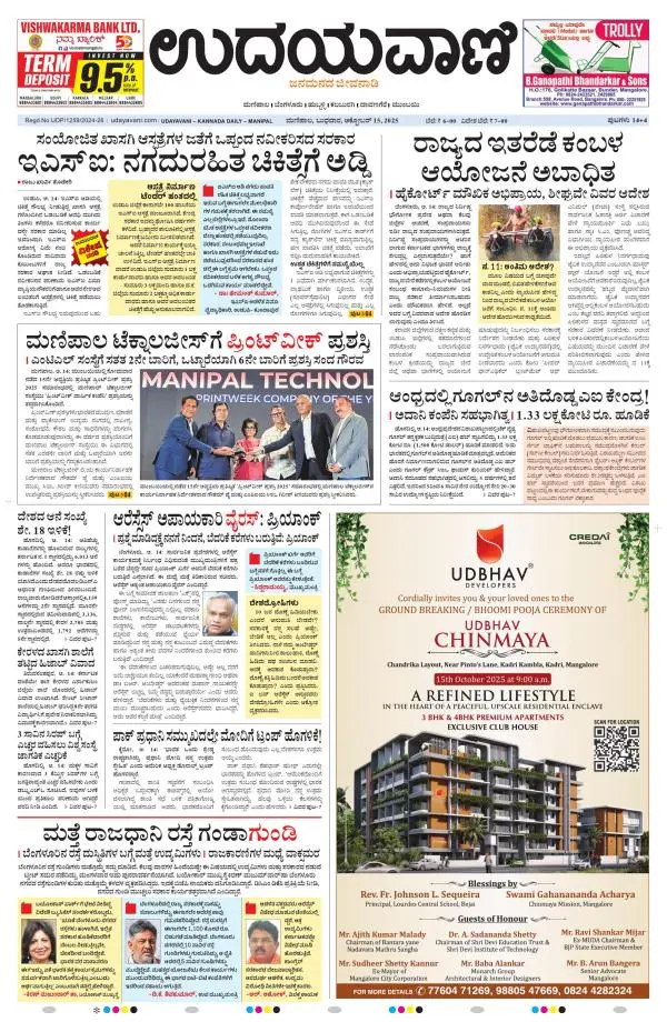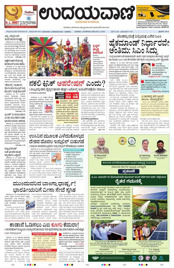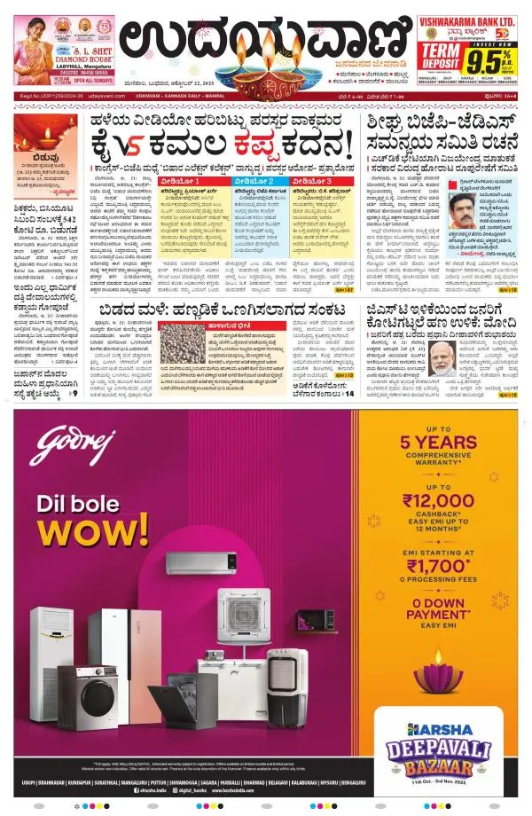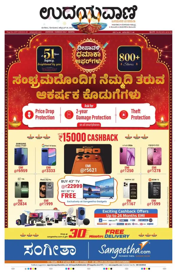 Udayavani is a leading Kannada Daily Newspaper with editions from Manipal, Bangalore, Mumbai, Hubli, Gulbarga & Davanagere.