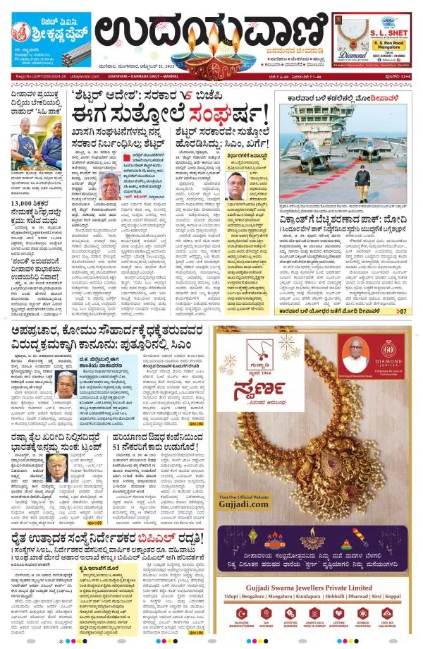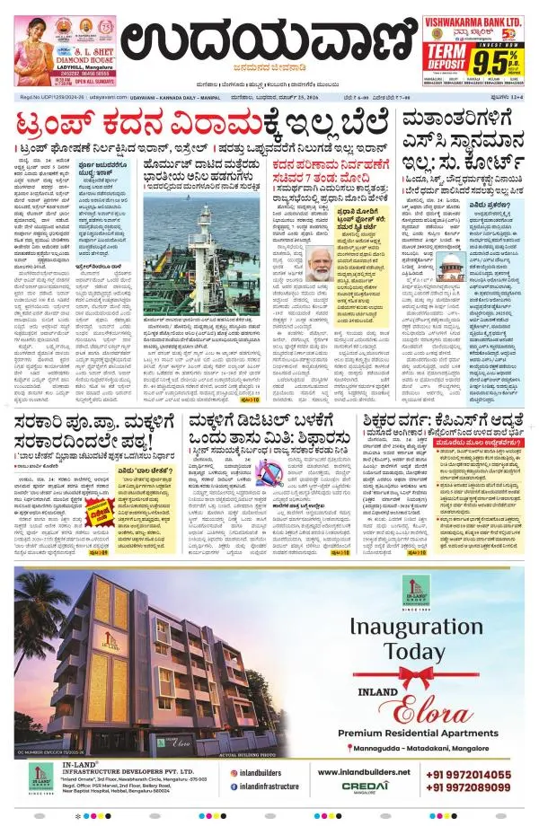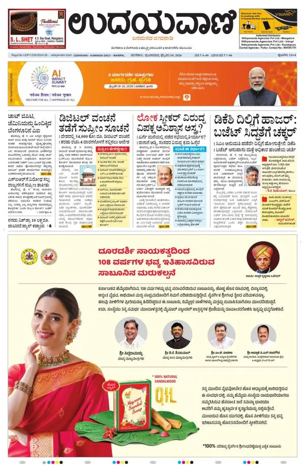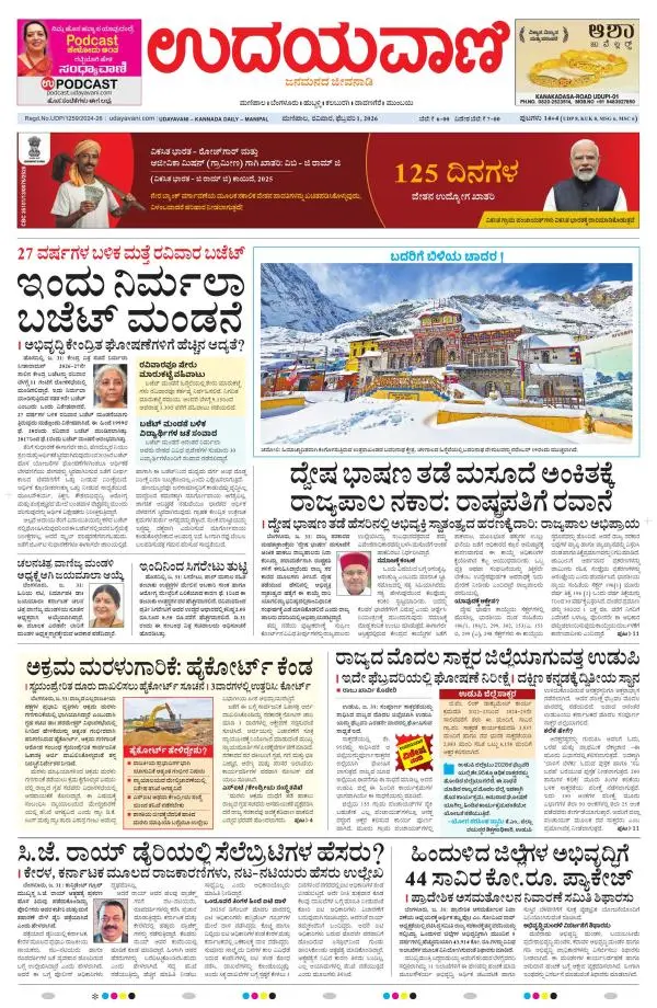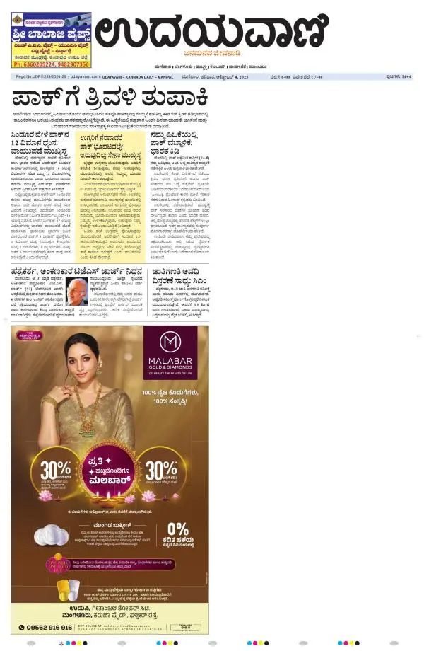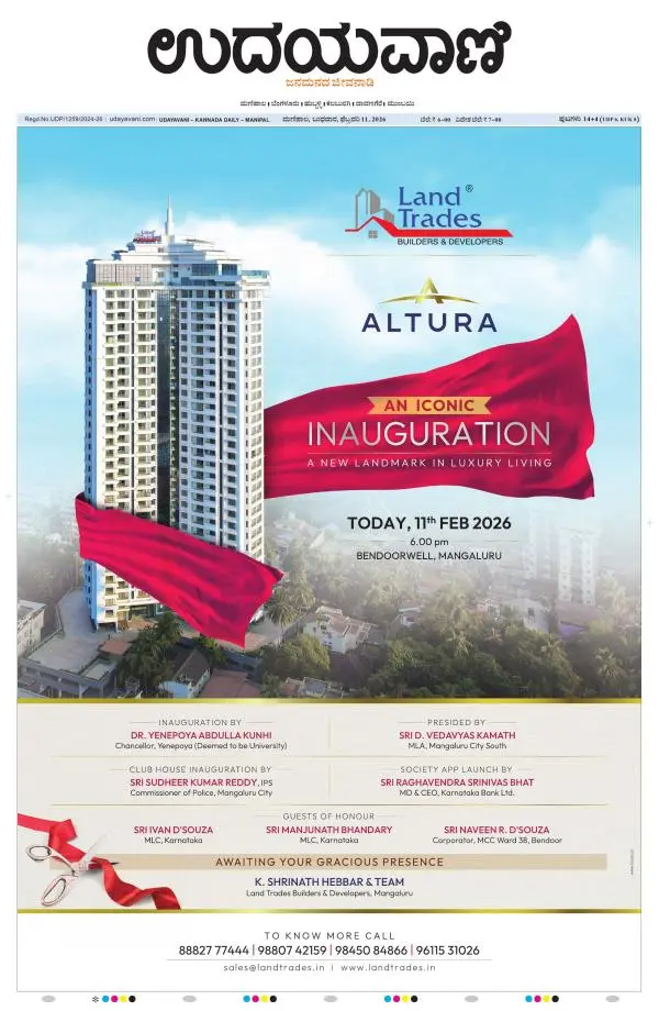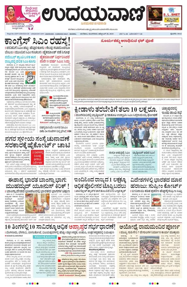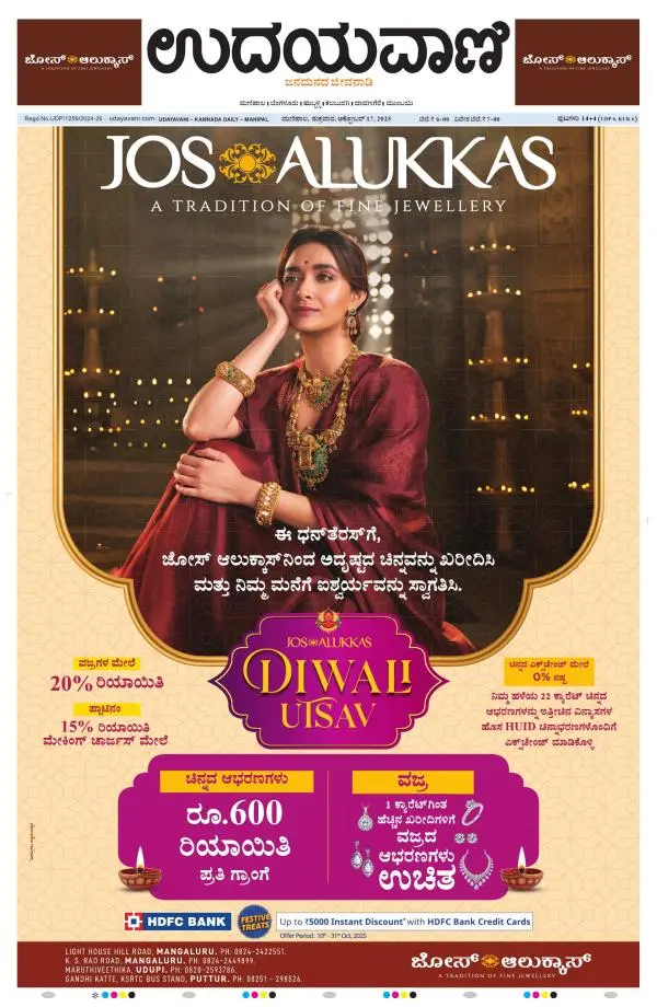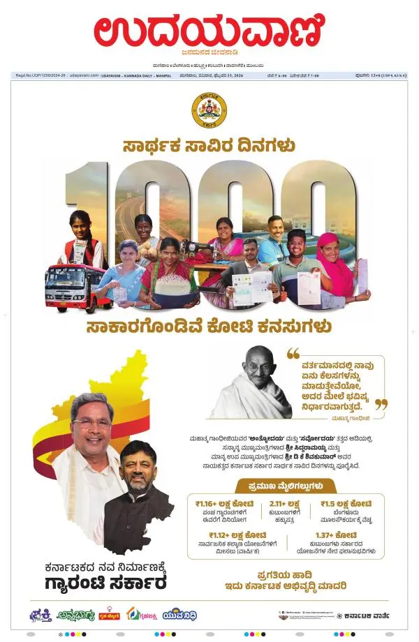 Udayavani is a leading Kannada Daily Newspaper with editions from Manipal, Bangalore, Mumbai, Hubli, Gulbarga & Davanagere.