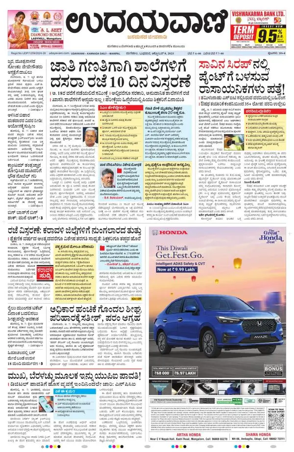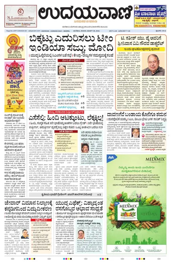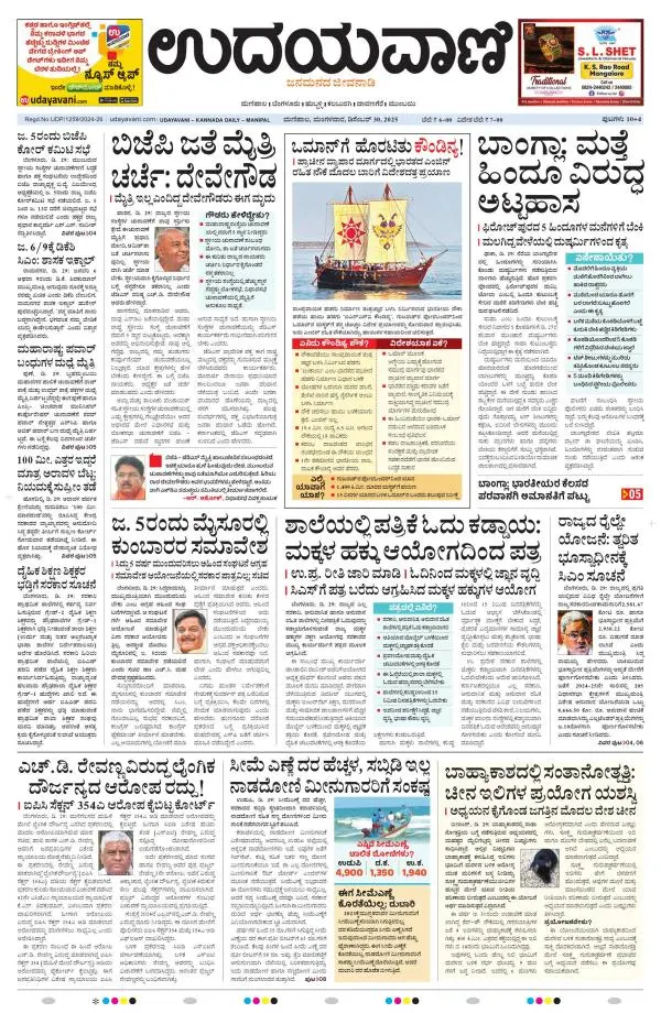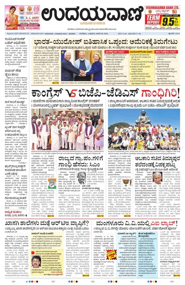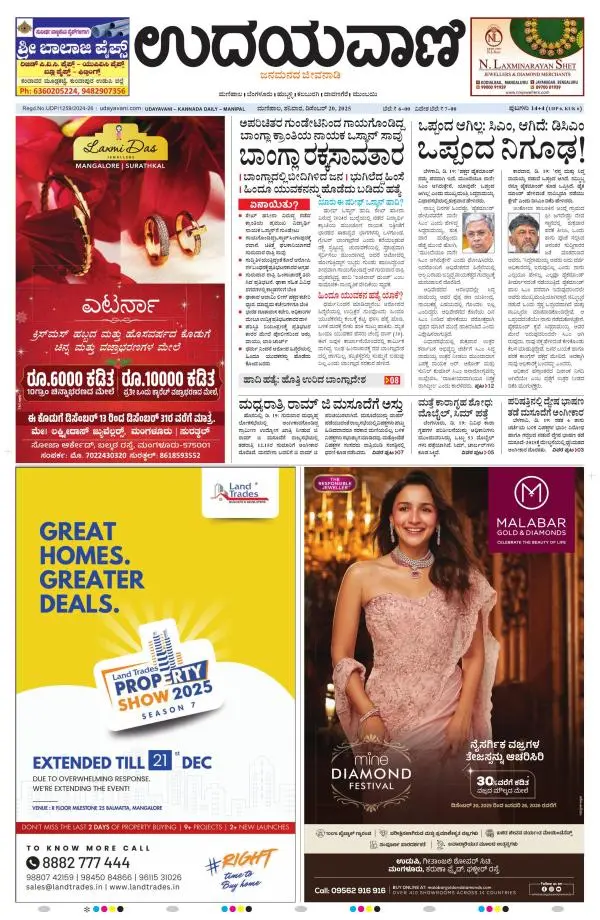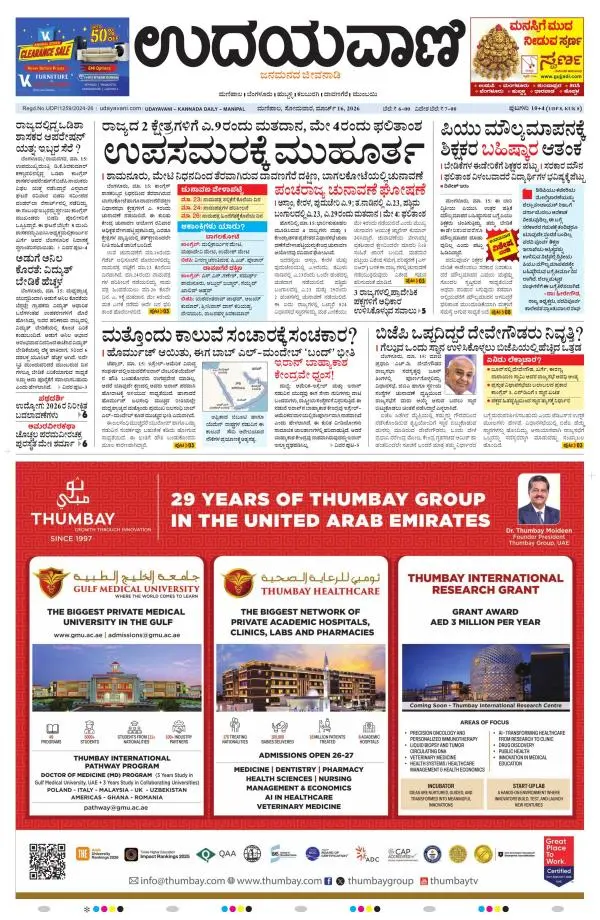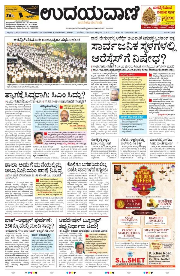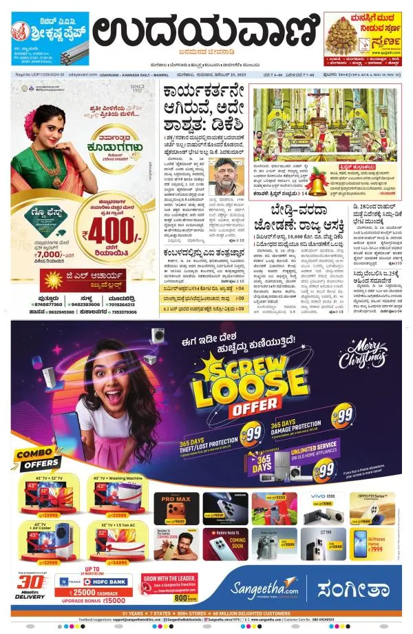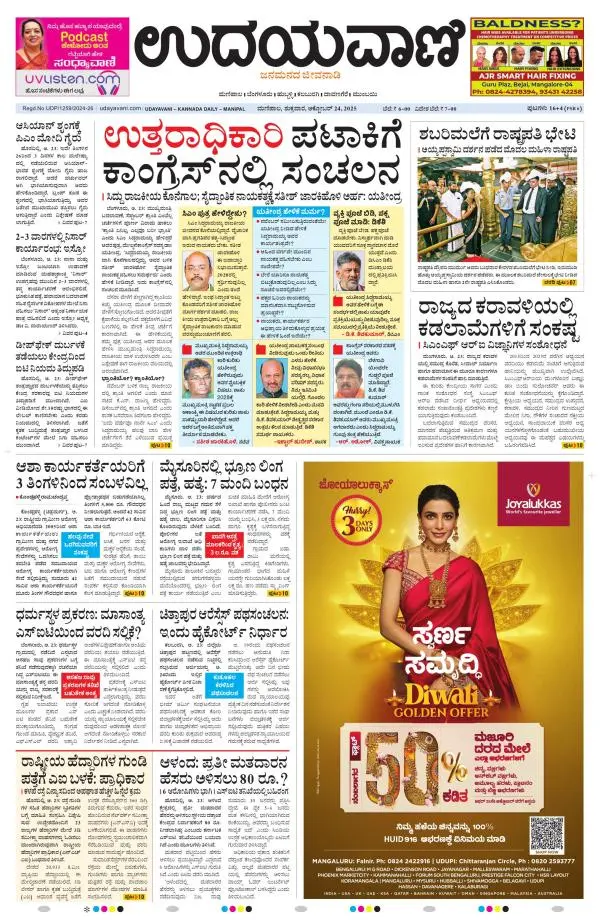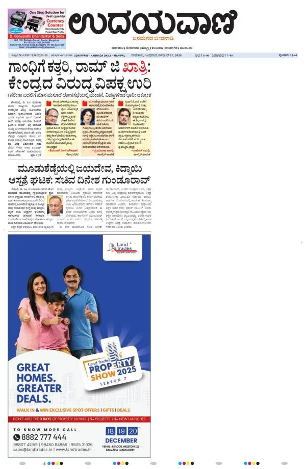 Udayavani is a leading Kannada Daily Newspaper with editions from Manipal, Bangalore, Mumbai, Hubli, Gulbarga & Davanagere.