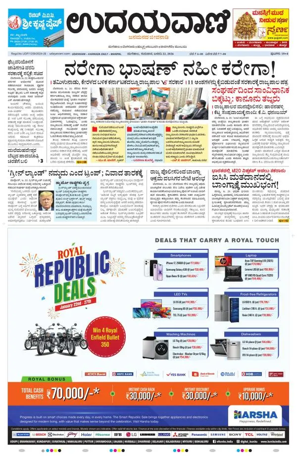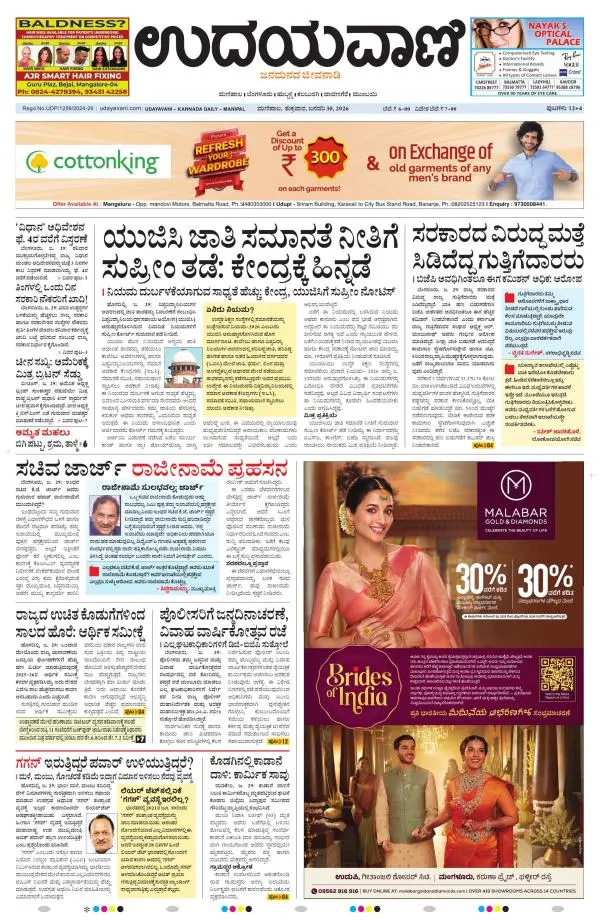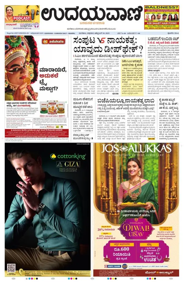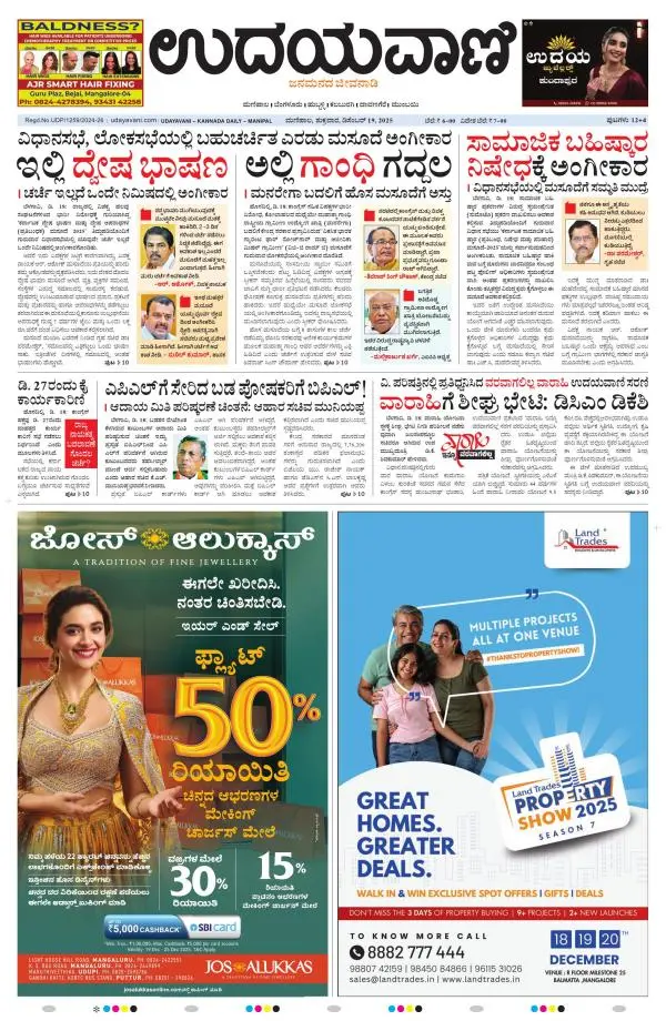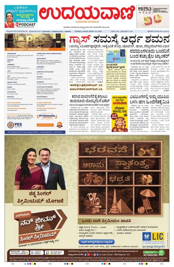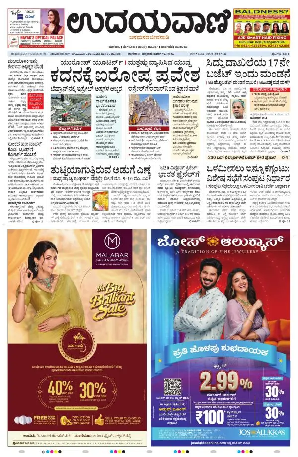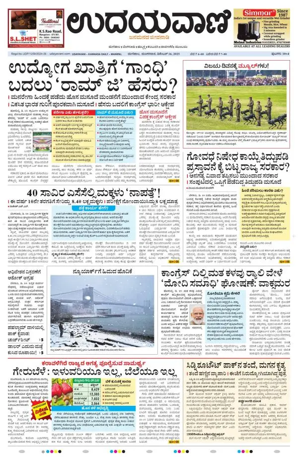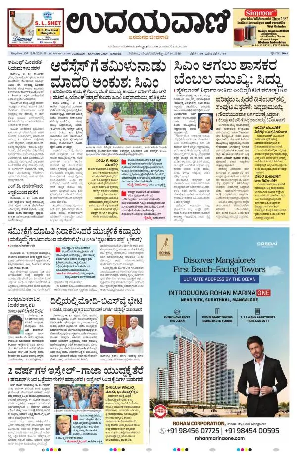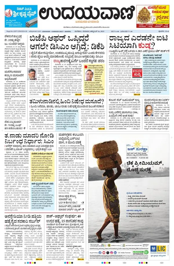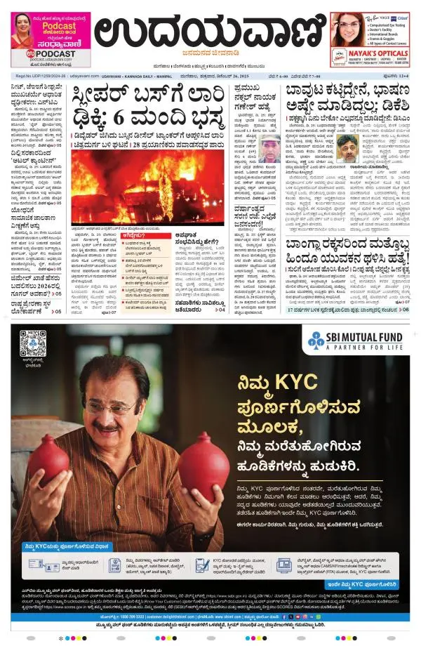 Udayavani is a leading Kannada Daily Newspaper with editions from Manipal, Bangalore, Mumbai, Hubli, Gulbarga & Davanagere.