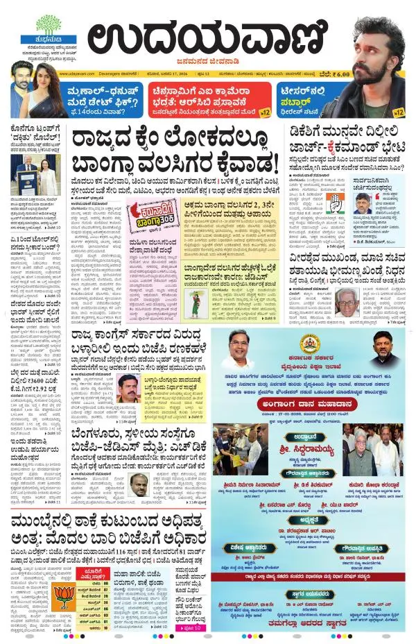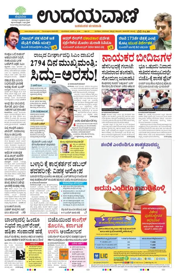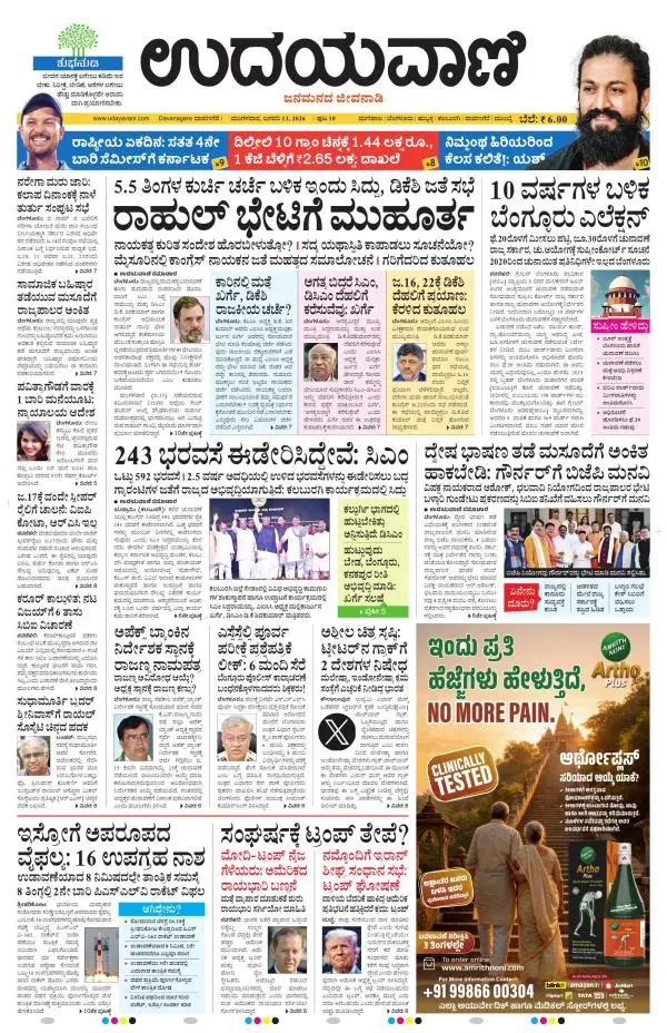 Udayavani is a leading Kannada Daily Newspaper with editions from Manipal, Bangalore, Mumbai, Hubli, Gulbarga & Davanagere.
