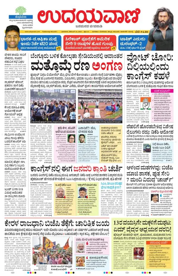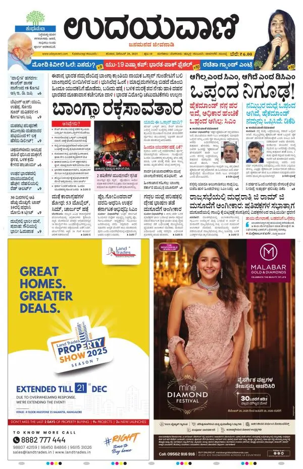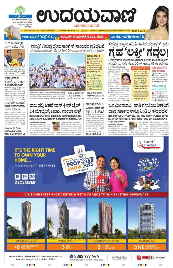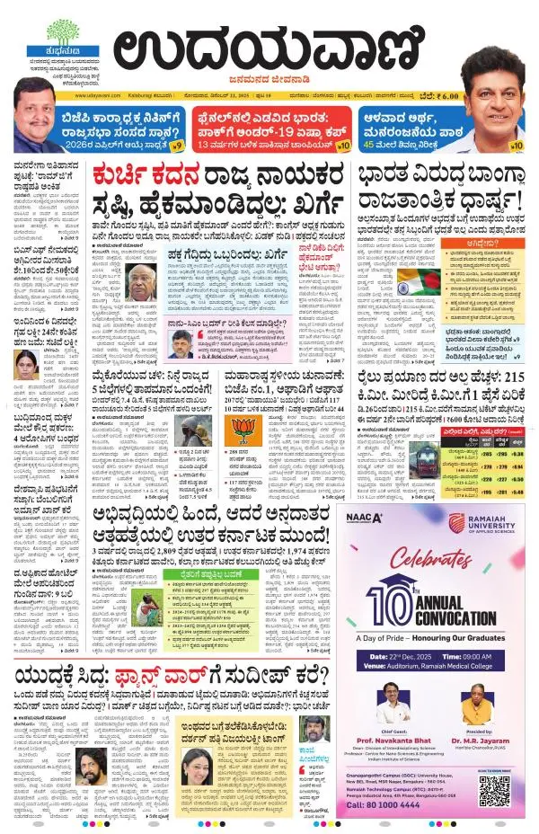 Udayavani is a leading Kannada Daily Newspaper with editions from Manipal, Bangalore, Mumbai, Hubli, Gulbarga & Davanagere.
